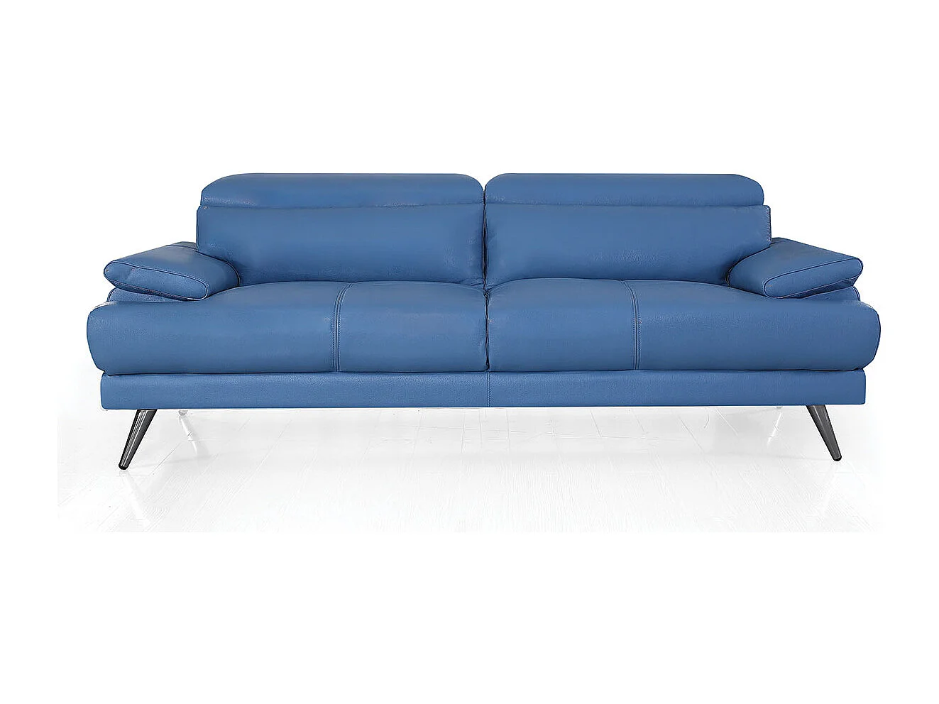 Canapé 3 places Cuir LENA Bleu - Angle Droit