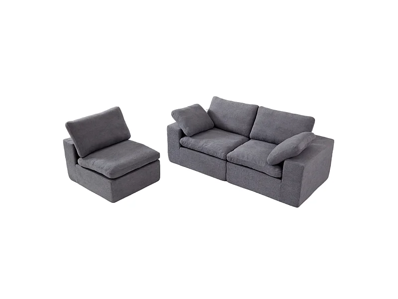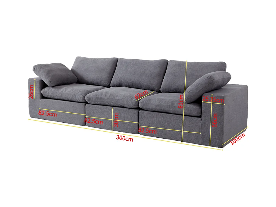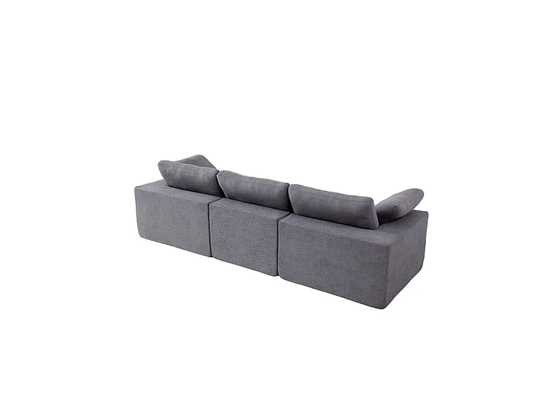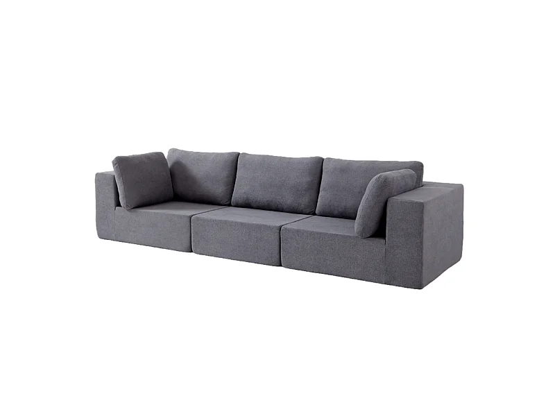 Canapé 3 places modulable en tissu - avec 8 coussins - 62cm assise profonde - 300x100x81cm - Gris