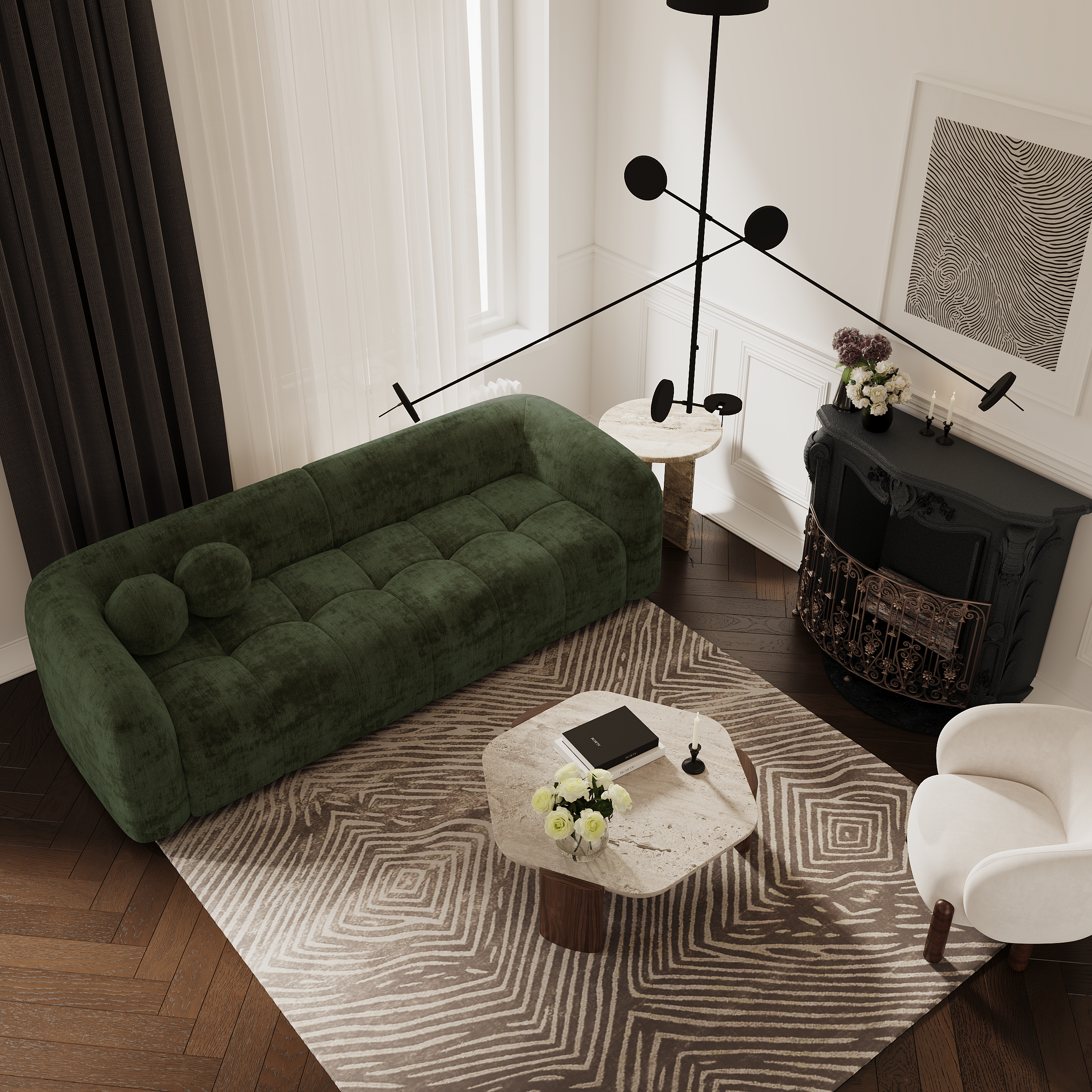 Canapé 3 places velours vert kaki 226cm HAUSSMANN