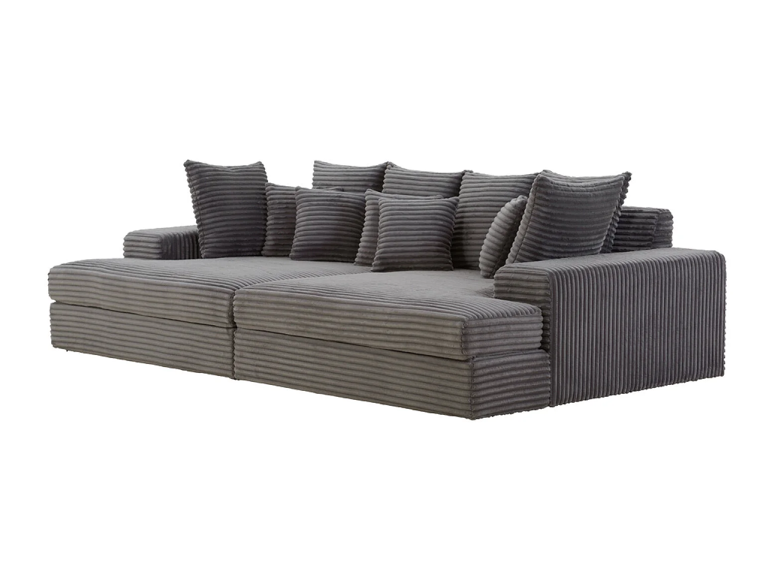Canapé 4 places assise profonde en velours côtelé gris anthracite CARDIFF