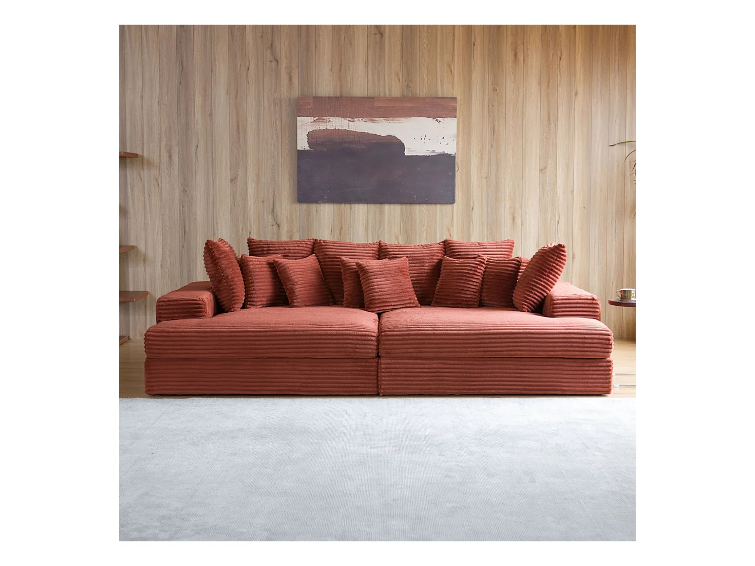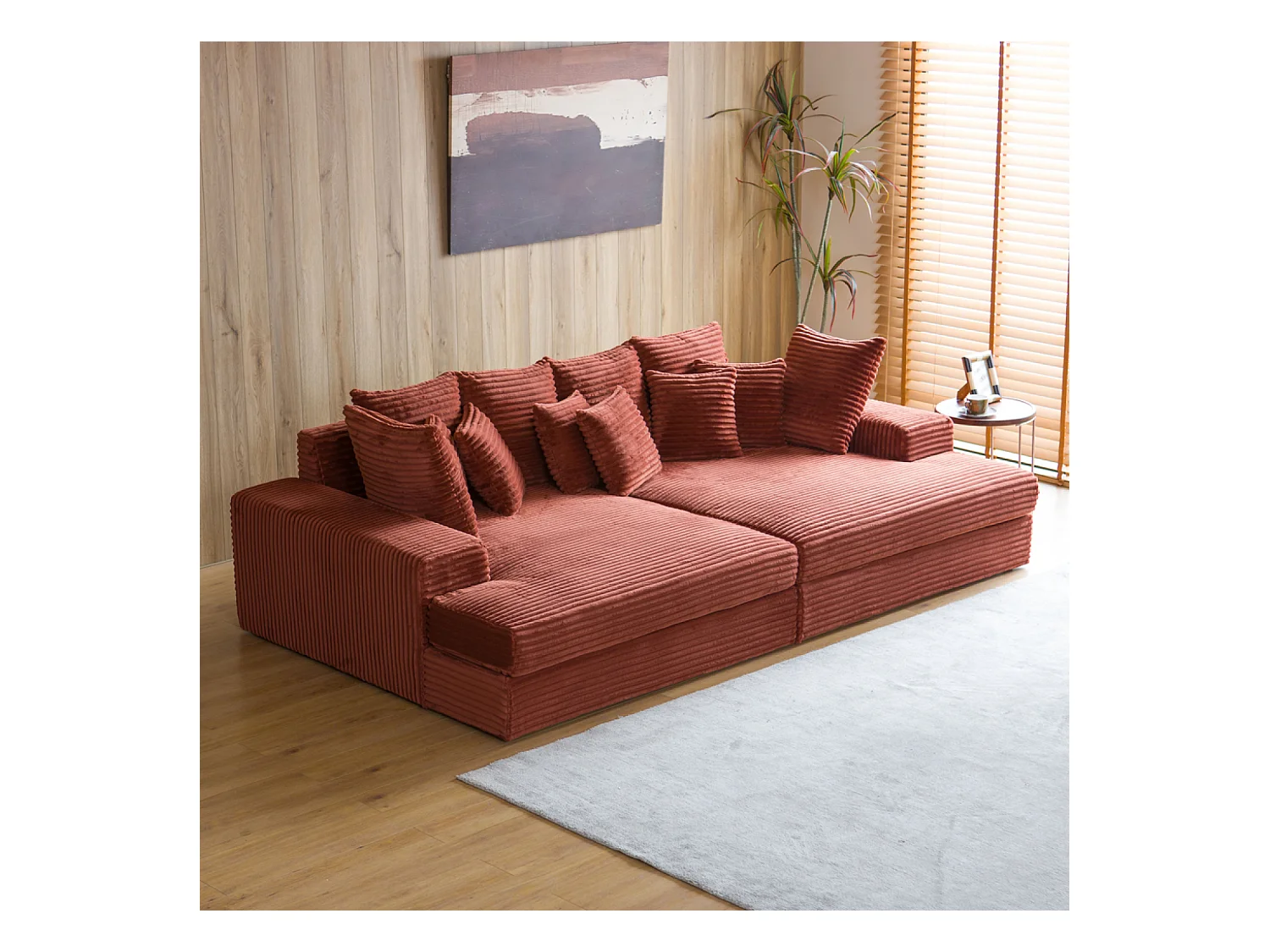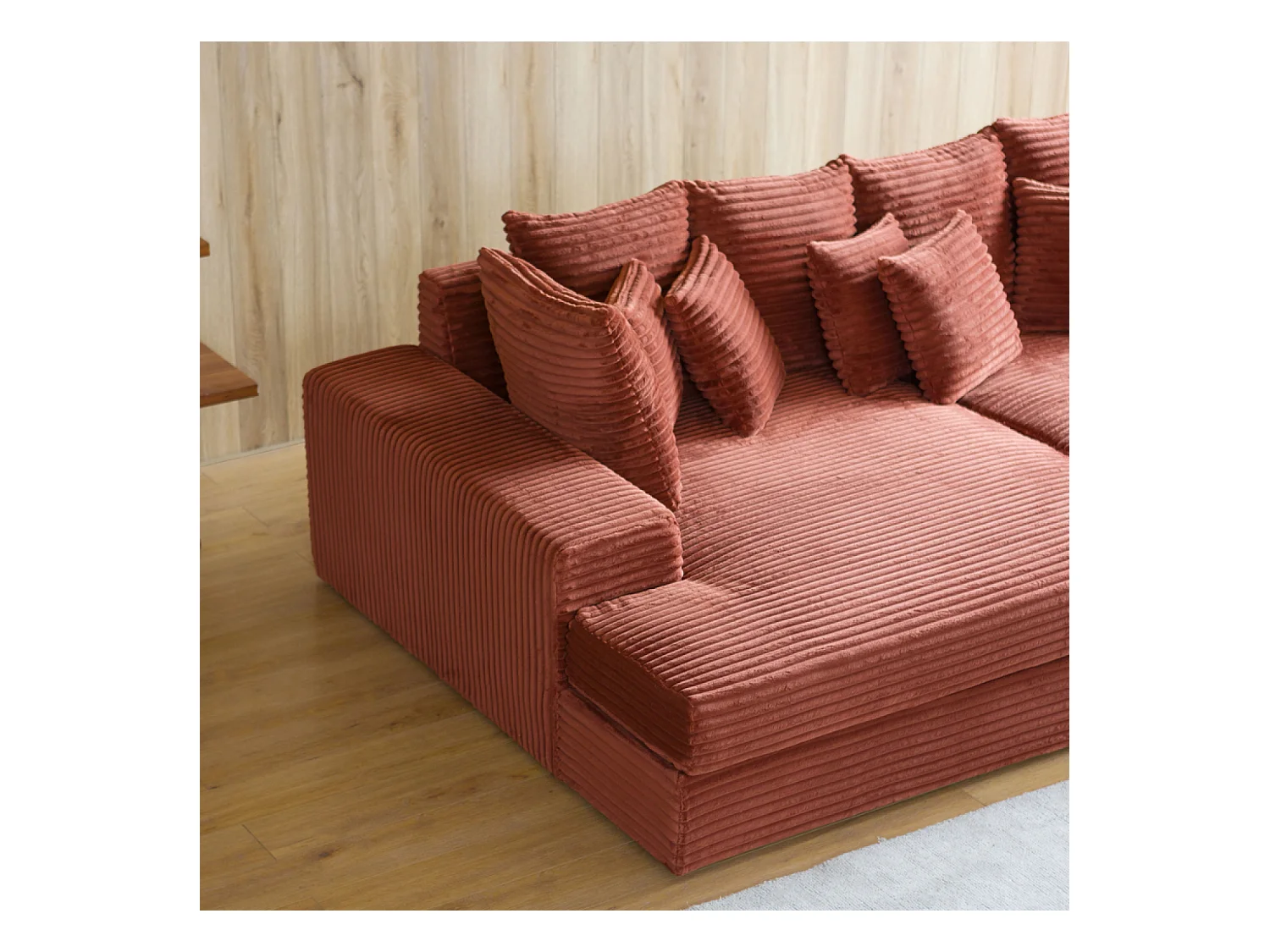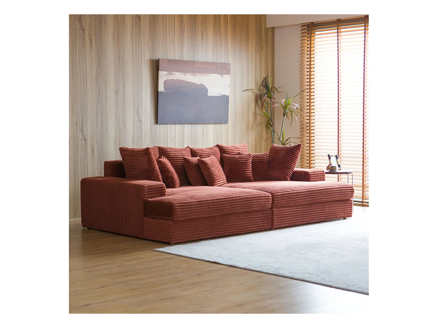Canapé 4 places assise profonde en velours côtelé terracotta CARDIFF
