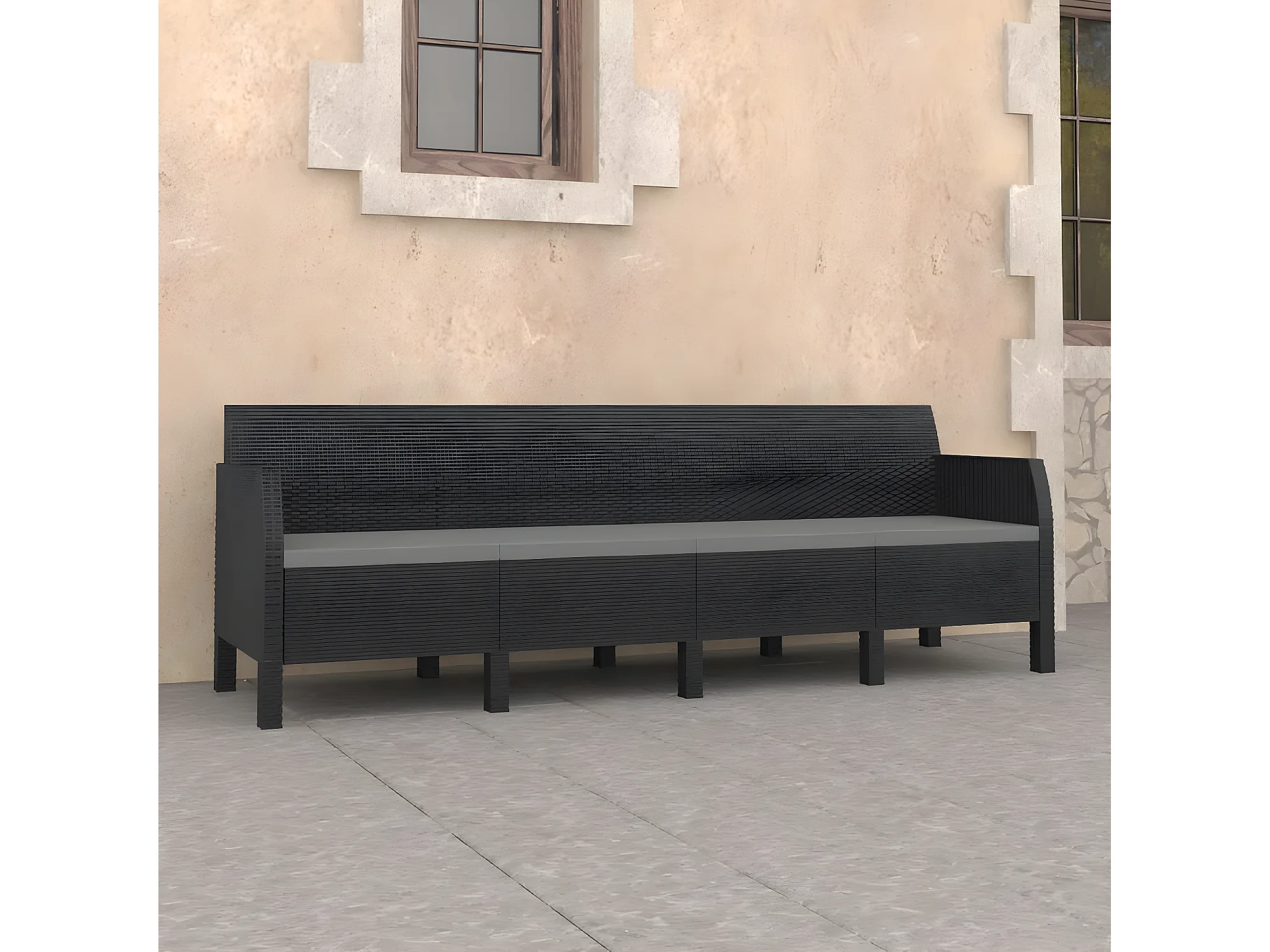 Canapé 4 places de jardin avec coussins Anthracite PP Rotin