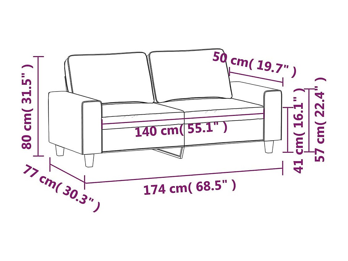 Canapé à 2 places Rouge bordeaux 140 cm Tissu