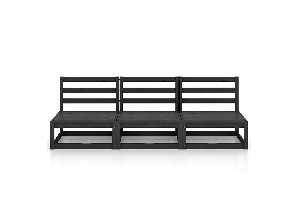 Canapé à 3 places de jardin Noir Bois de pin solide PWRS40380
