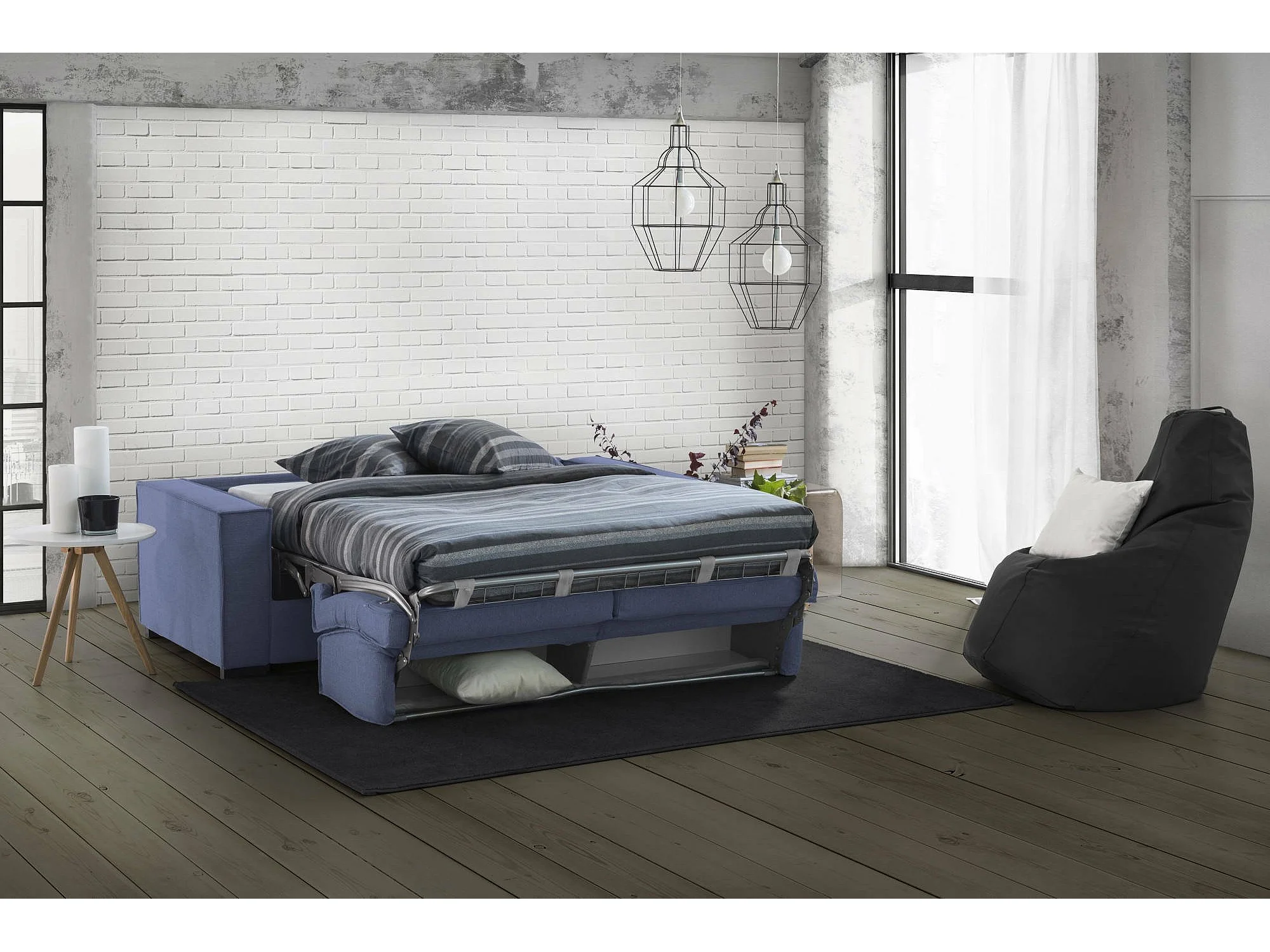 Canapé Daabbo, Grand Canapé 2 places, 100% Made in Italy, Canapé de salon à ouverture pivotante, en tissu matelassé, avec accoudoirs standards, Cm 200x95h90, Bleu