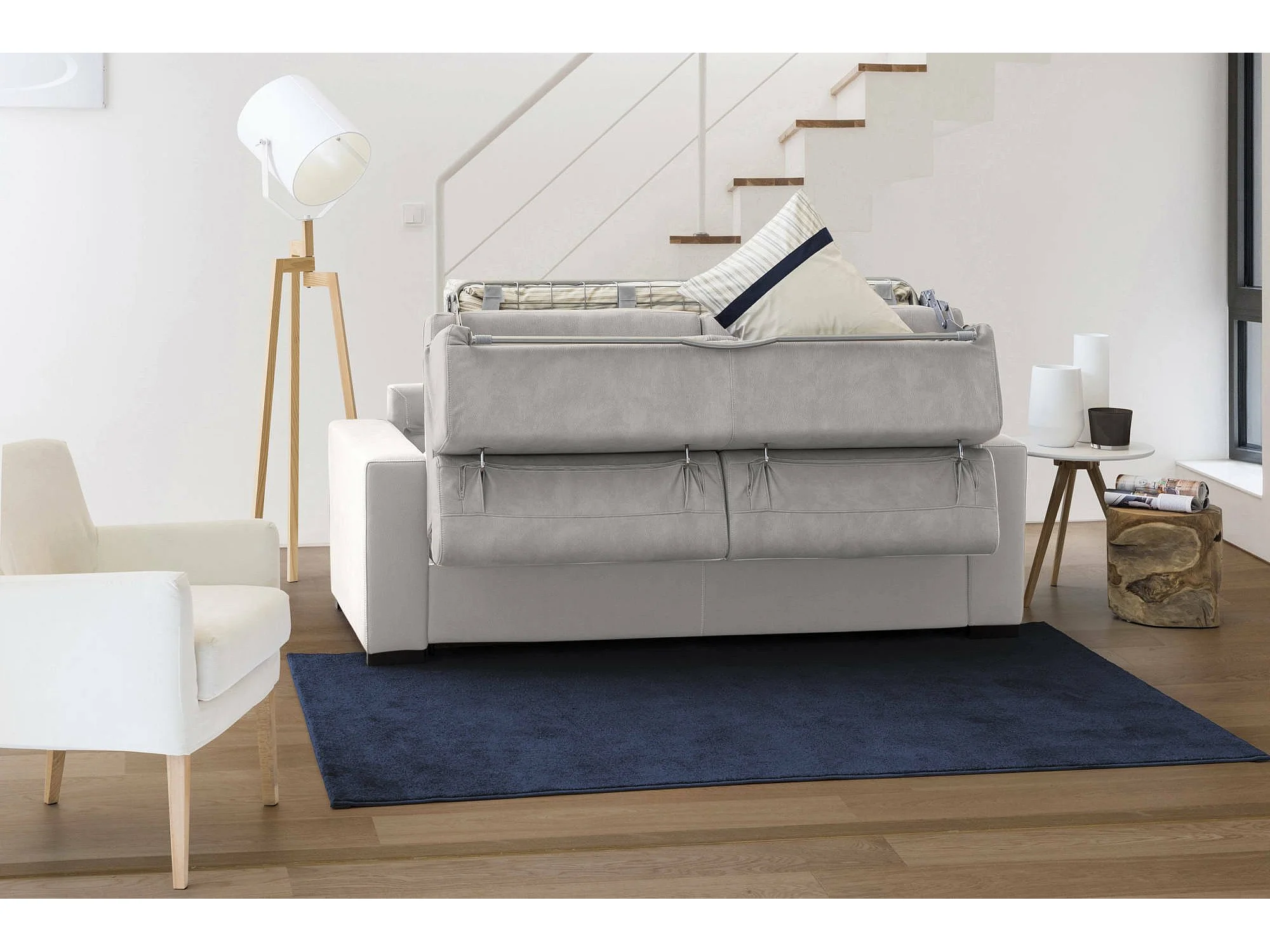 Canapé-lit Daasen, Canapé d'angle, 100% Made in Italy, Canapé à ouverture pivotante, avec péninsule de rangement droite, avec accoudoirs fins, 260x95h85 cm, Gris
