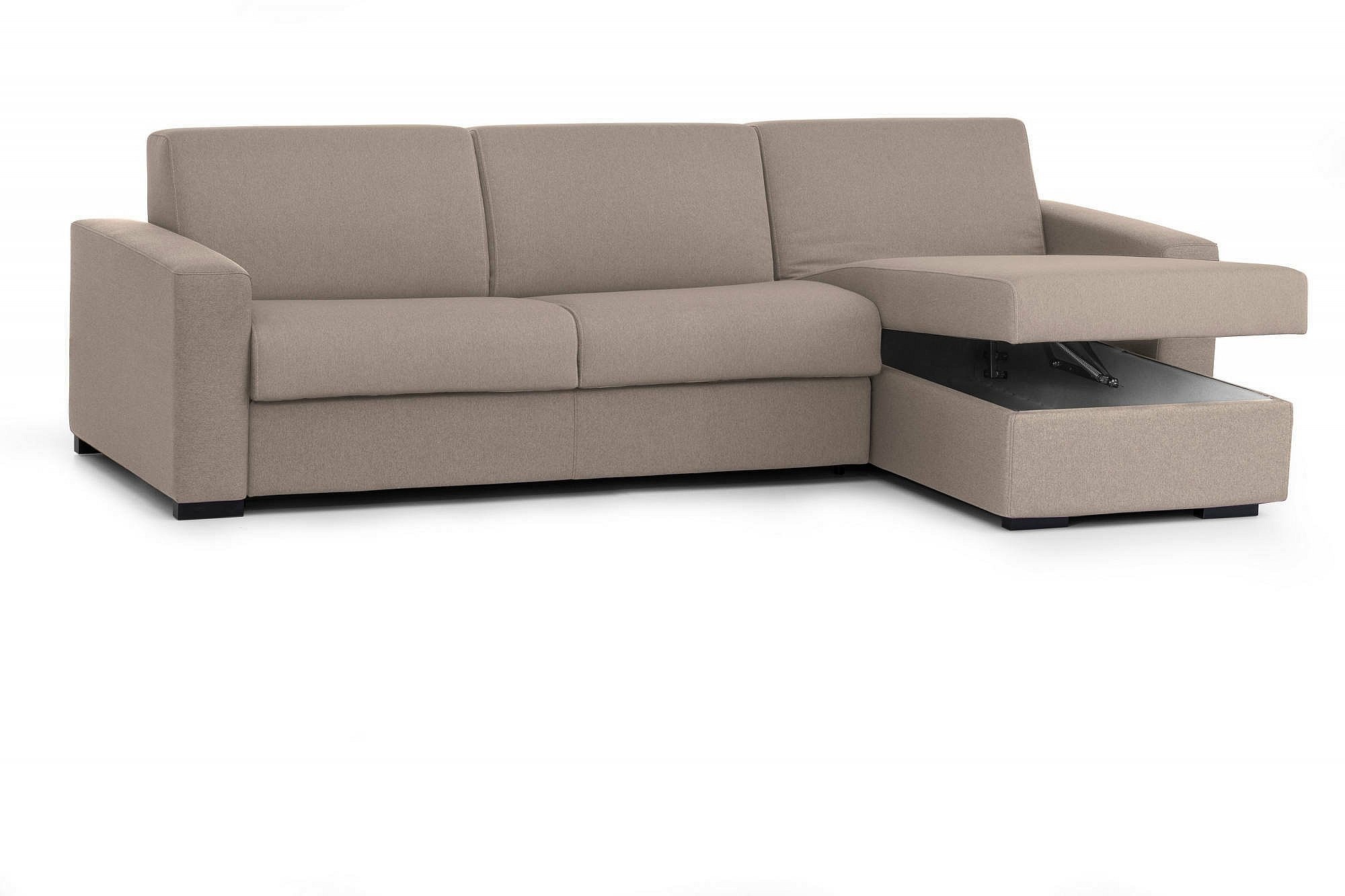 Dabala slaapbank, hoekbank, 100% Made in Italy, bank met draaibare opening, met omkeerbaar opbergschiereiland, met slanke armleuningen, Cm 260x95h90, Taupe