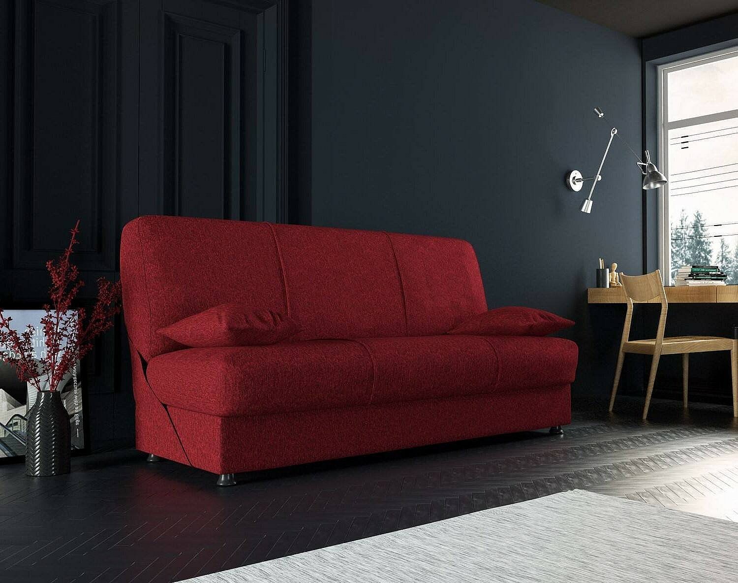 Canapé Alvaro, Canapé conteneur 3 places avec 2 coussins inclus, Canapé de salon en tissu rembourré avec ouverture clic-clac, 180x81h90 cm, Rouge