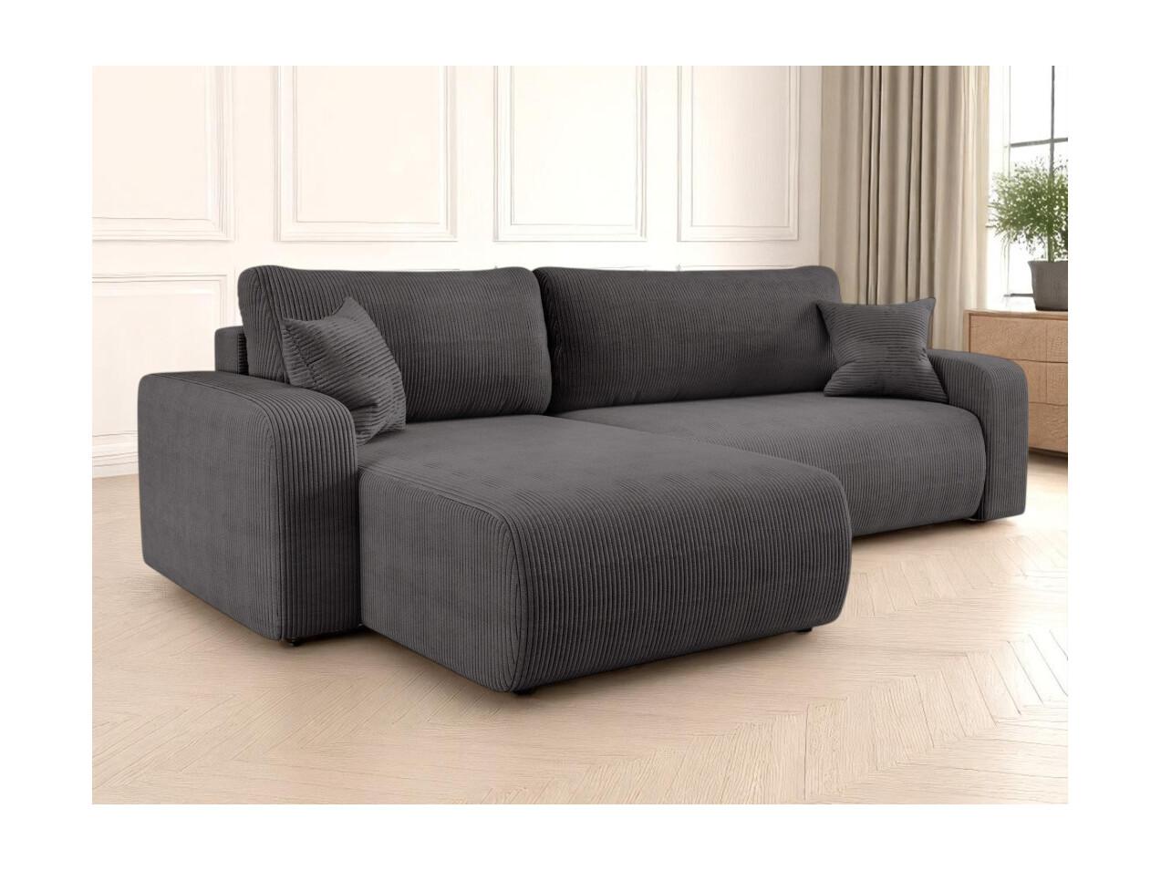 Canapé ALYA d'angle max réversible et convertible 5 places en velours côtelé - Gris