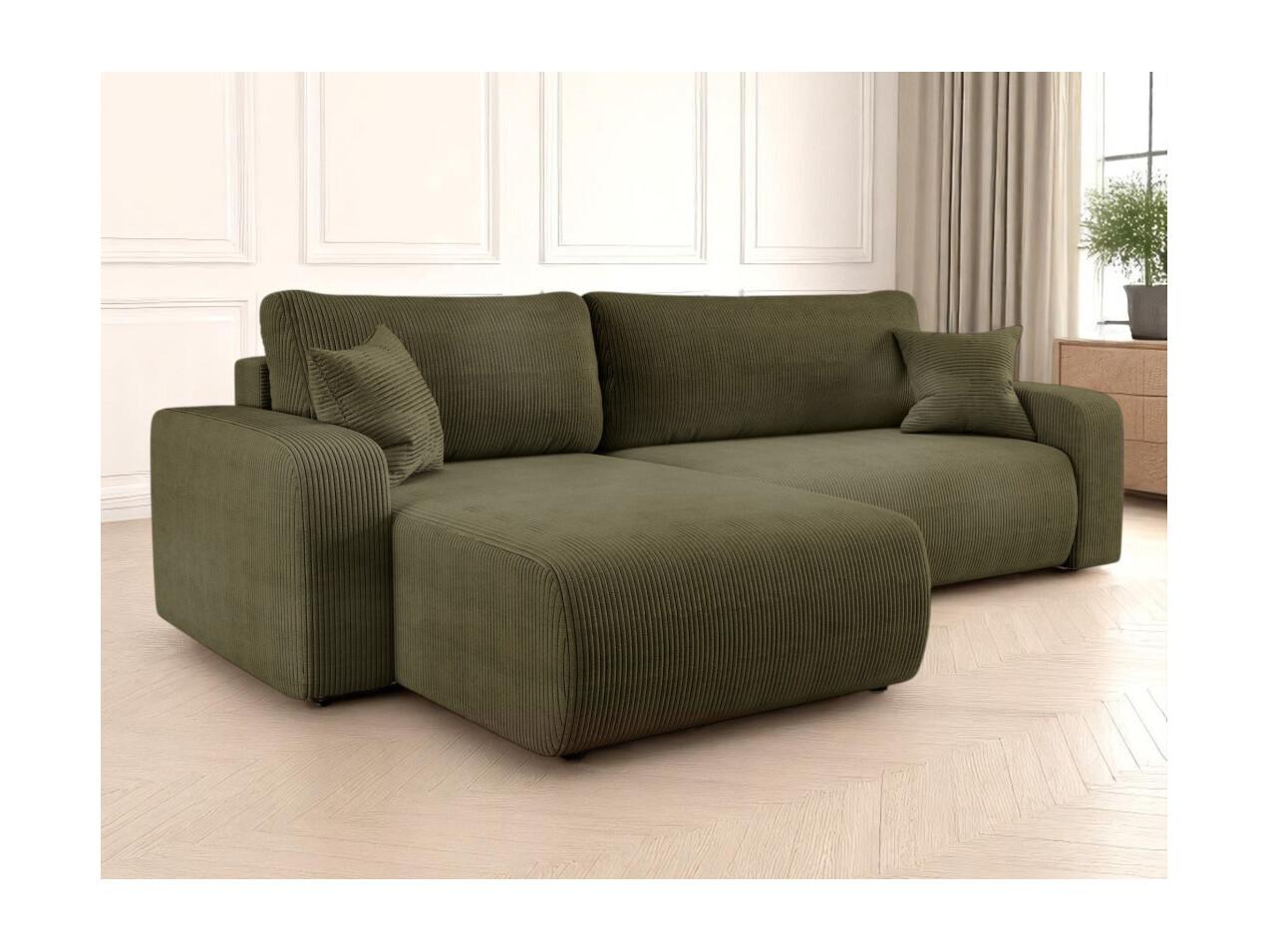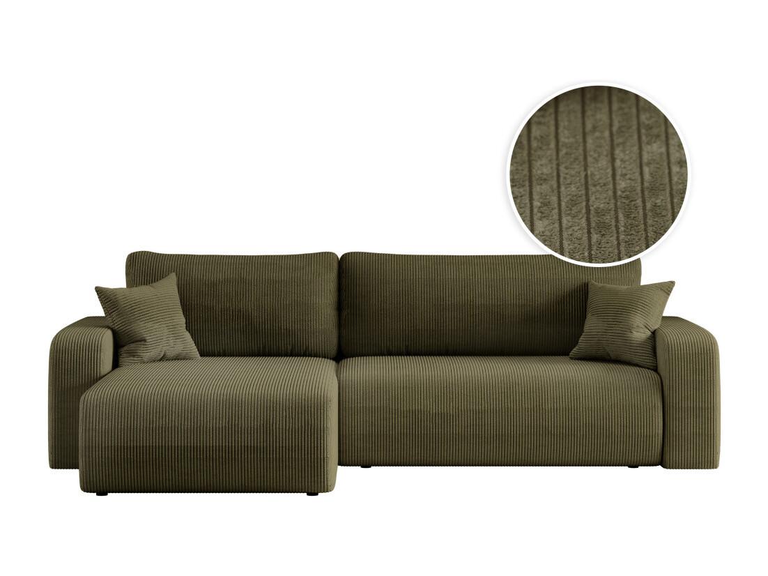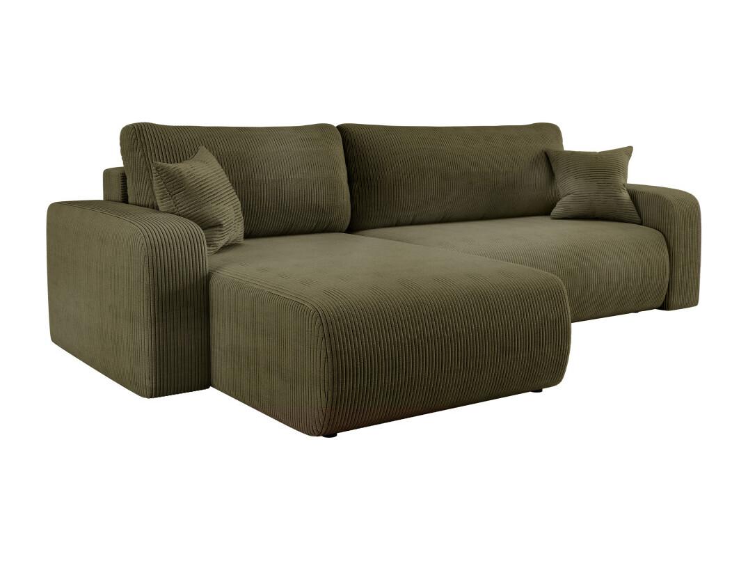 Canapé ALYA d'angle max réversible et convertible 5 places en velours côtelé - Vert kaki