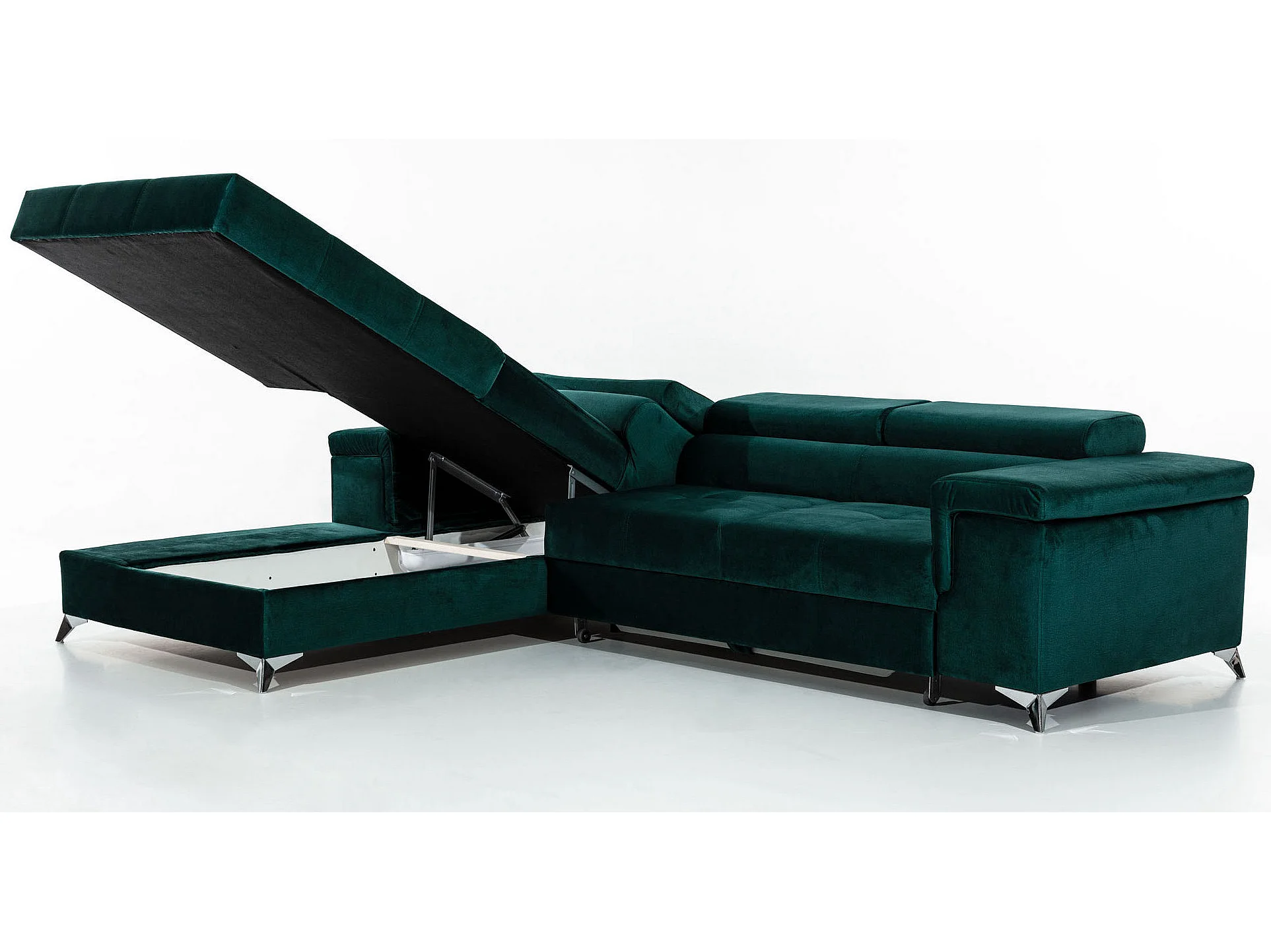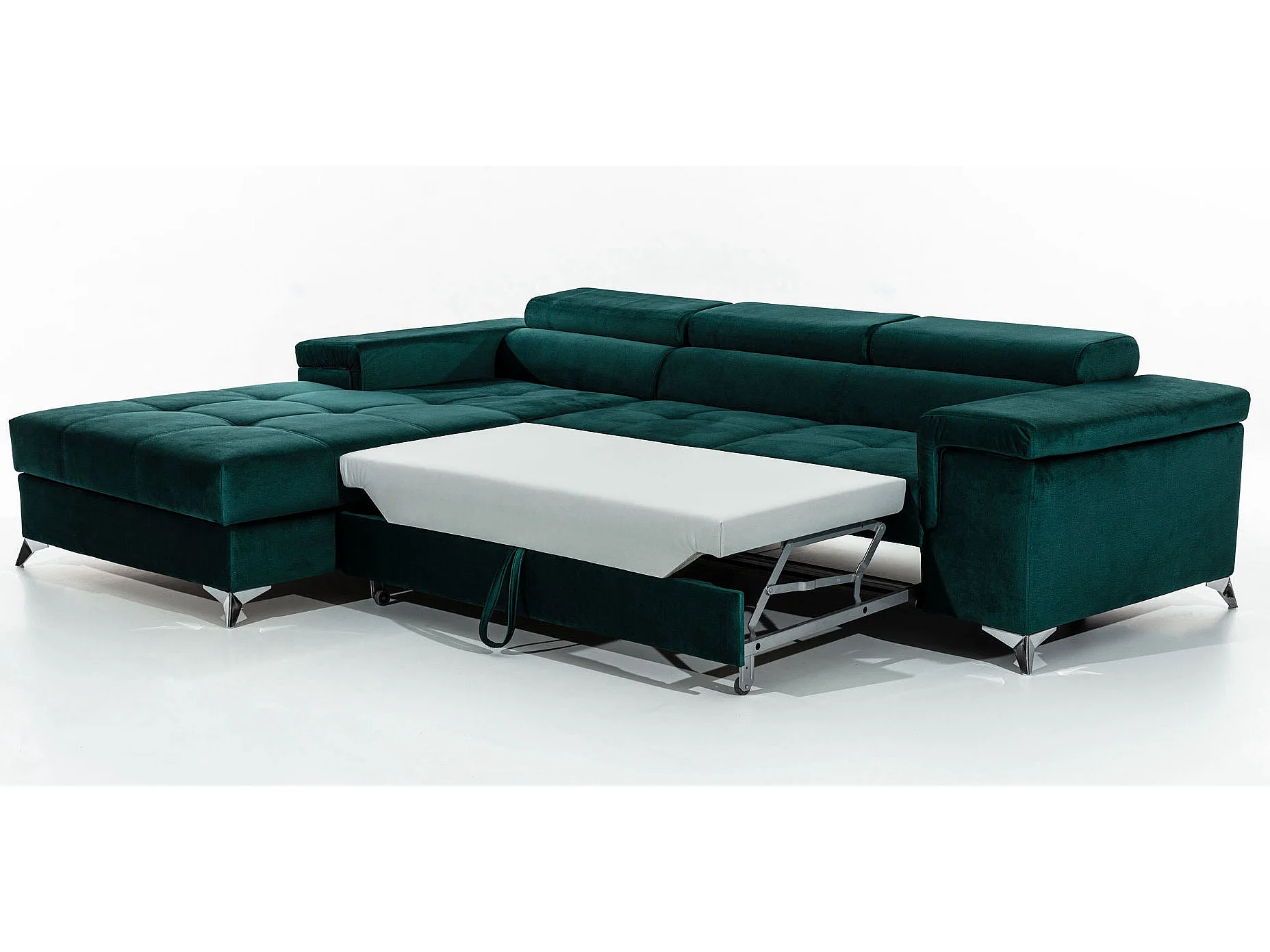 Canapé angle gauche convertible velours vert foncé avec appuis-tête réglables Rikaro 280cm