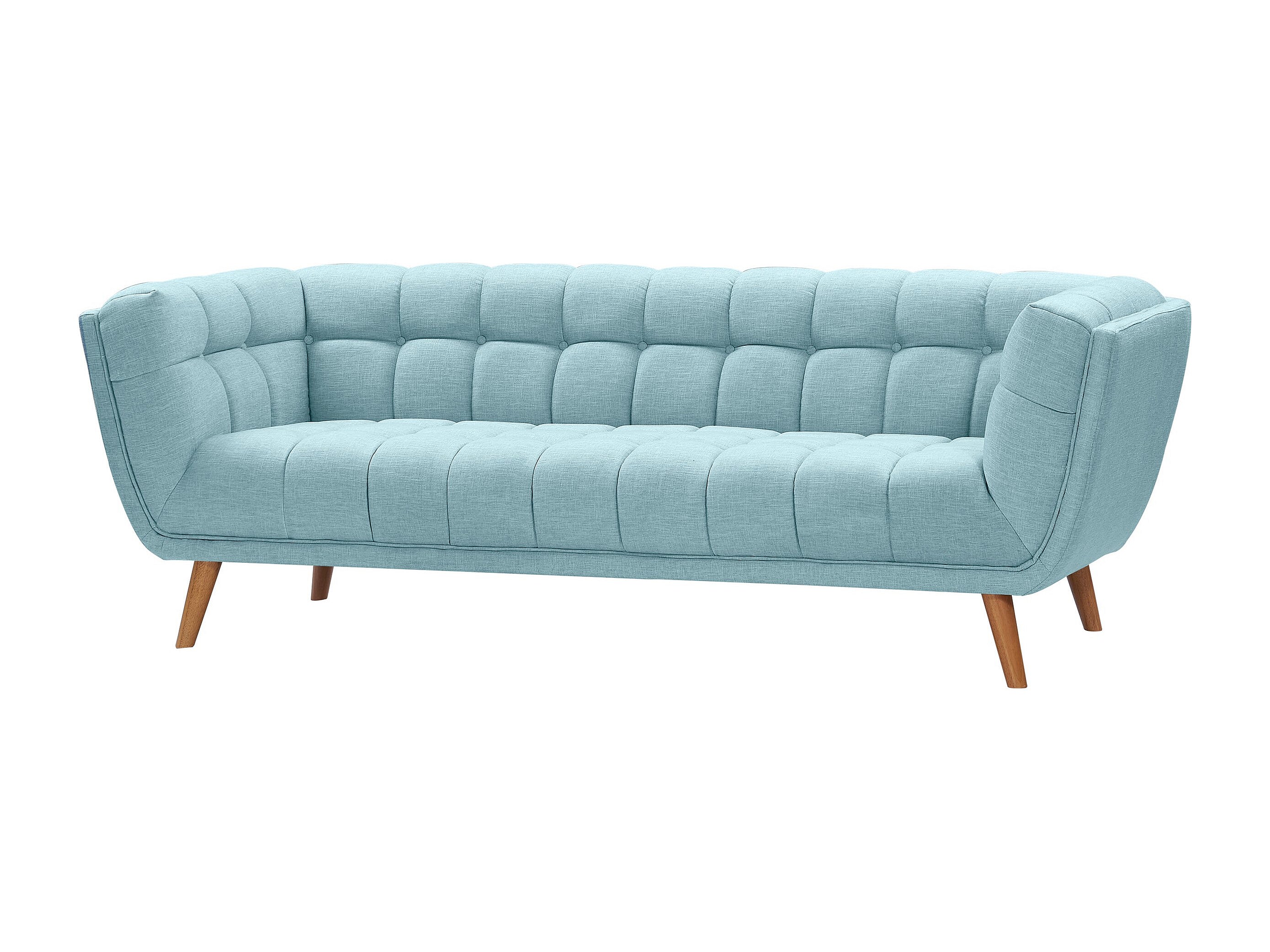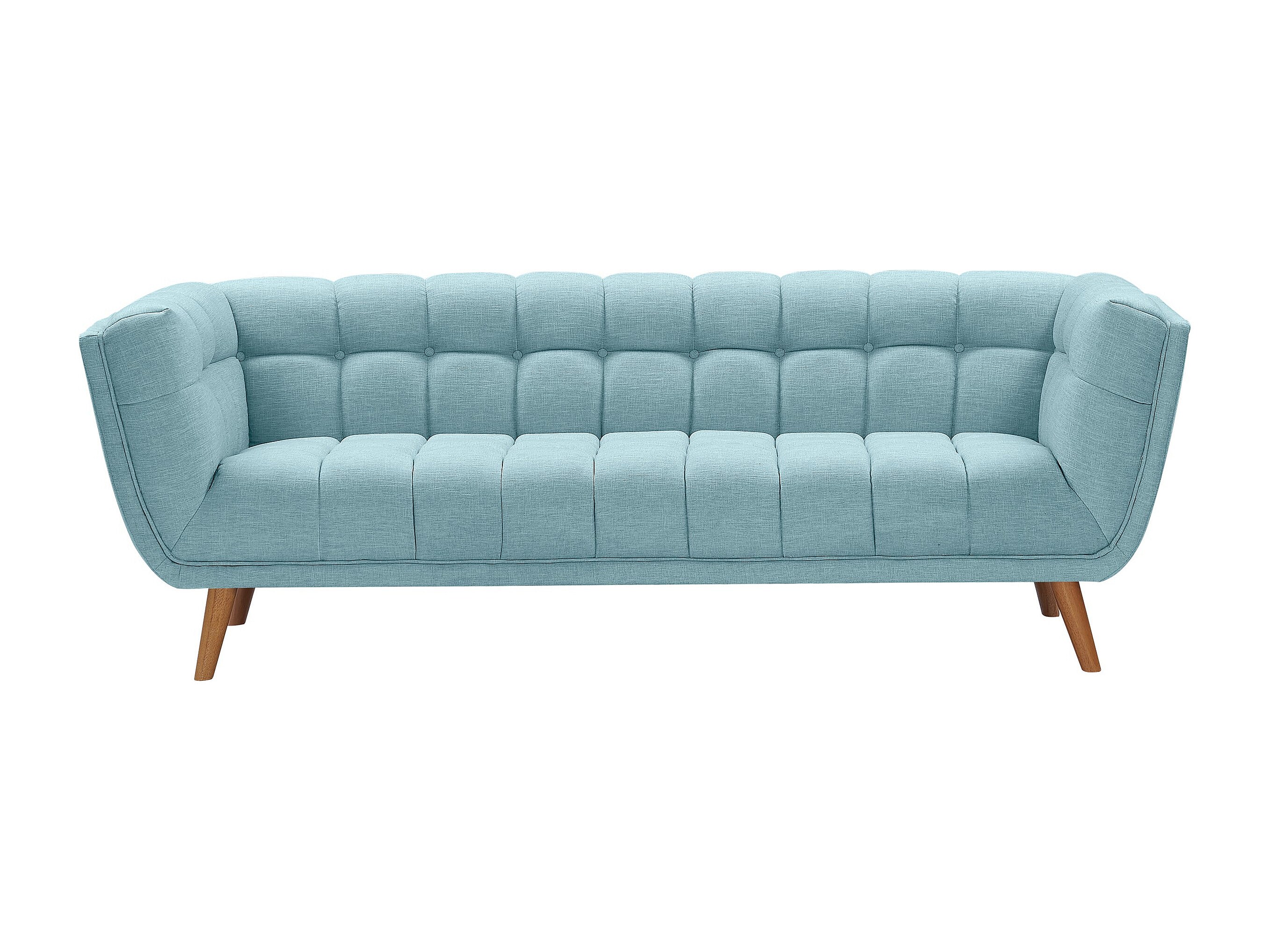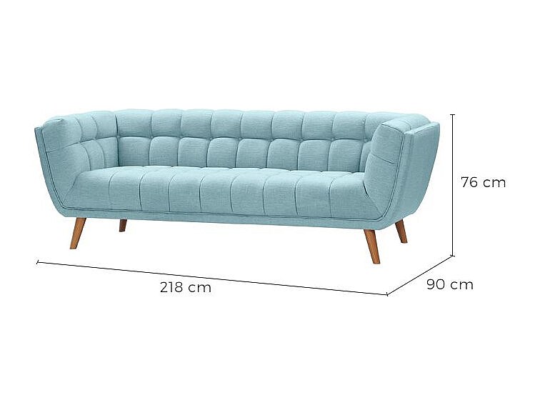 Canapé 3 places capitonné en tissu bleu clair - Carmen