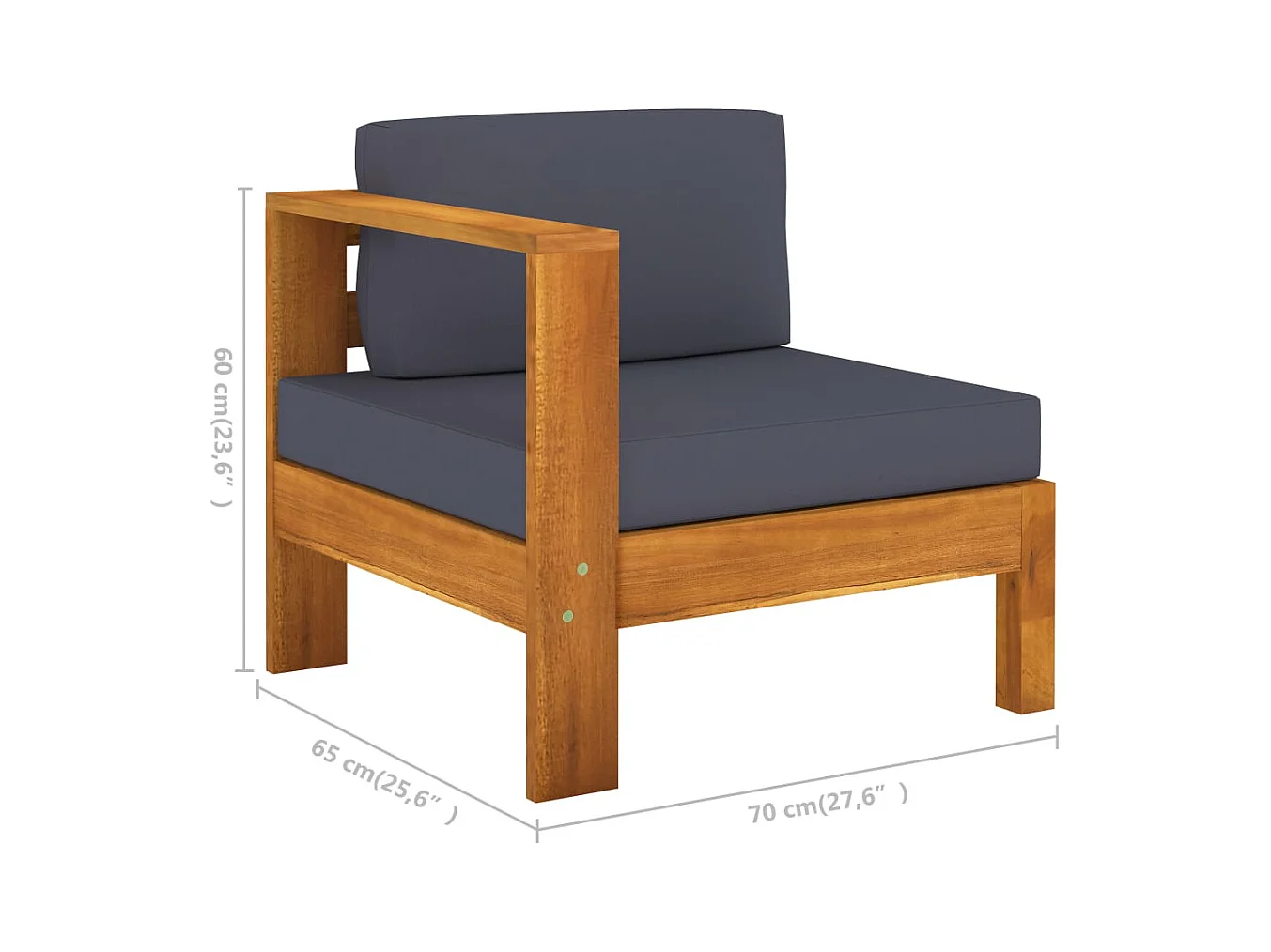 Canapé central avec 1 accoudoir Gris foncé Acacia solide FR99021