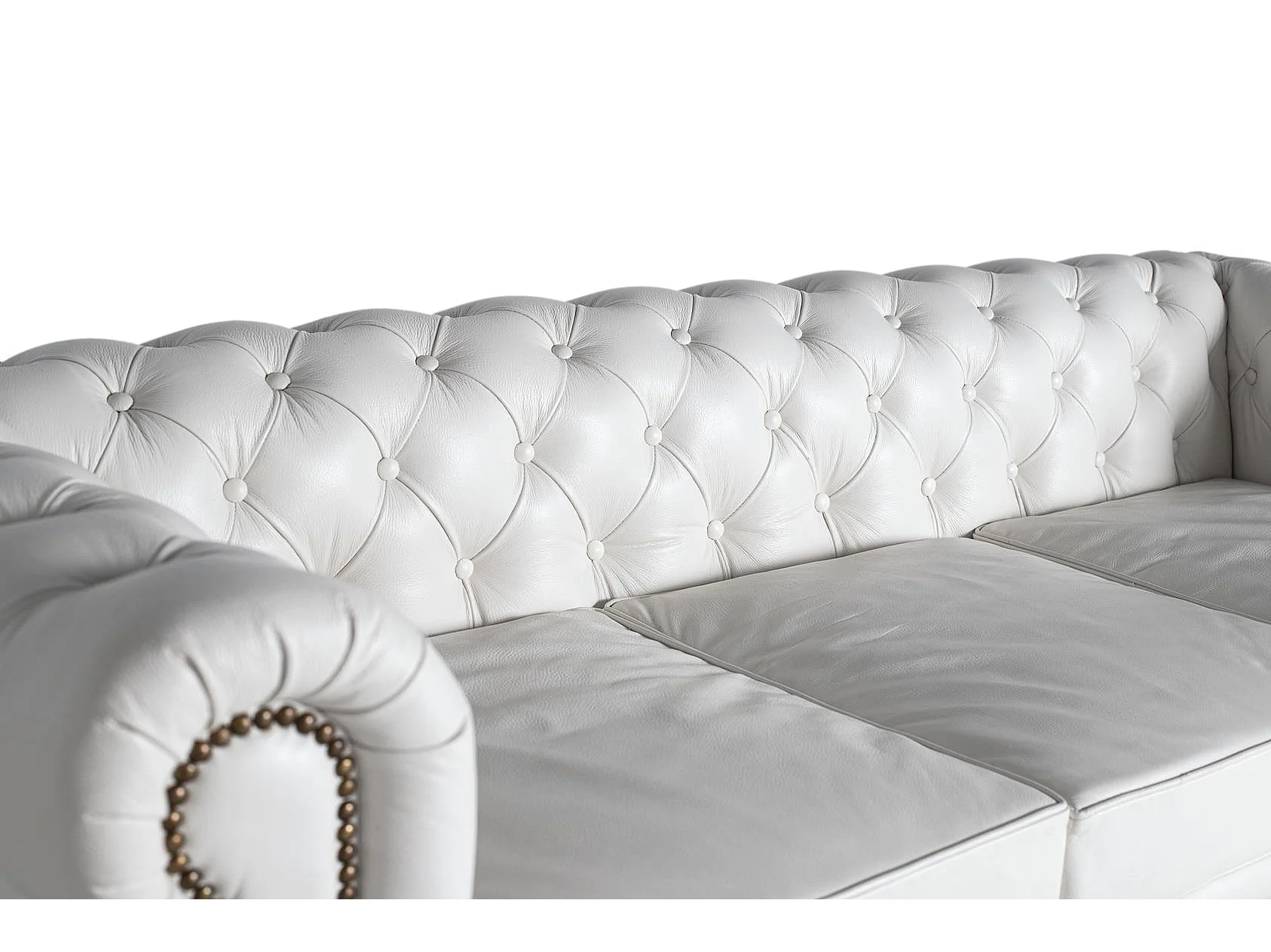 Canapé Chester trois places recouvert de cuir naturel blanc