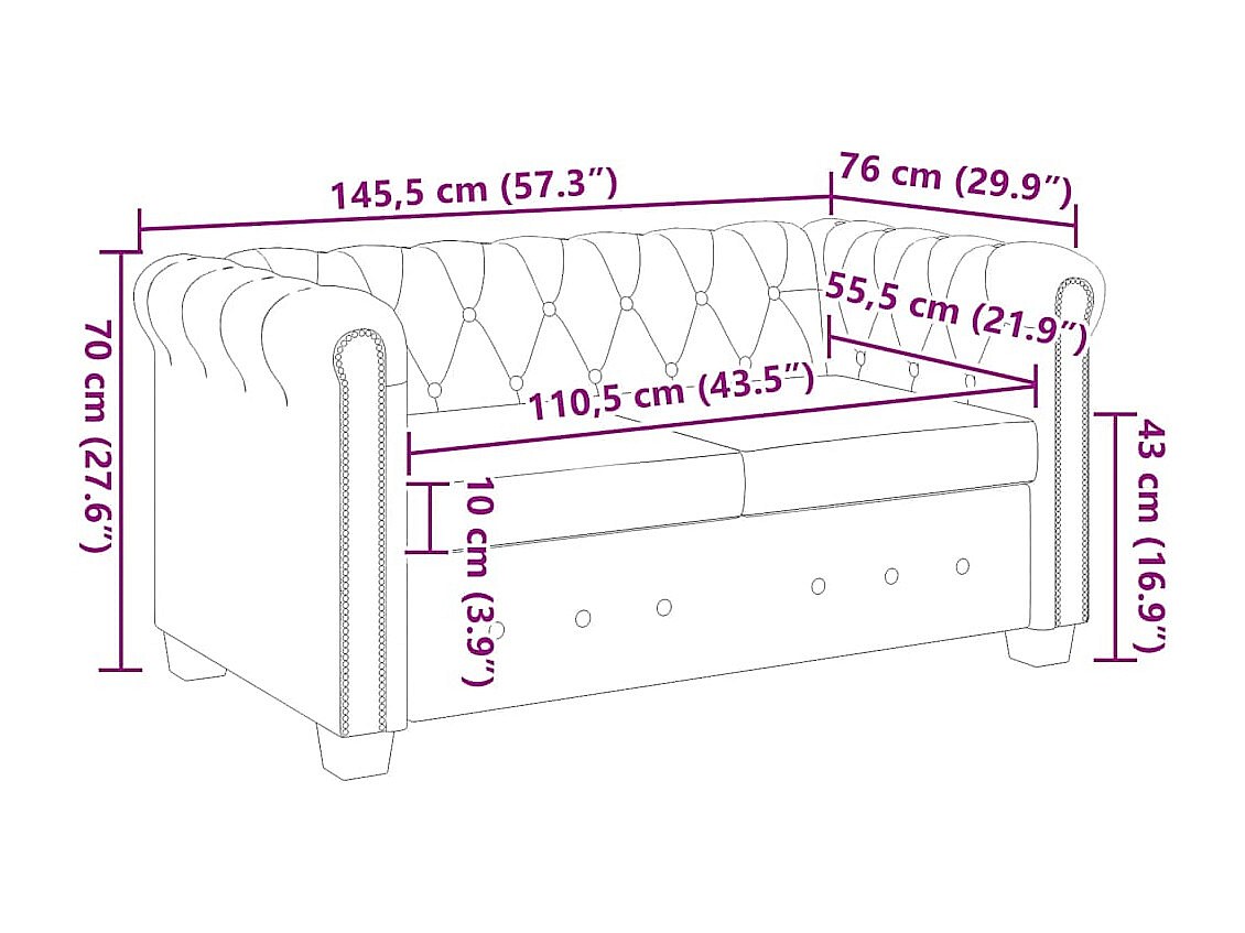 Canapé Chesterfield à 2 places cuir synthétique noir