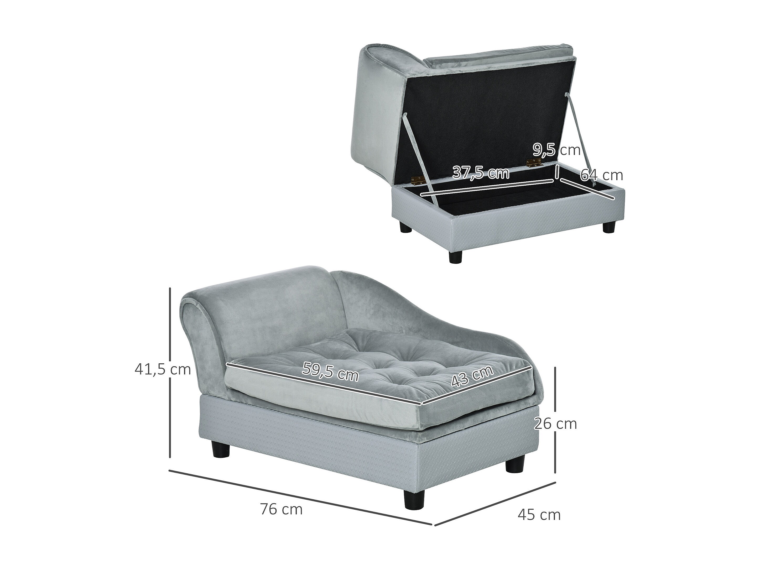 Canapé Chien Chat sur Pied avec Coffre de Rangement Style Moderne Coussin d'assise Amovible Grand Confort 76 x 45 x 41,5 cm Bleu