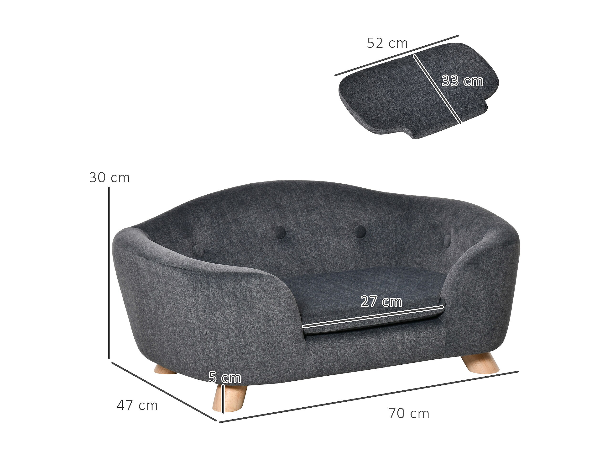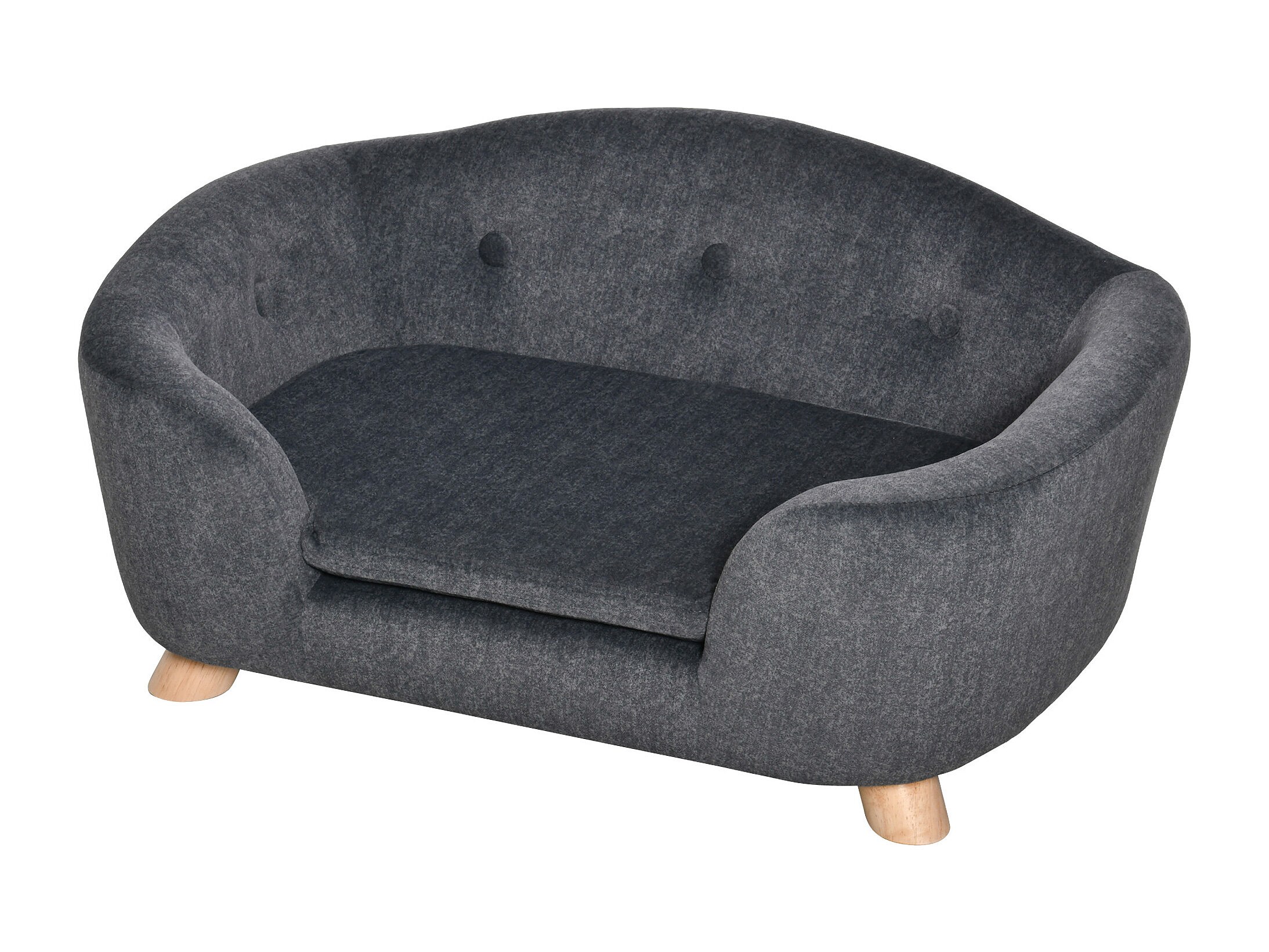 Canapé chien lit pour chien design scandinave coussin moelleux pieds bois massif dim. 64 x 45 x 36 cm velours gris