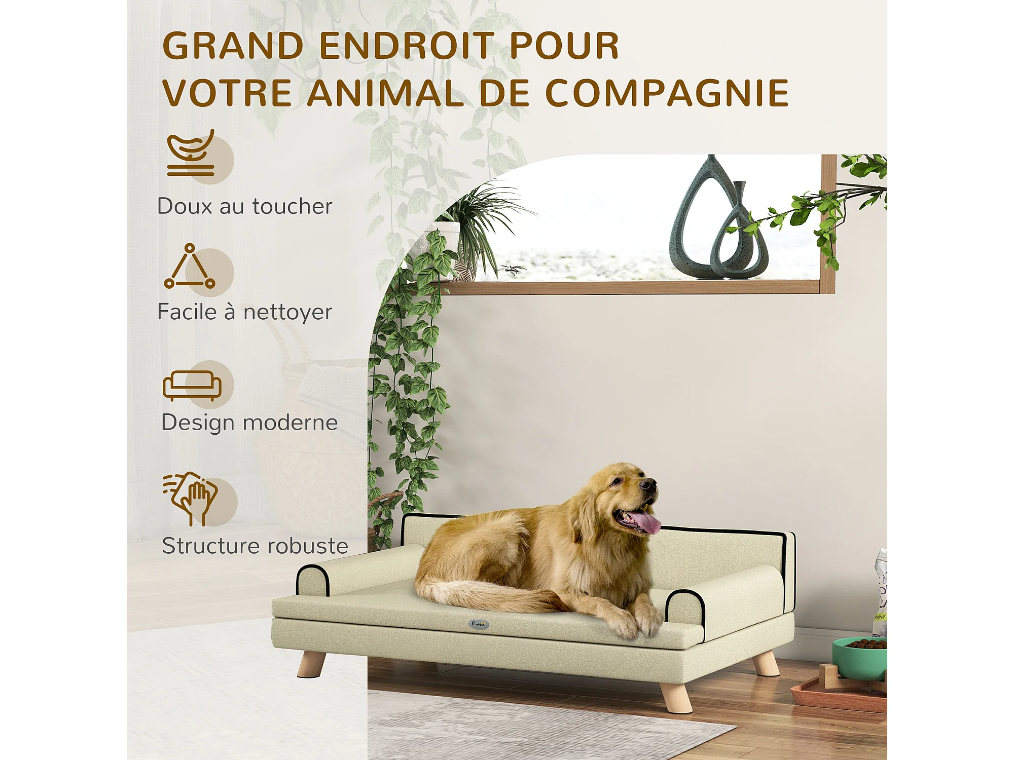 Canapé chien lit pour chien design scandinave coussin moelleux piètement bois dim. 100L x 62l x 32H cm polyester beige