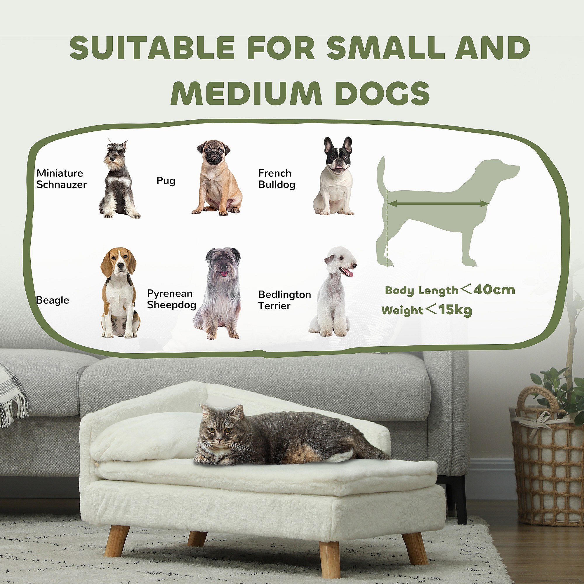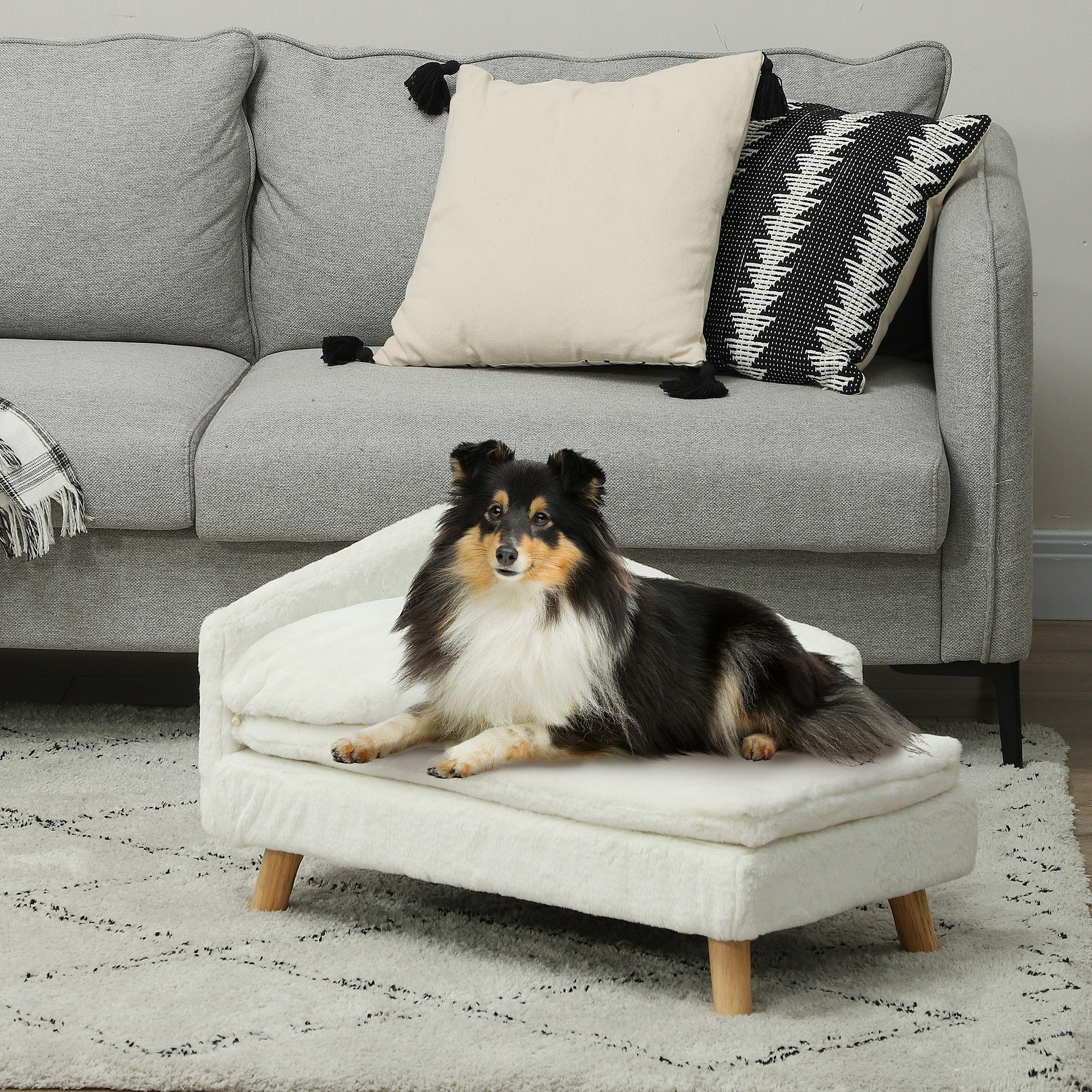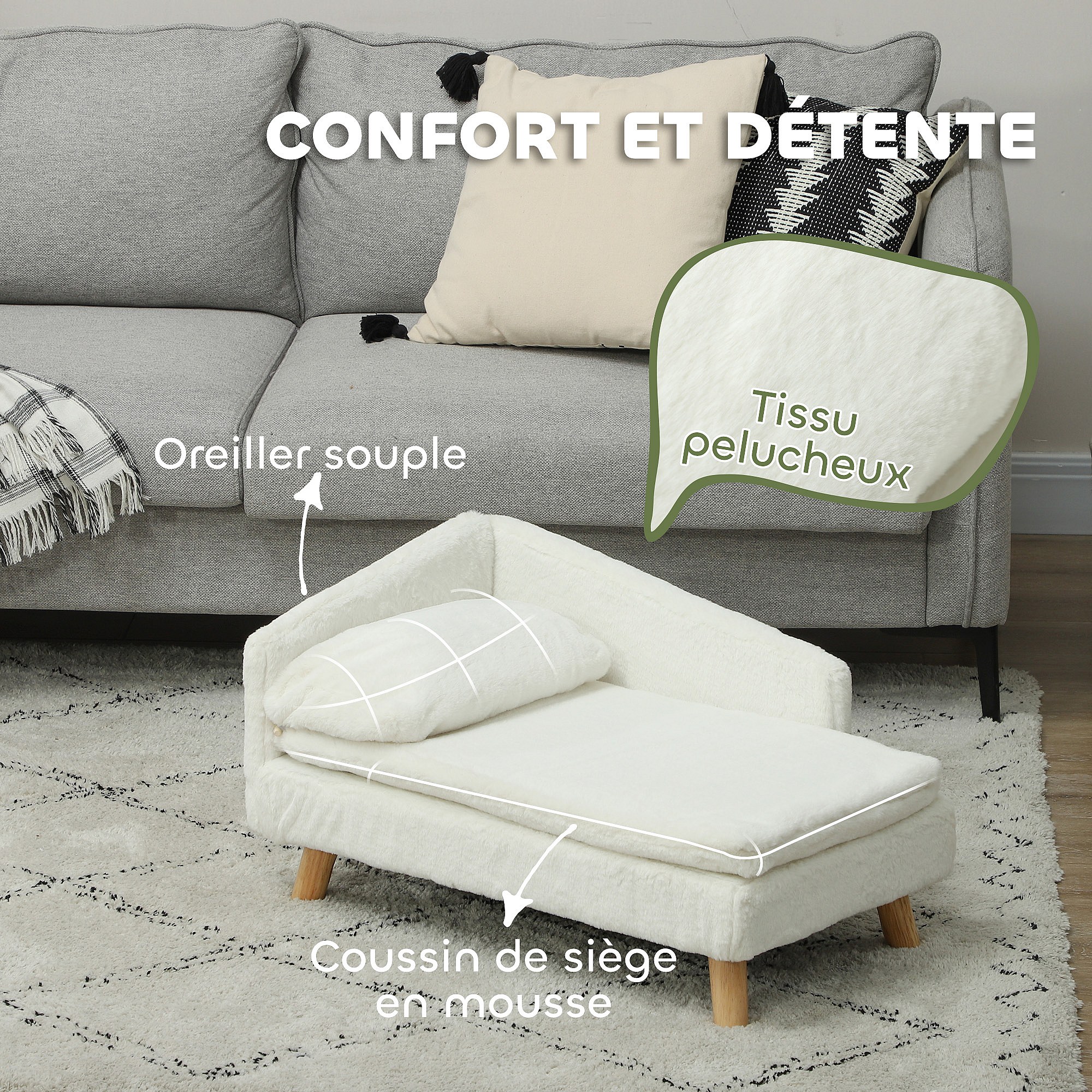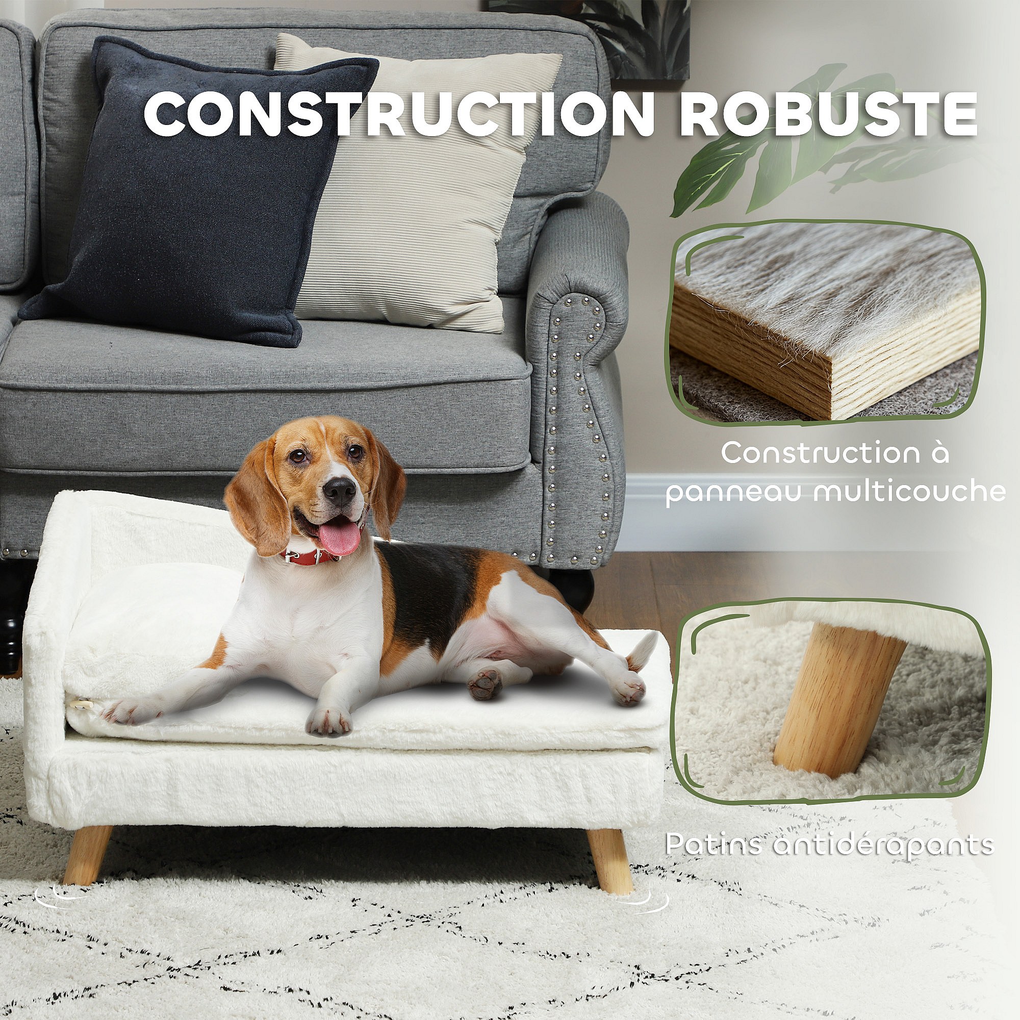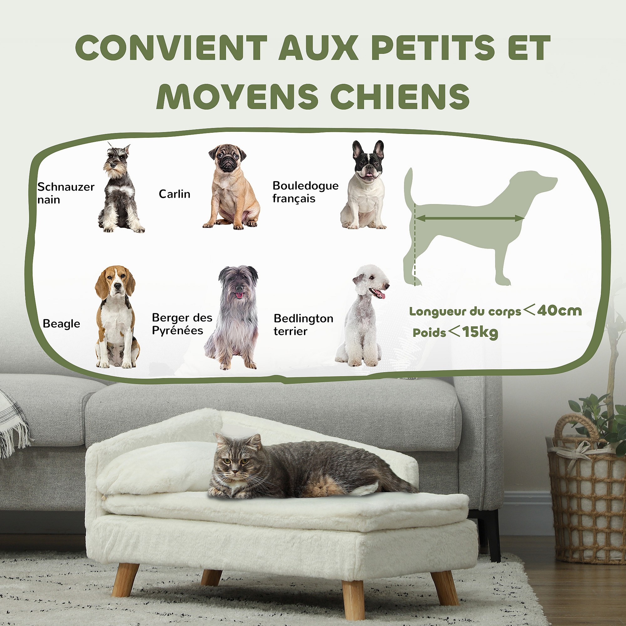 Canapé chien lit pour chien design scandinave coussin moelleux piètement bois dim. 100L x 62l x 32H cm polyester beige
