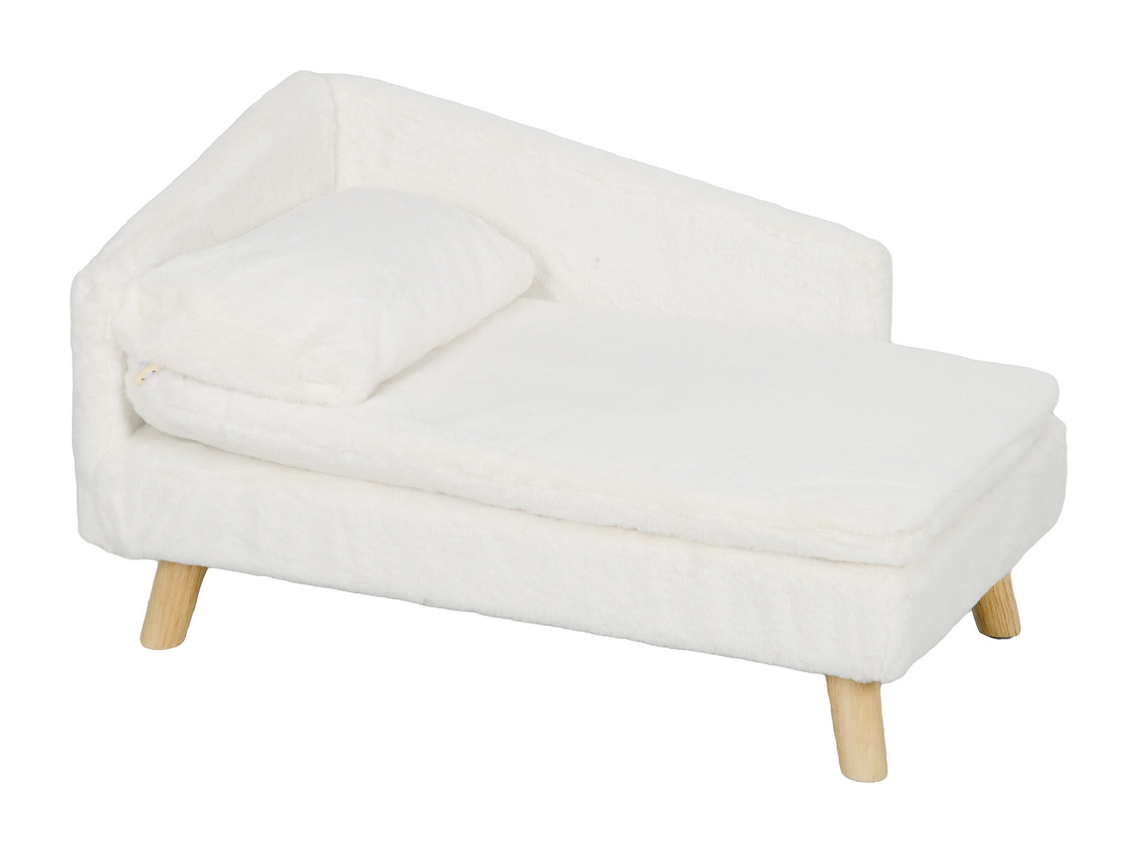 Canapé chien méridienne style scandinave 2 coussins déhoussables bois aspect fourrure crème