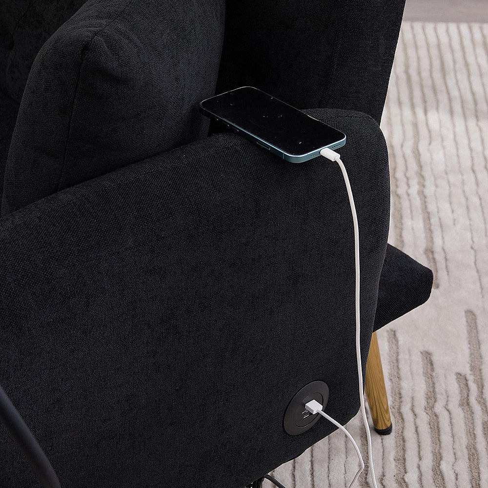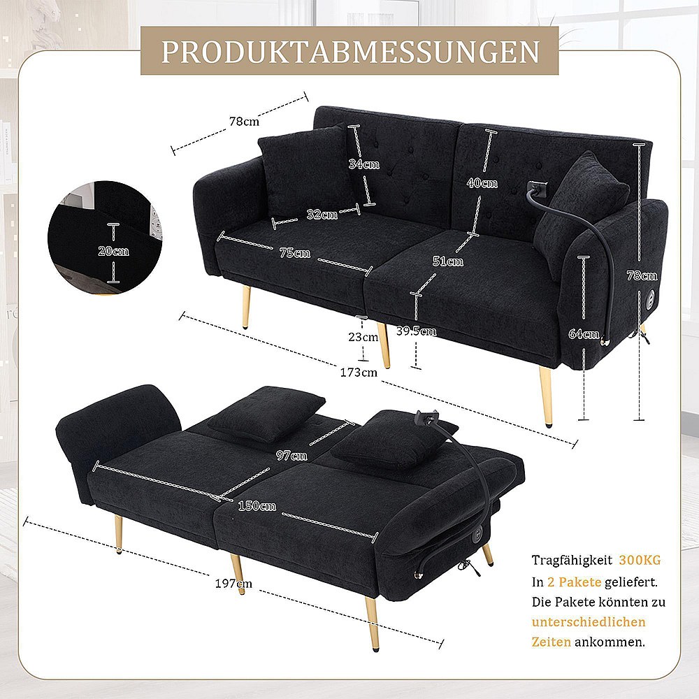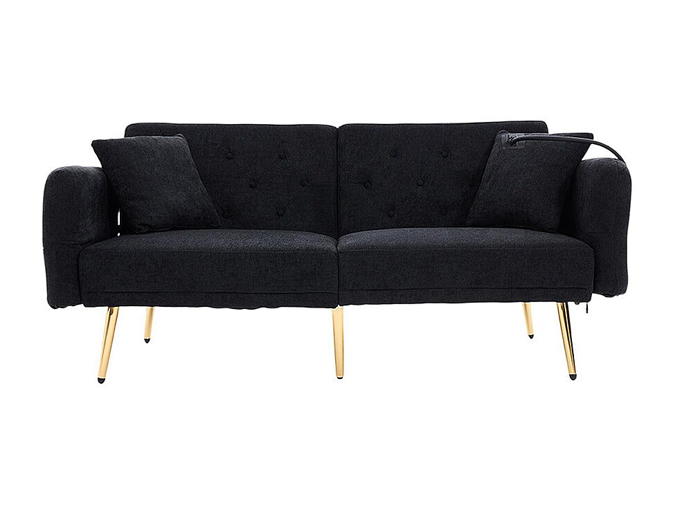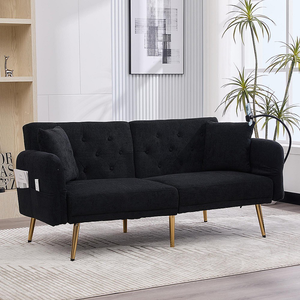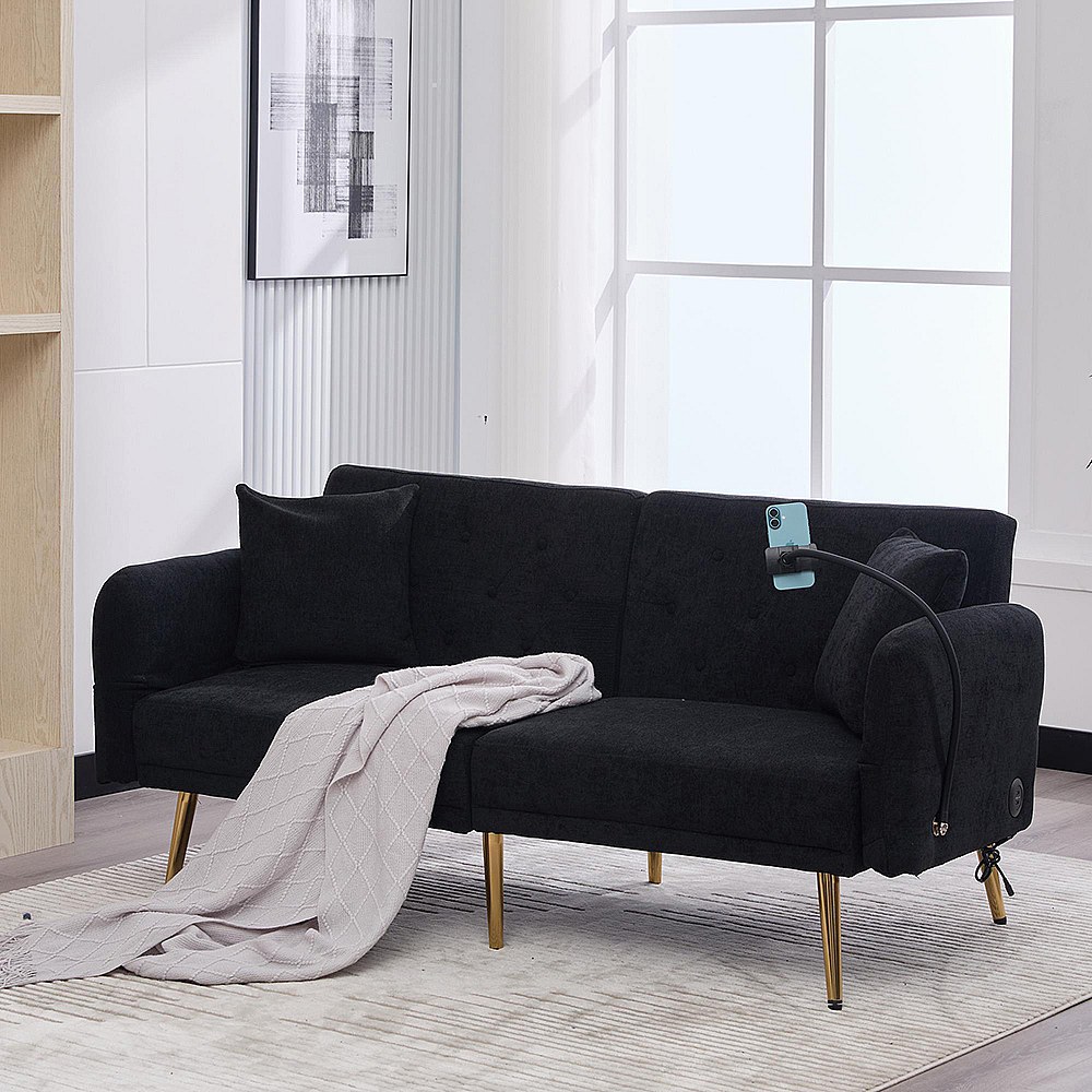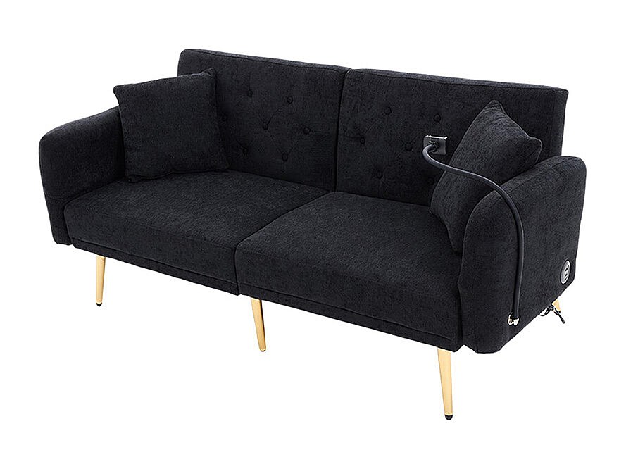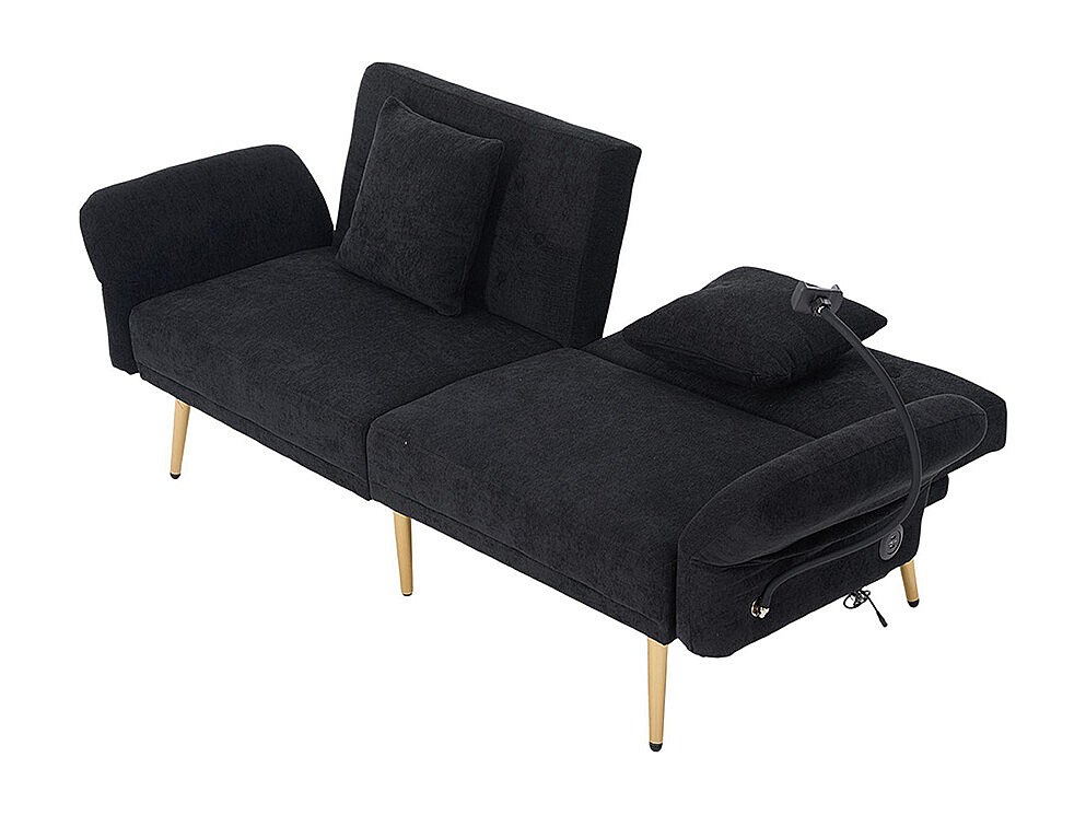 Canapé convertible 2 places dossier ajustable USB poche support téléphone pieds métal pliant siège lit dappoint noir