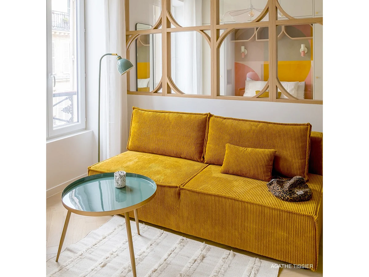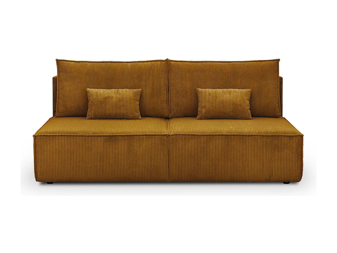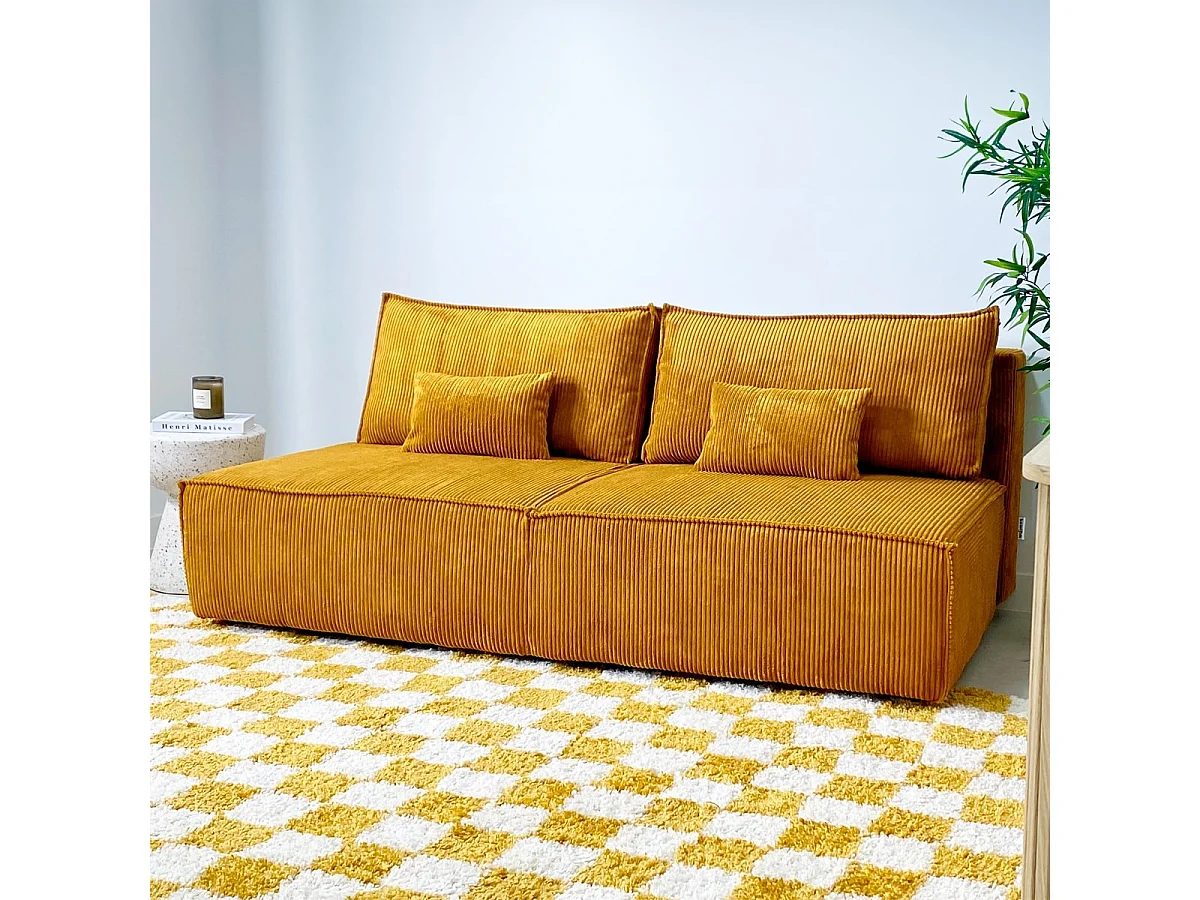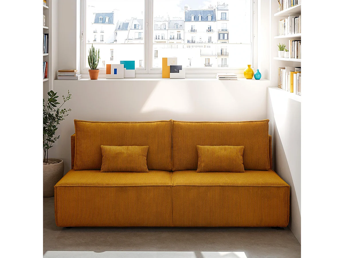 Canapé convertible 3 places avec coffre de rangement en velours côtelé jaune moutarde - Milla