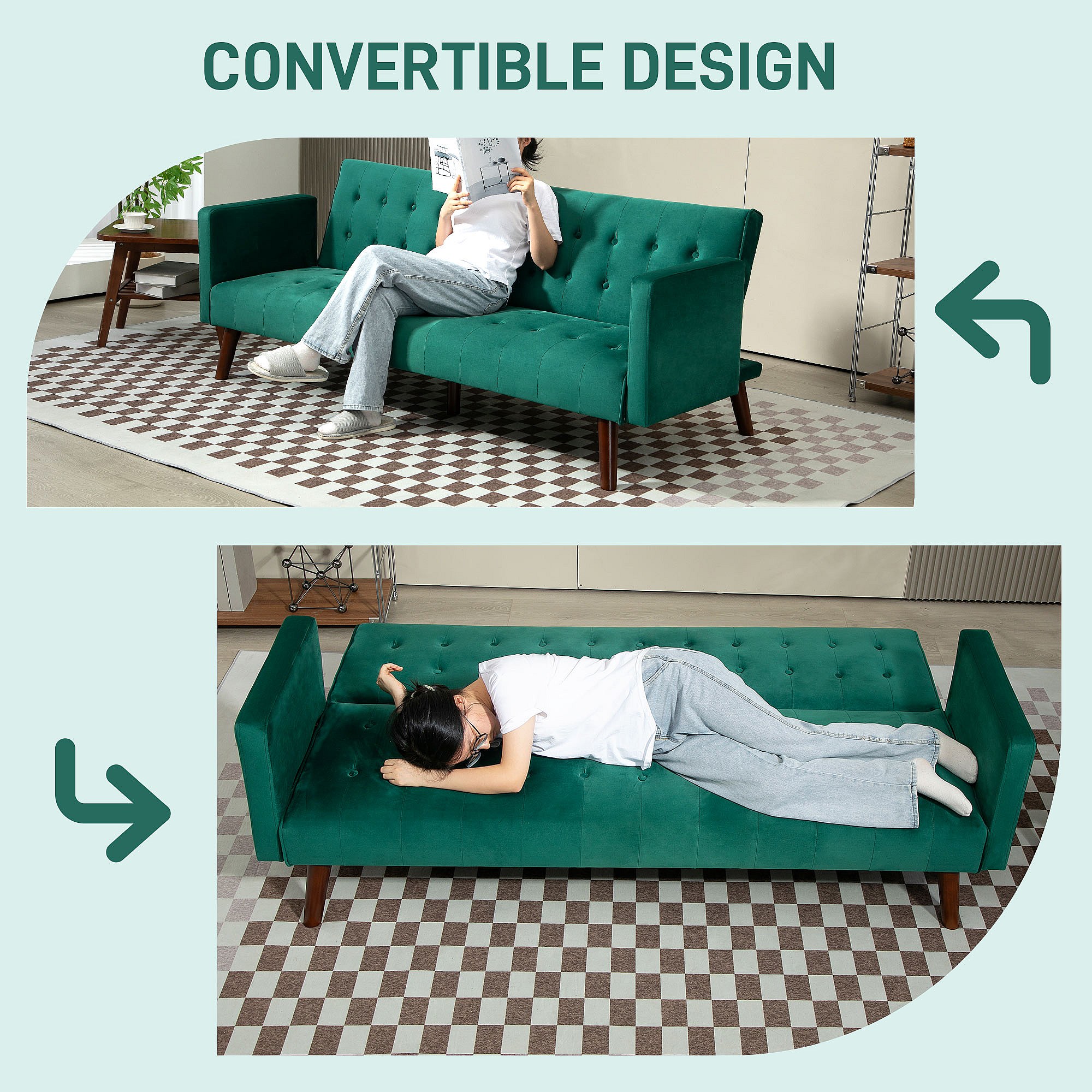 Canapé convertible 3 places design Chesterfield inclinable réglable effet capitonné velours vert turquoise
