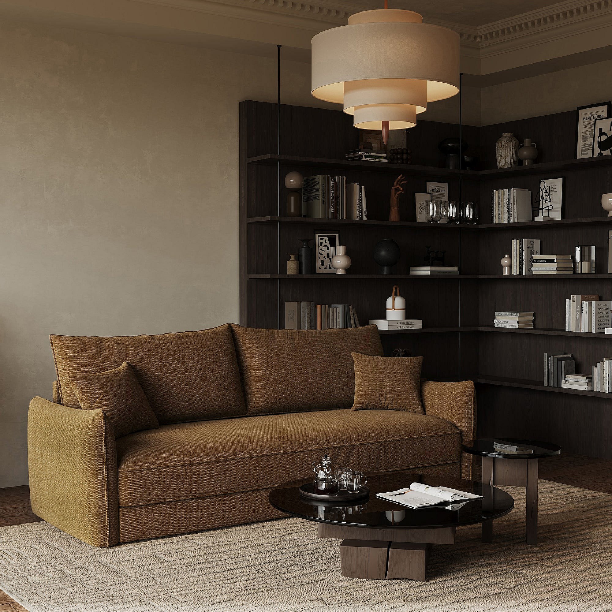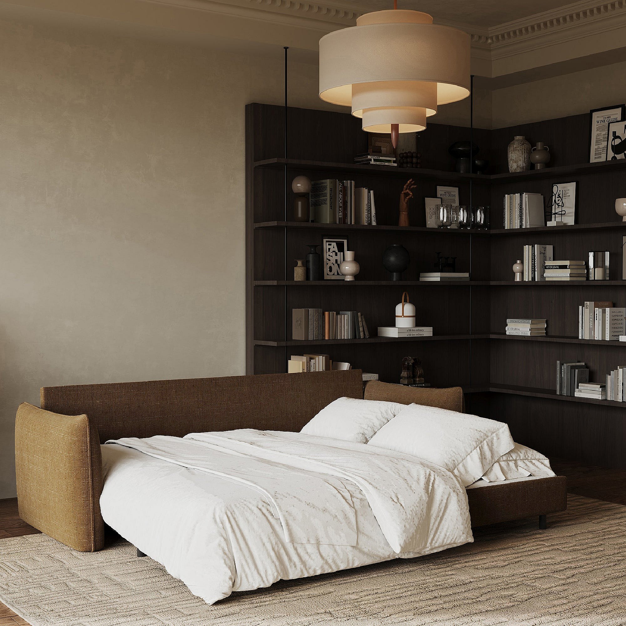 Canapé convertible 3 places tissu tramé noisette 213cm PLUME