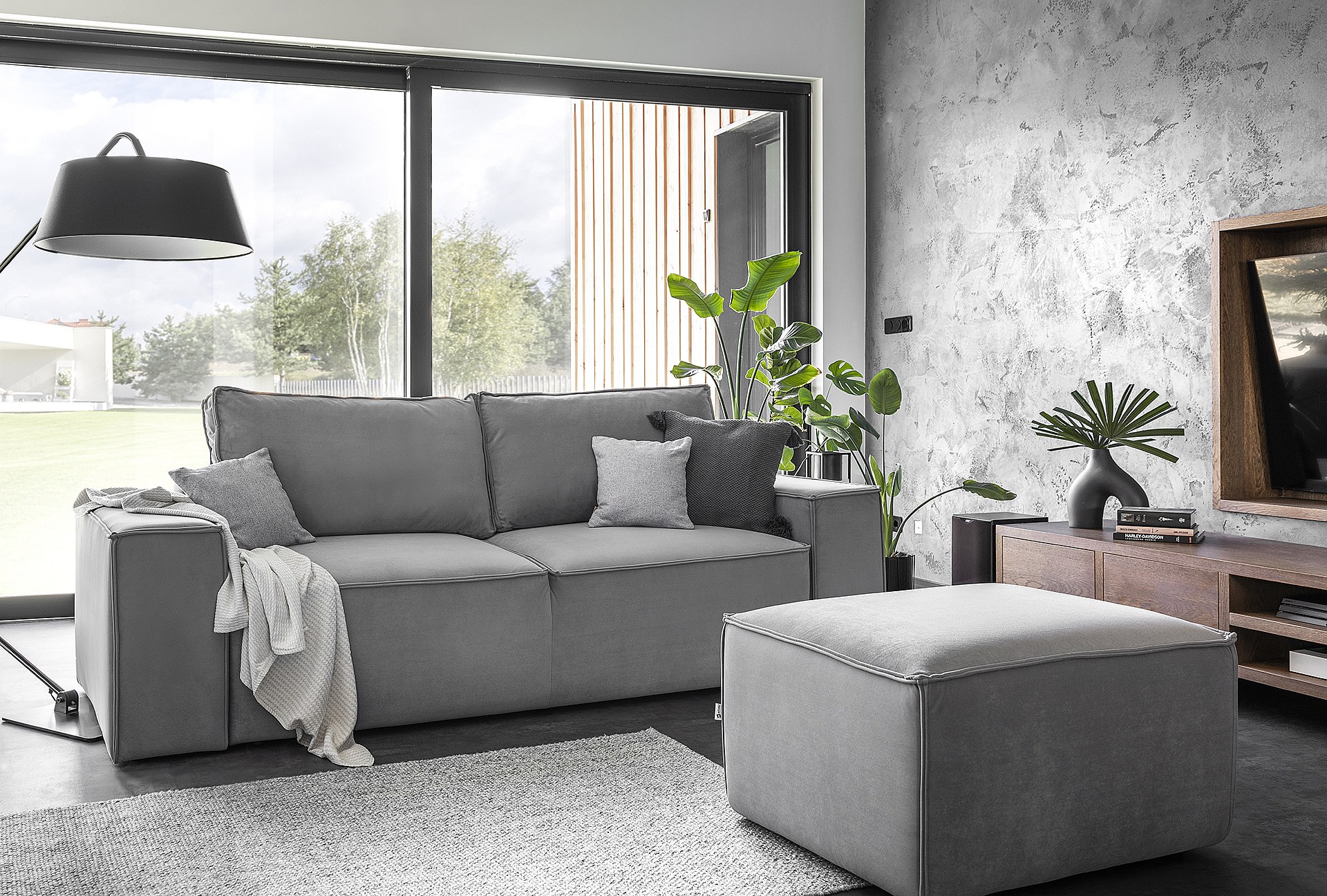 Grand canapé convertible en tissu WILACE - Confort moderne et élégant-Gris souris