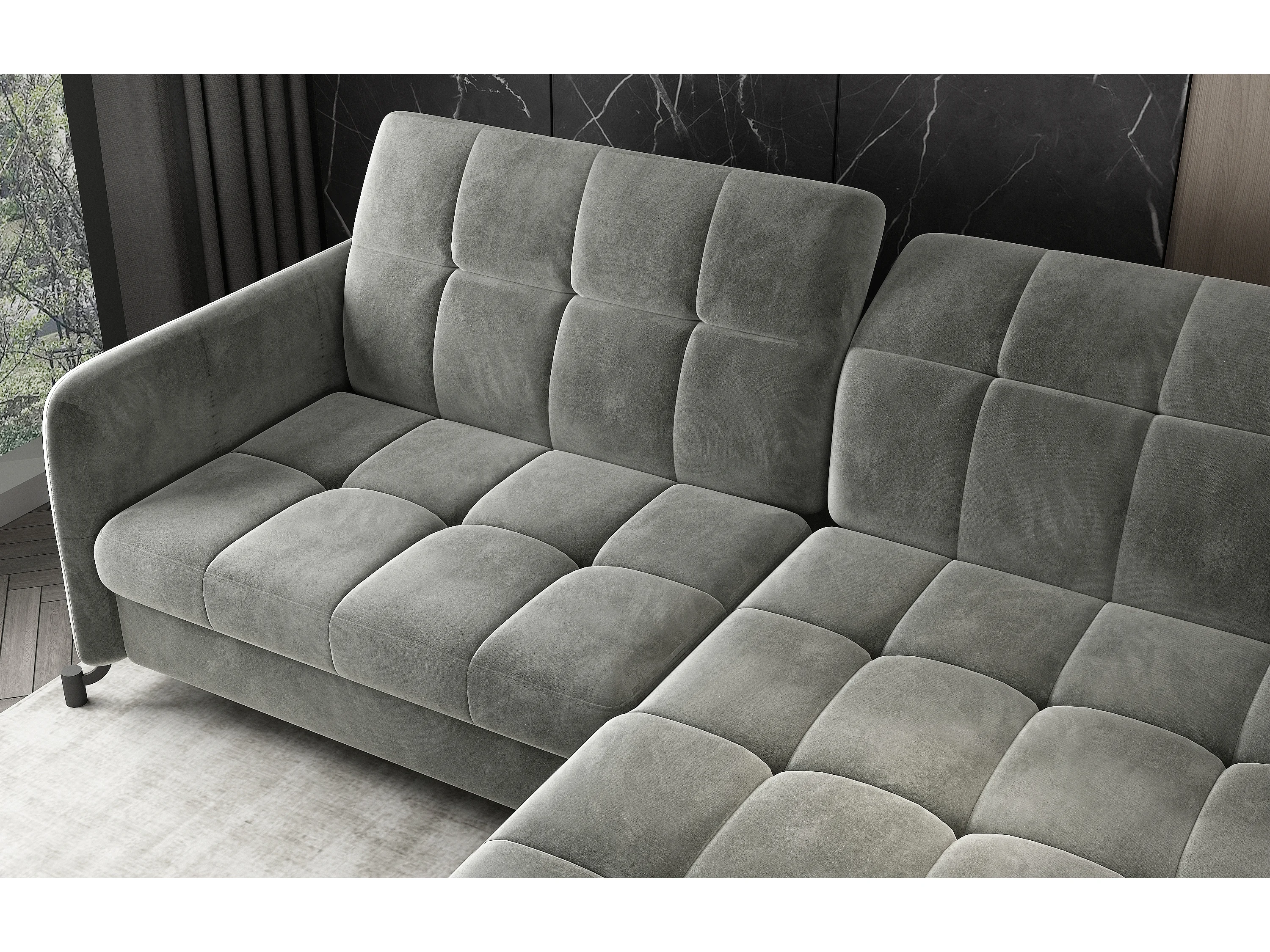 Canapé d'angle convertible velours avec coffre de rangement LORI-Vert épinard-angle droit