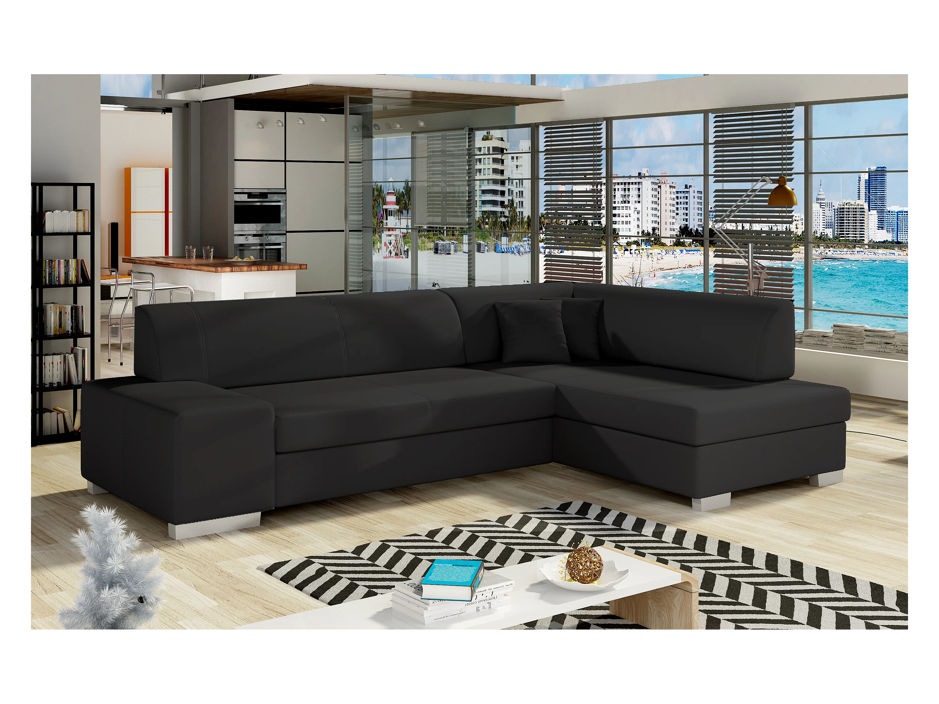 Canapé convertible angle droit simili cuir noir Polky 272cm