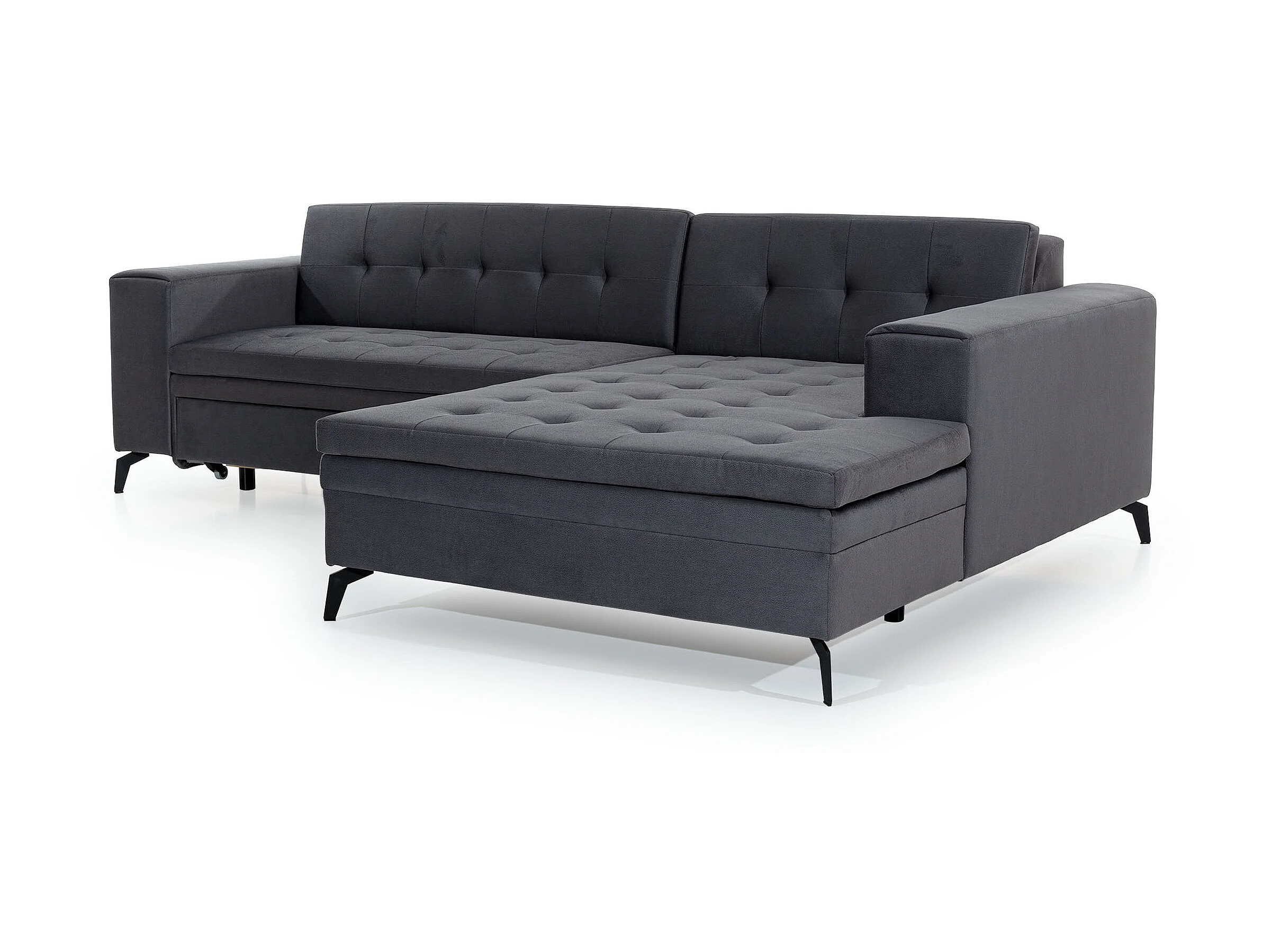 Canapé convertible capitonné angle droit velours gris anthracite et pieds métal noir Lazor 295cm