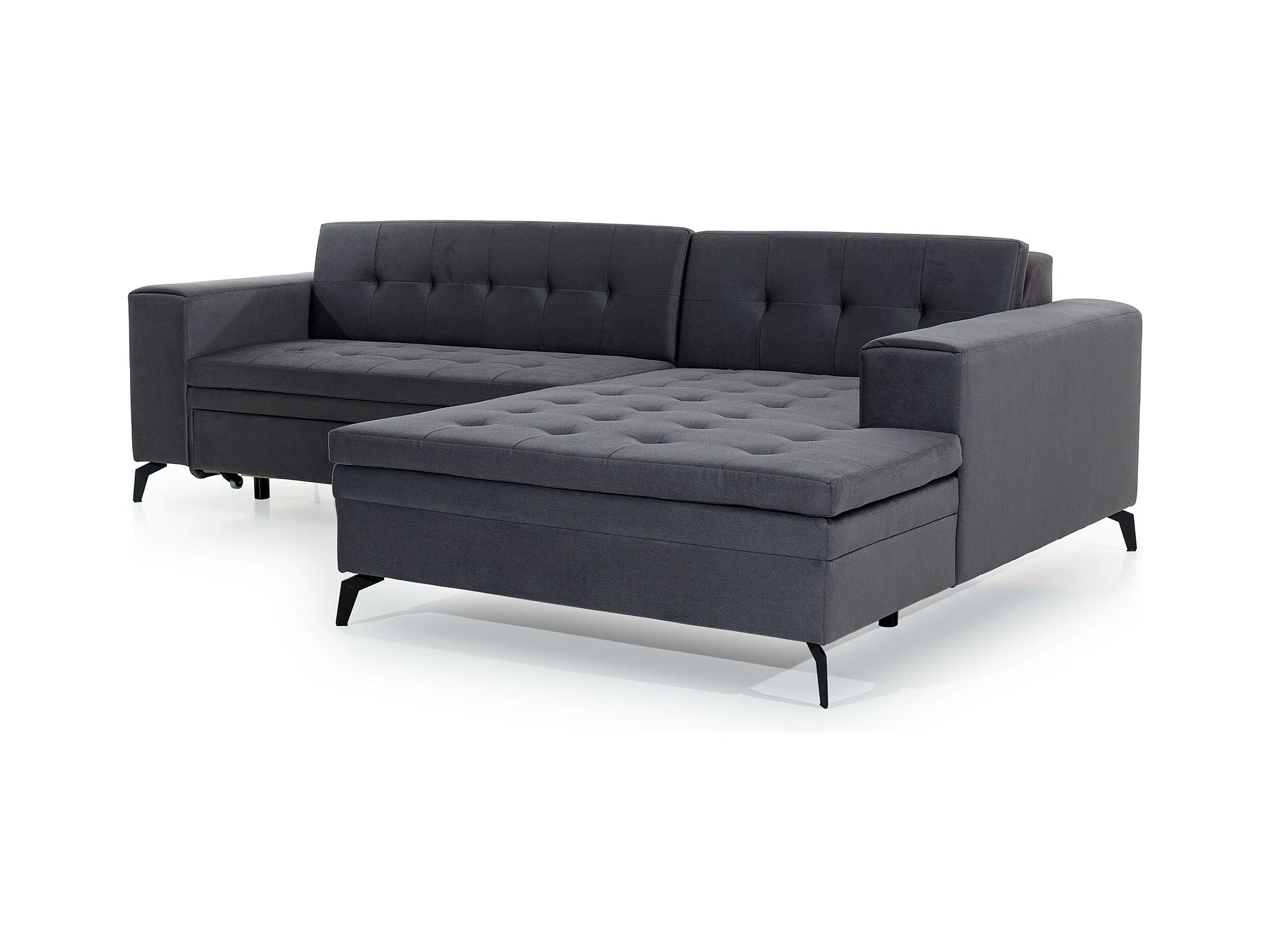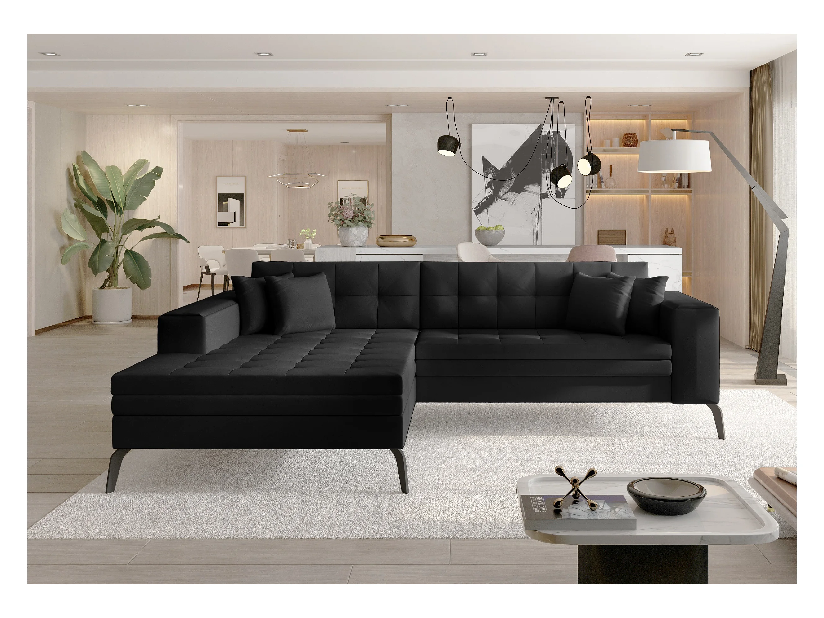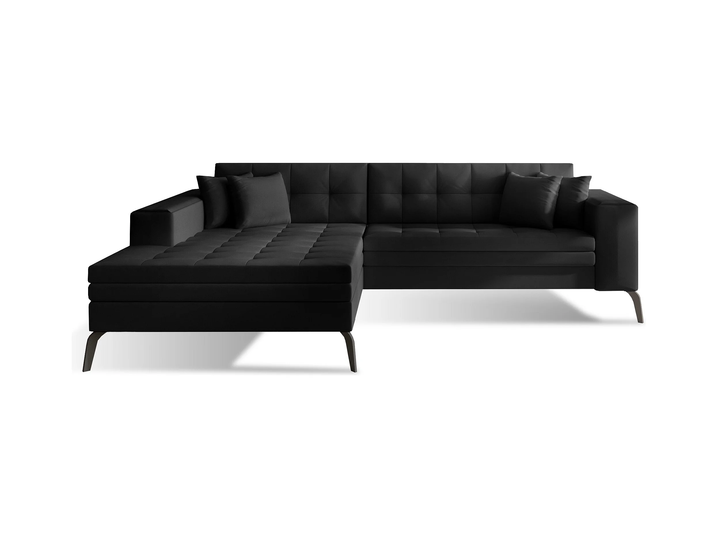 Canapé convertible capitonné angle gauche simili cuir noir et pieds métal noir Lazor 295cm