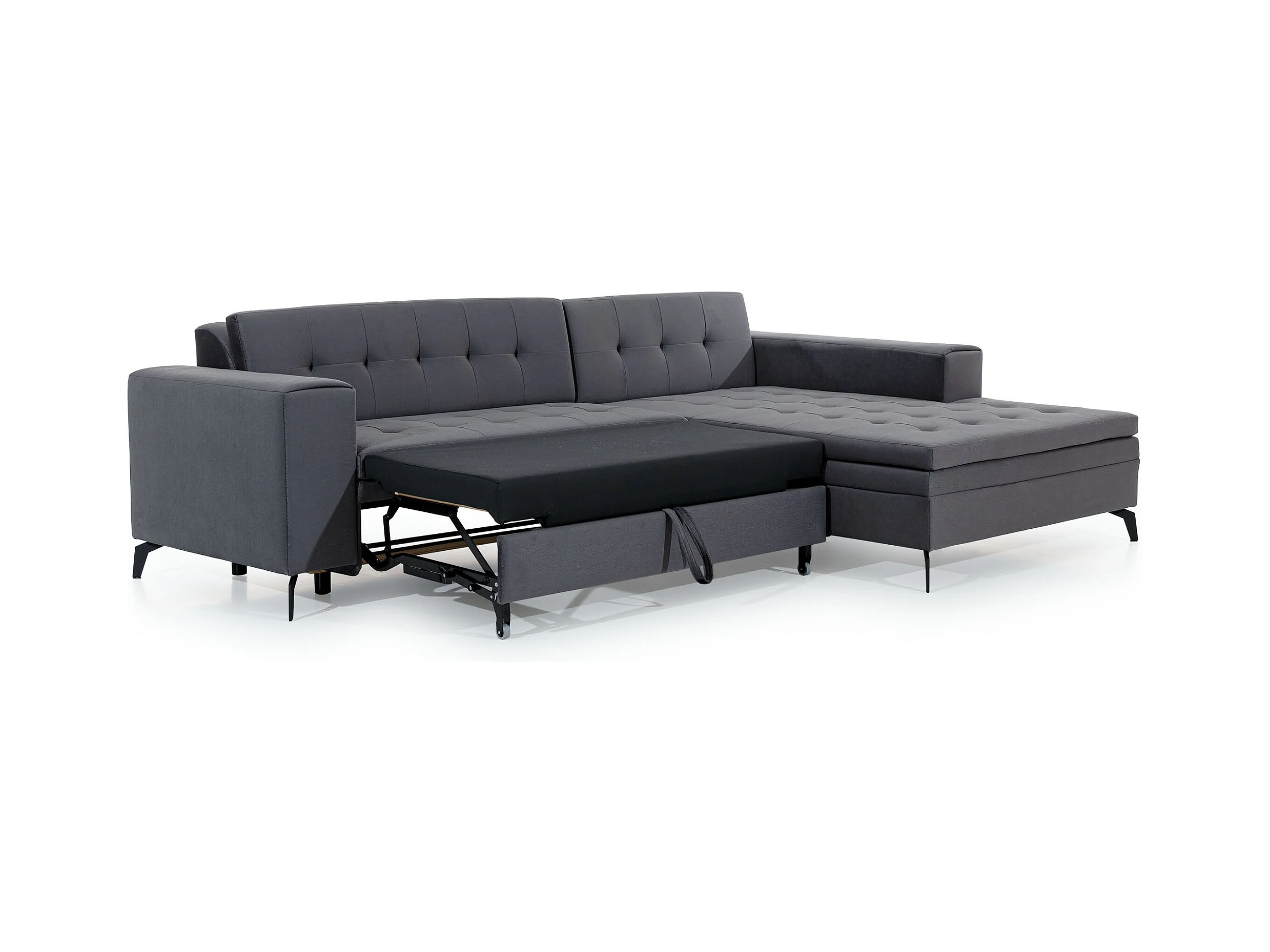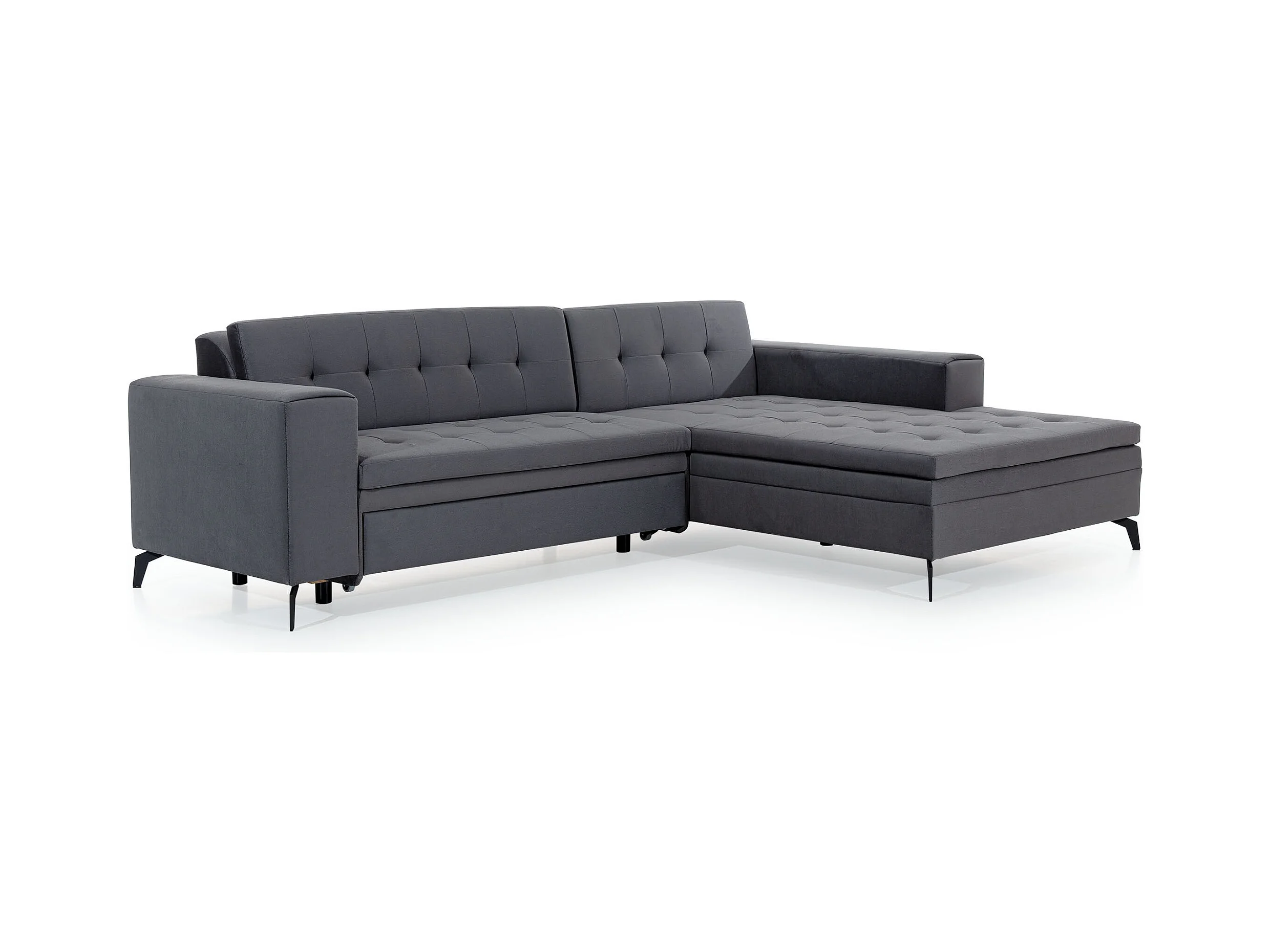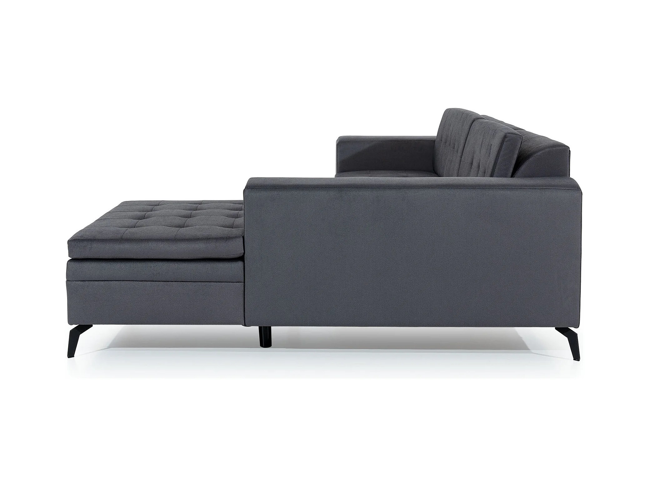 Canapé convertible capitonné angle gauche simili cuir noir et pieds métal noir Lazor 295cm
