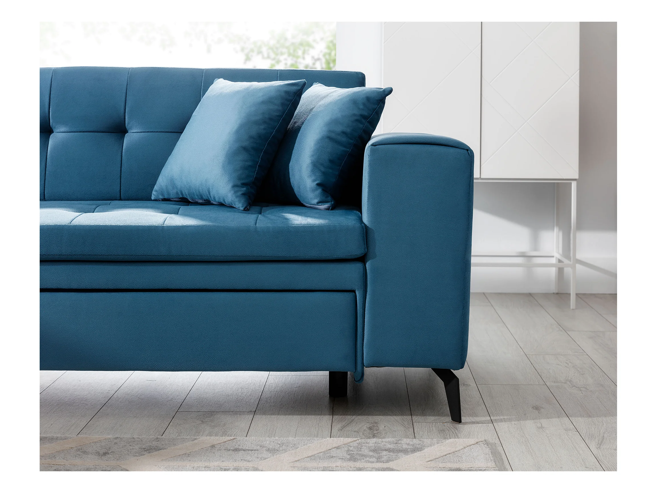 Canapé convertible capitonné angle gauche simili cuir noir Larry 260cm