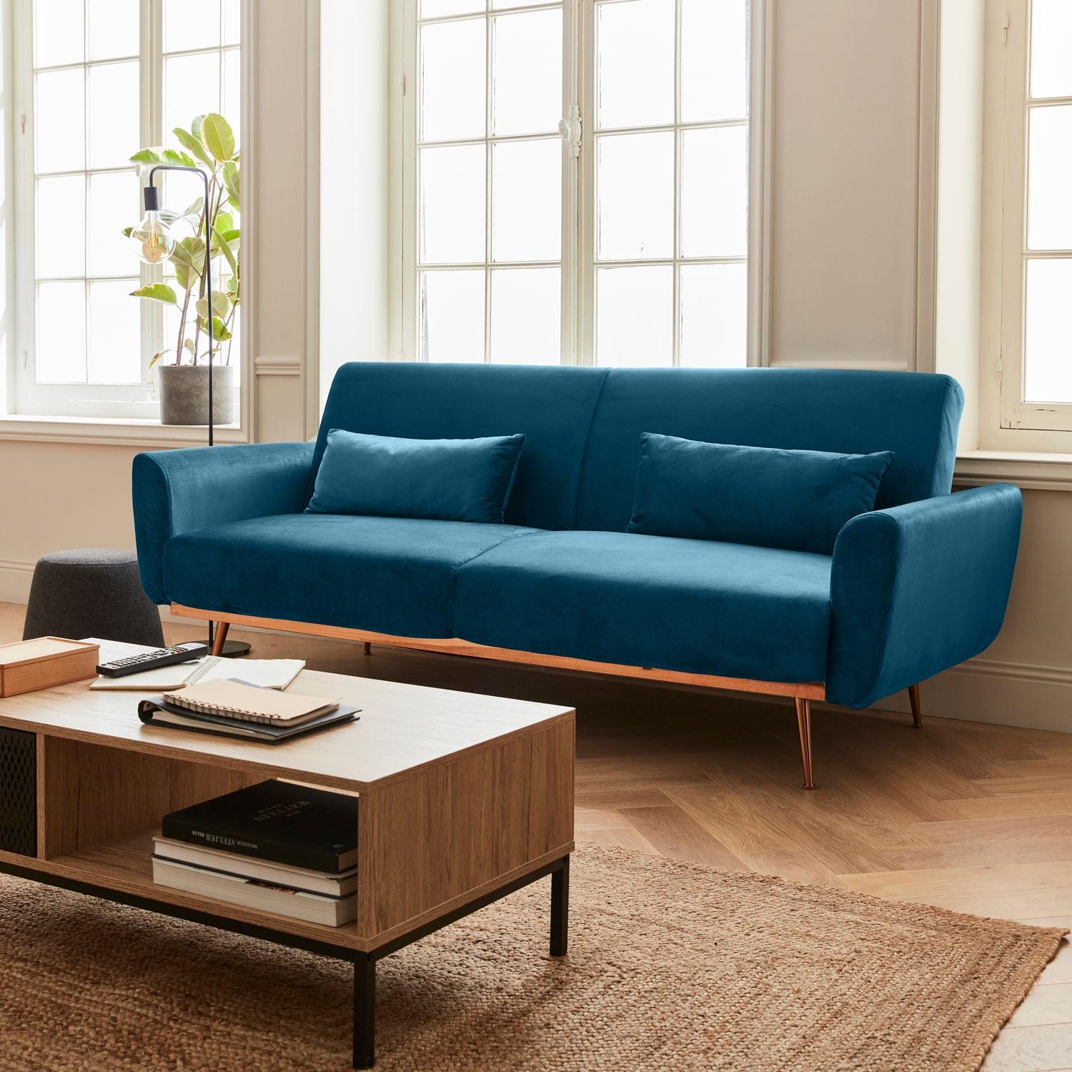 Canapé convertible design en velours - Oskar - 2 - 3 places scandinave droit avec pieds fins or rose