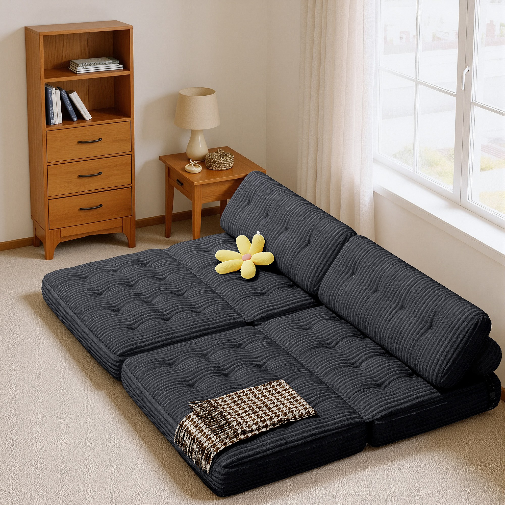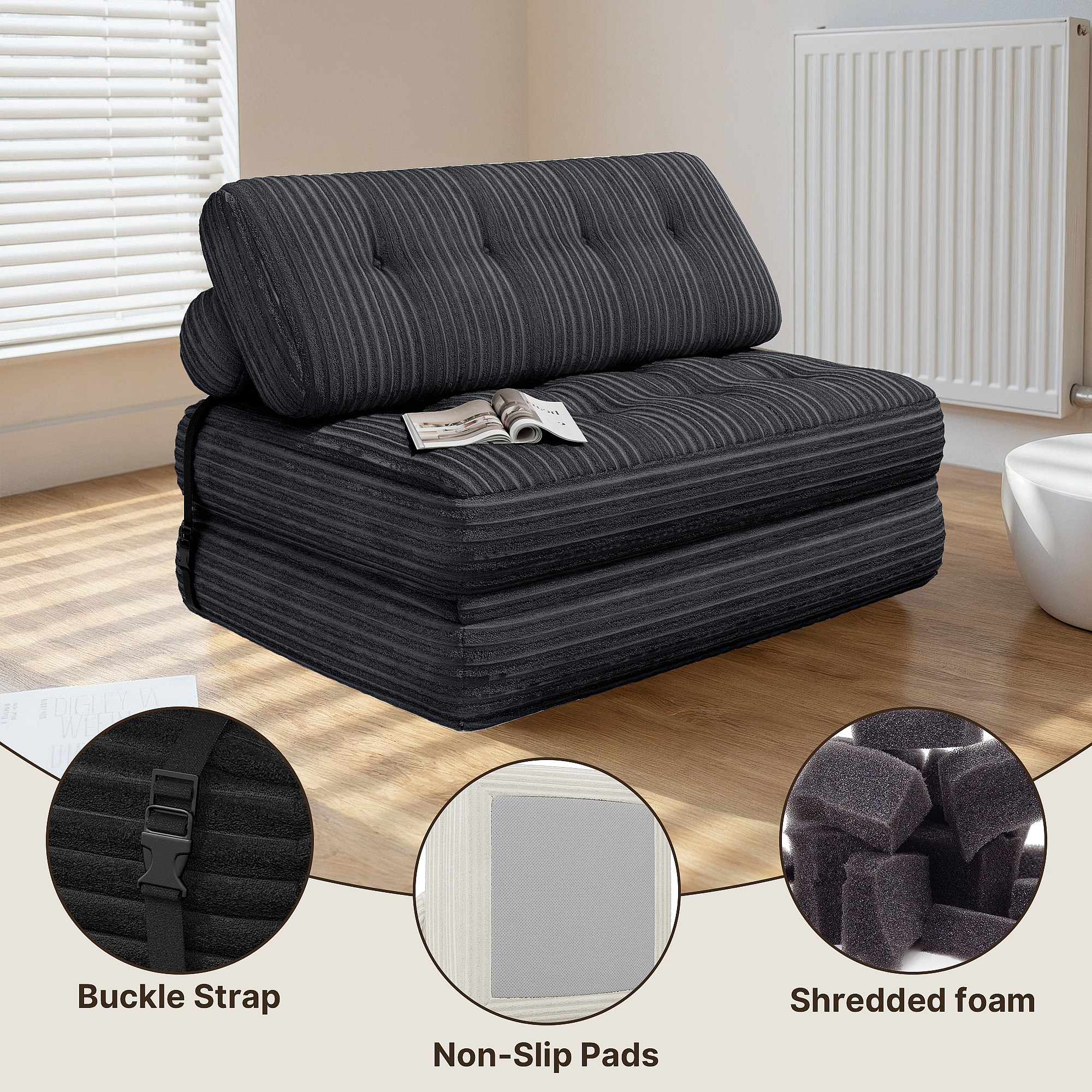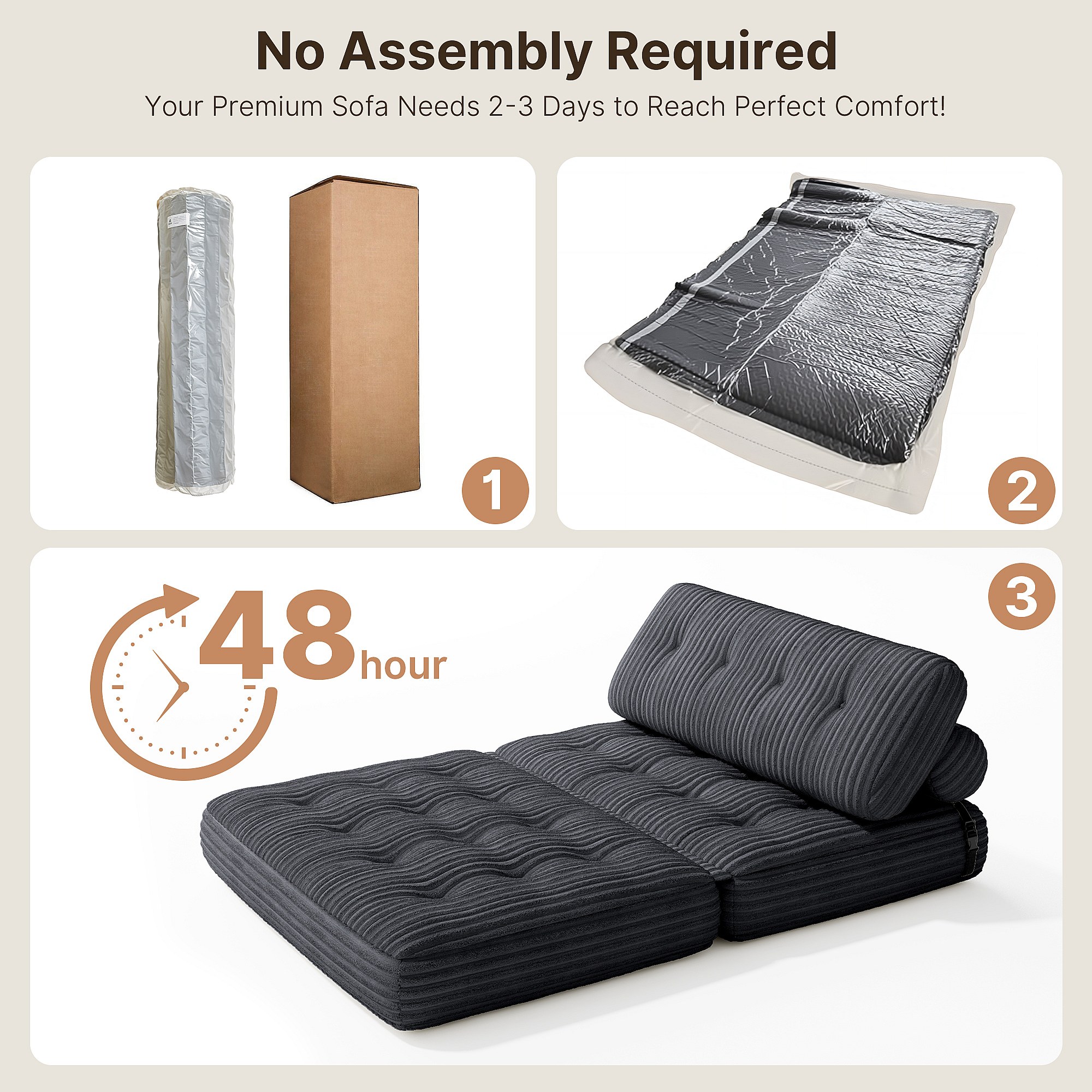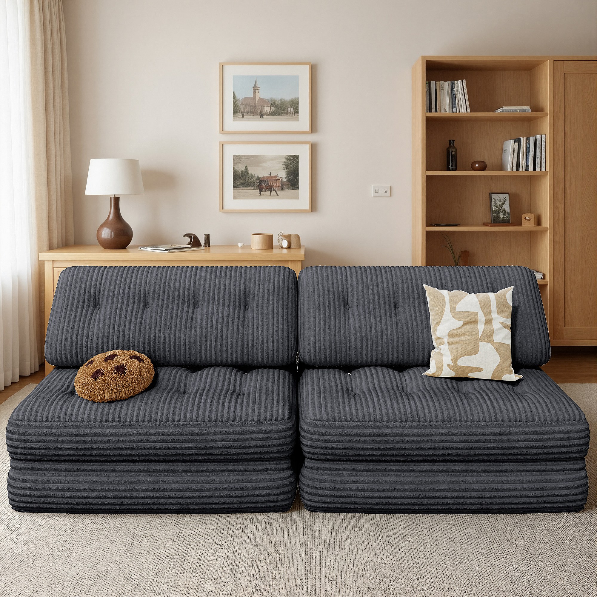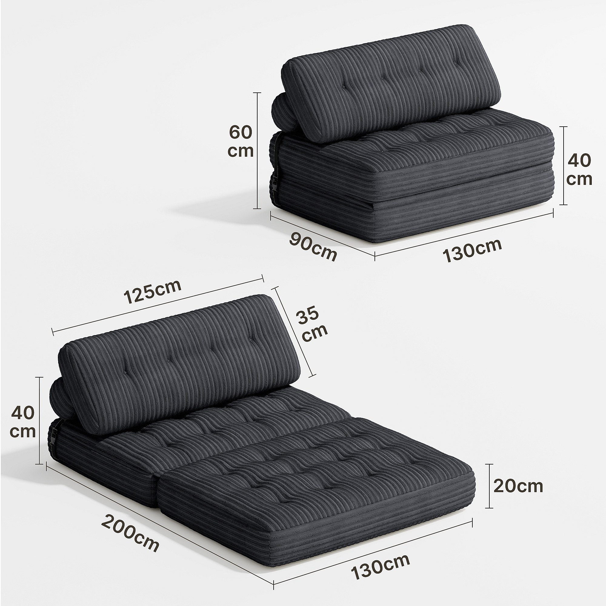 Canapé Convertible Fauteuil Lit 2 Place Dossier Gris foncé Velours Côtelé Longue Coussin 130x90cm