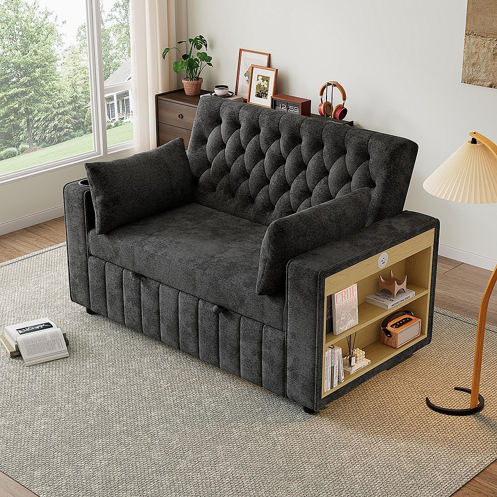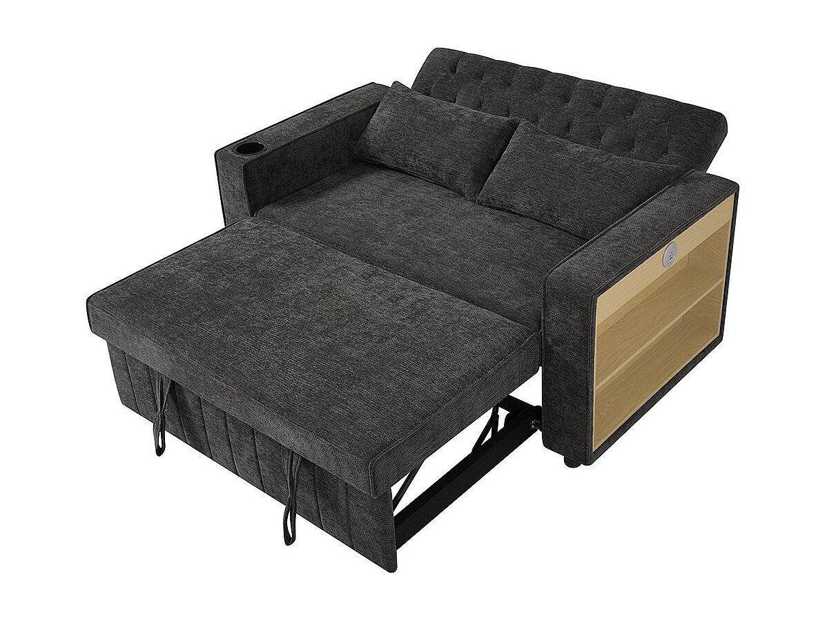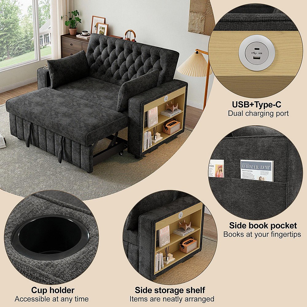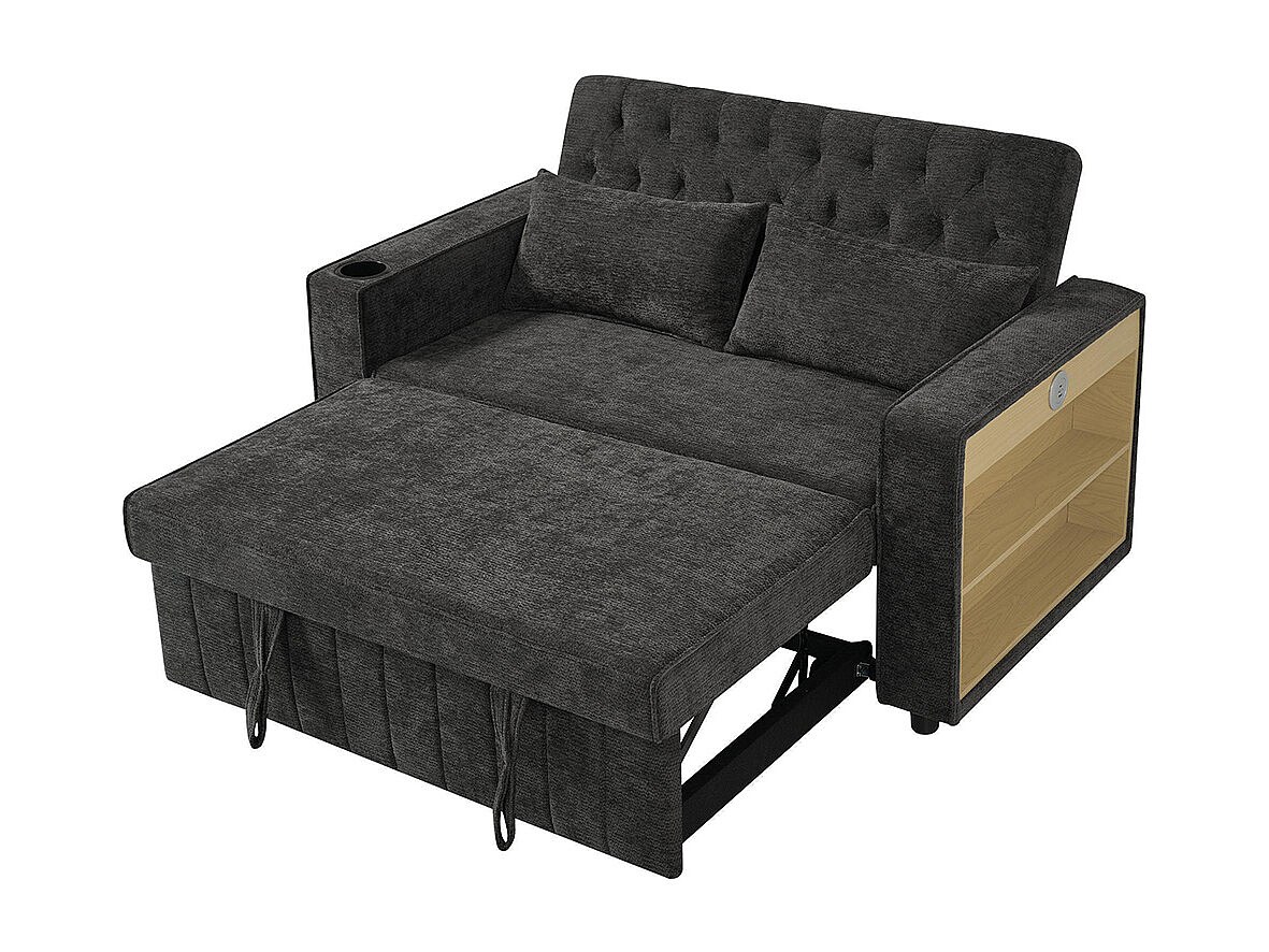 Canapé convertible gris multifonctionnel rangement couchage porte-gobelets USB coussins peu encombrant salon chambre
