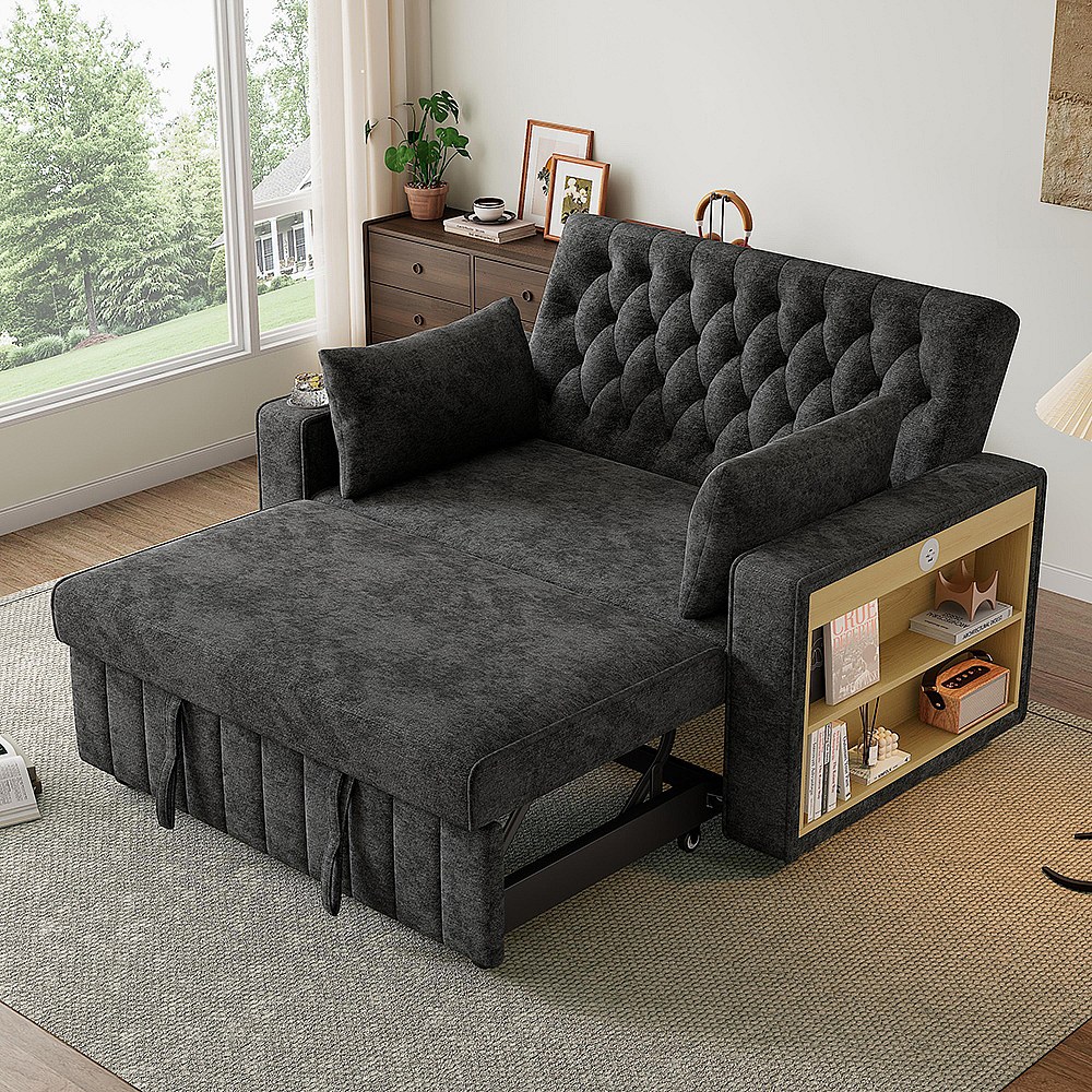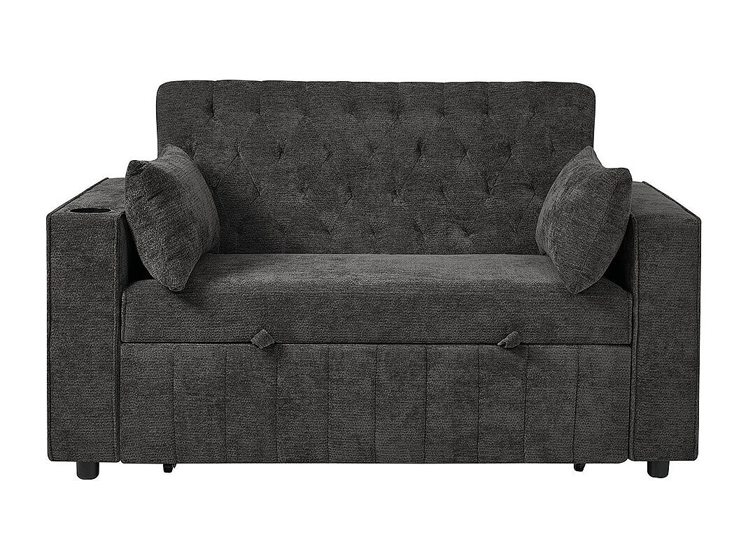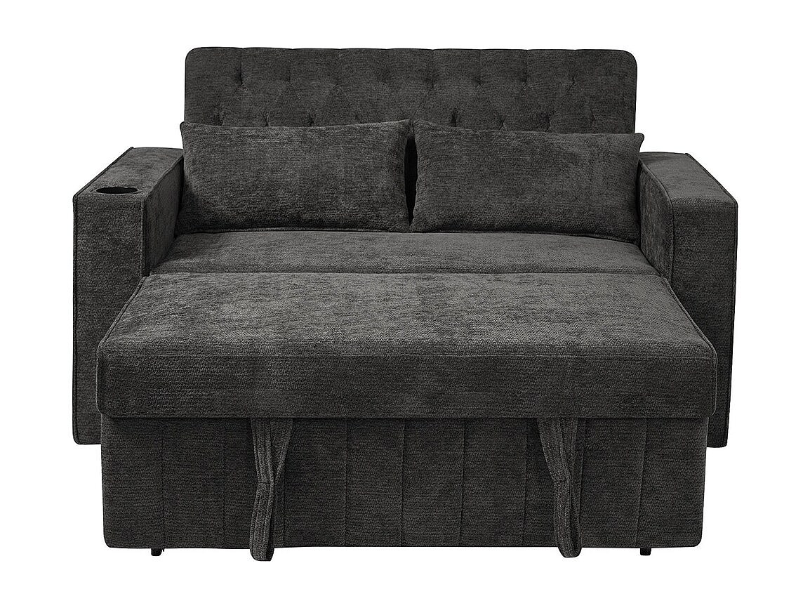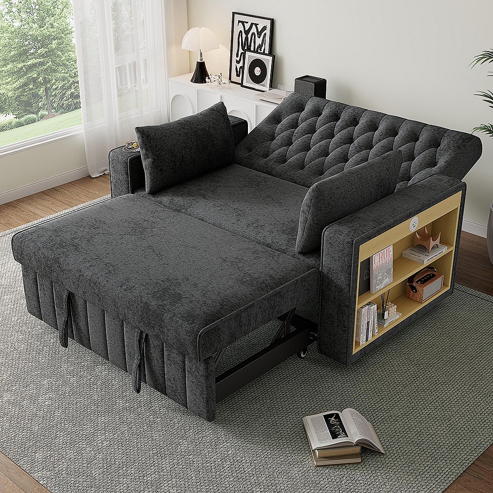 Canapé convertible gris multifonctionnel rangement couchage porte-gobelets USB coussins peu encombrant salon chambre