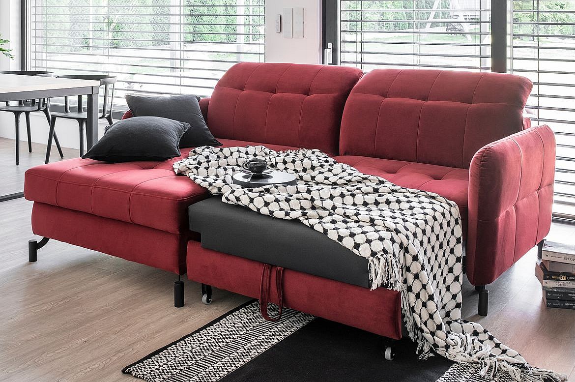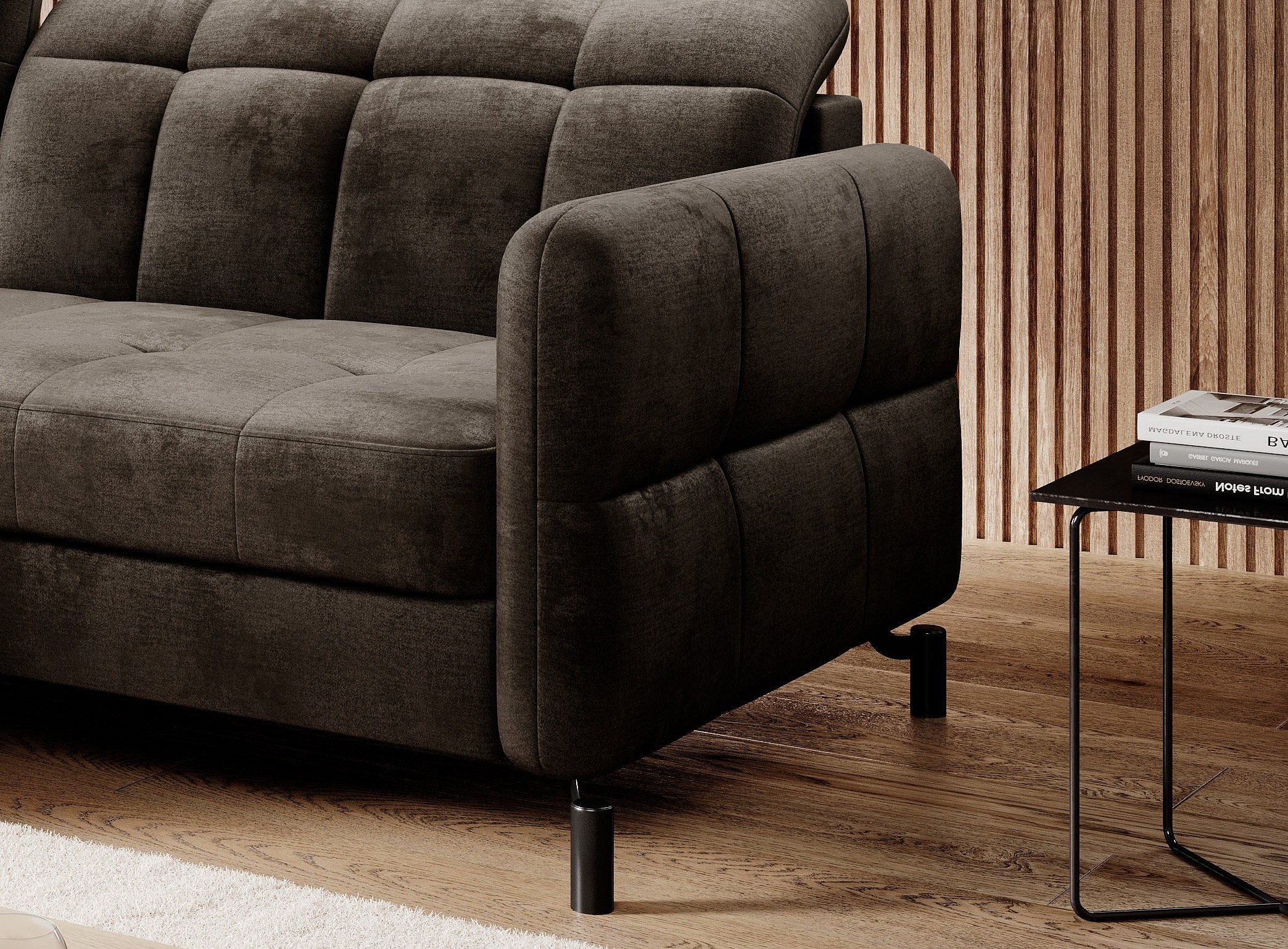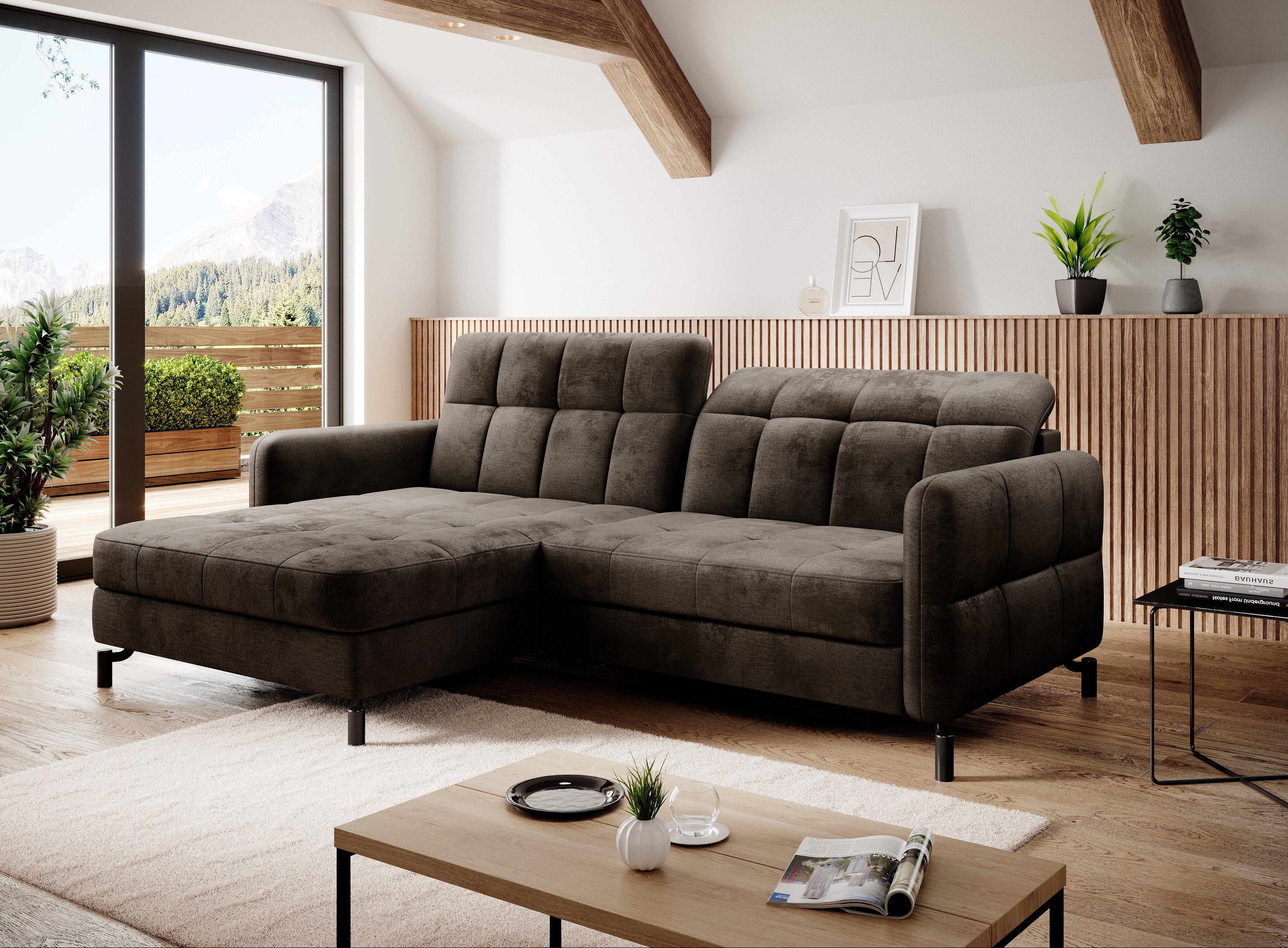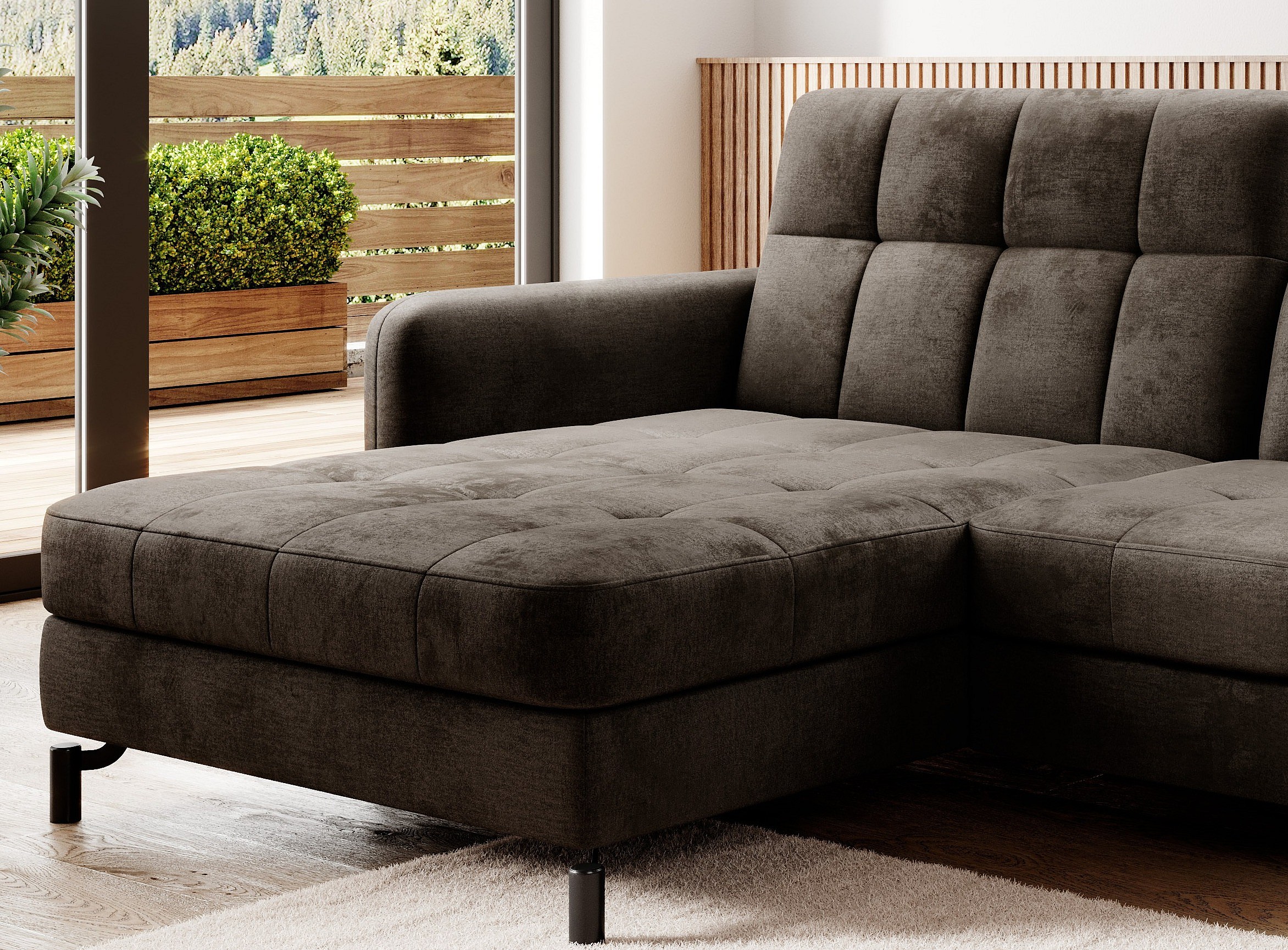 Canapé convertible velours matelassé chocolat angle gauche Lory 225cm