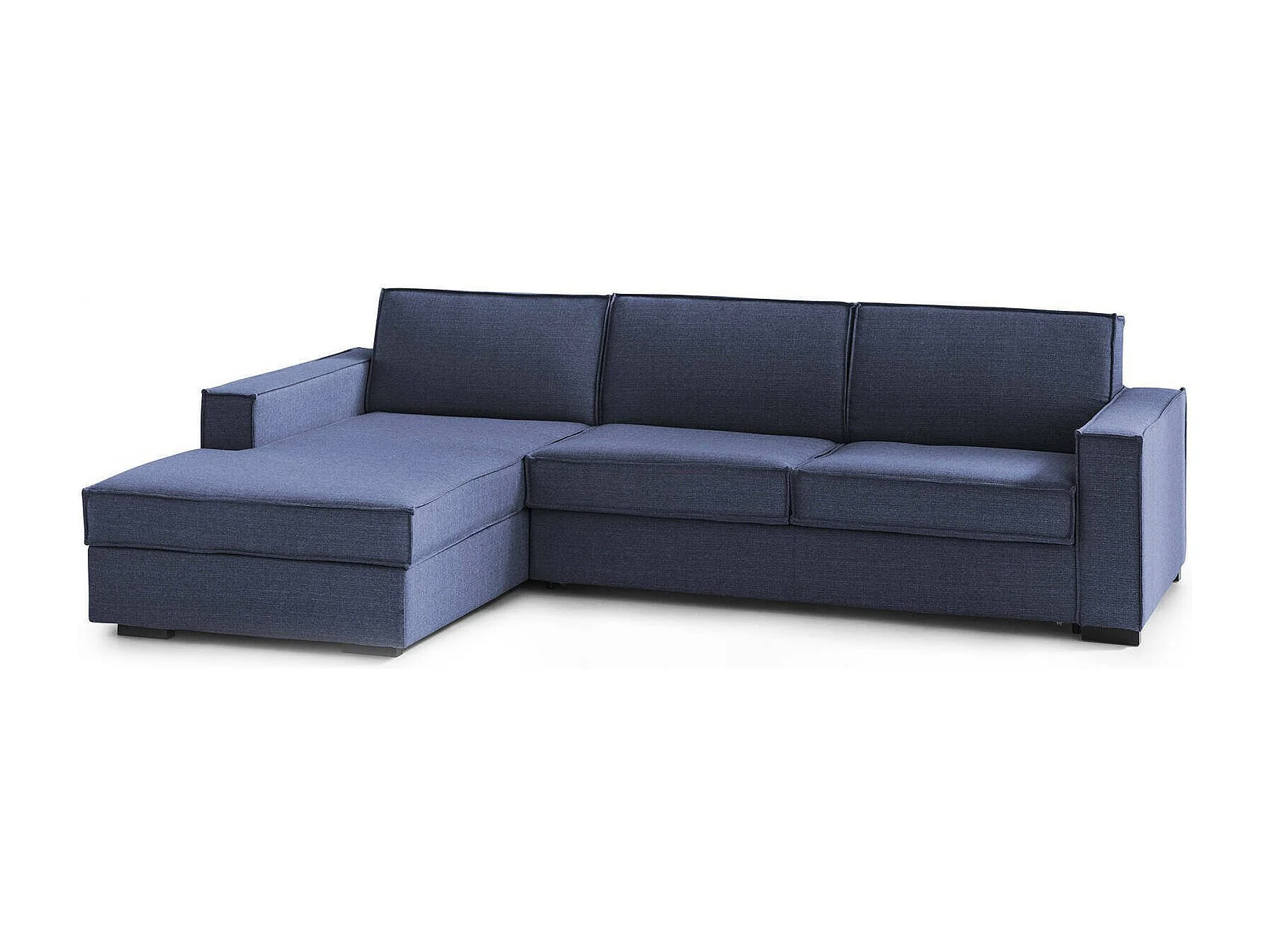 Daalb Canapé-lit, Canapé d'angle, 100% Made in Italy, Canapé avec ouverture pivotante, Péninsule de rangement gauche, avec accoudoirs fins, 260x95h90 cm, Bleu