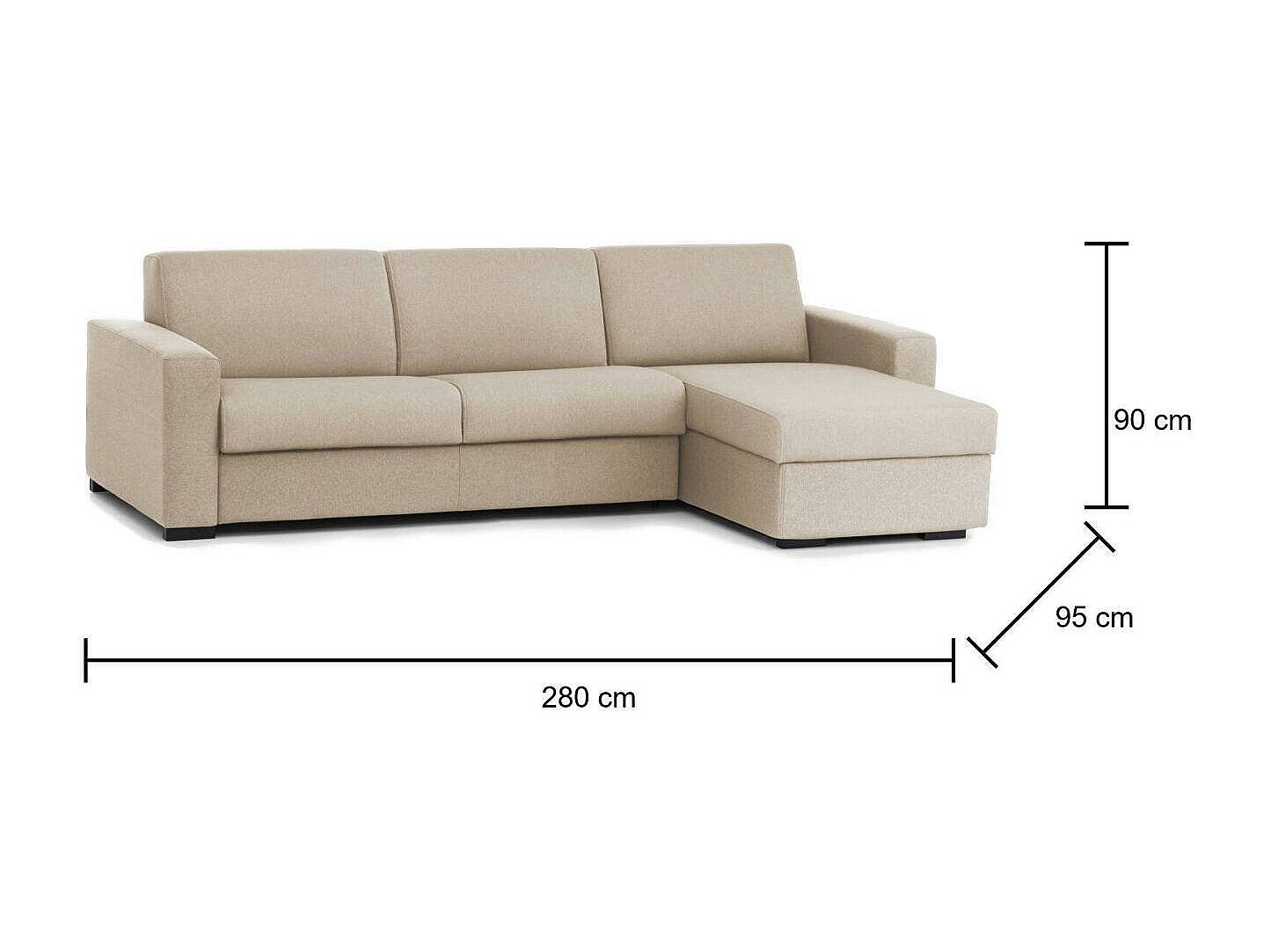 Schlafsofa Dabakar, Ecksofa, 100% Made in Italy, Sofa mit Drehöffnung, mit Wendebehälter Halbinsel, mit Standard-Armlehnen, Cm 280x95h90, Beige