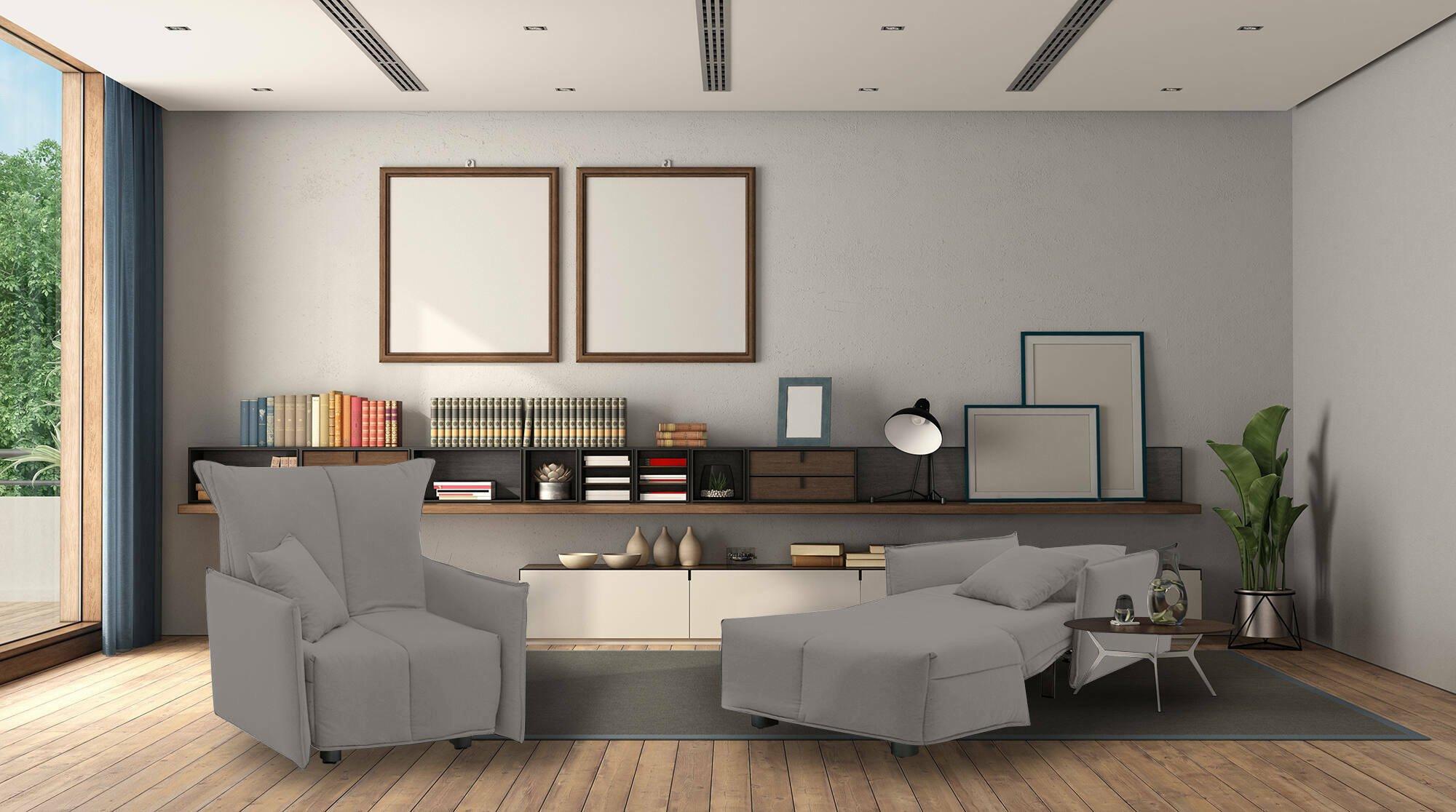 Canapé-lit Dabari, Canapé simple, 100% Made in Italy, Fauteuil de salon avec ouverture trolley, en tissu rembourré, avec accoudoirs standards, 110x90h85 cm, Gris