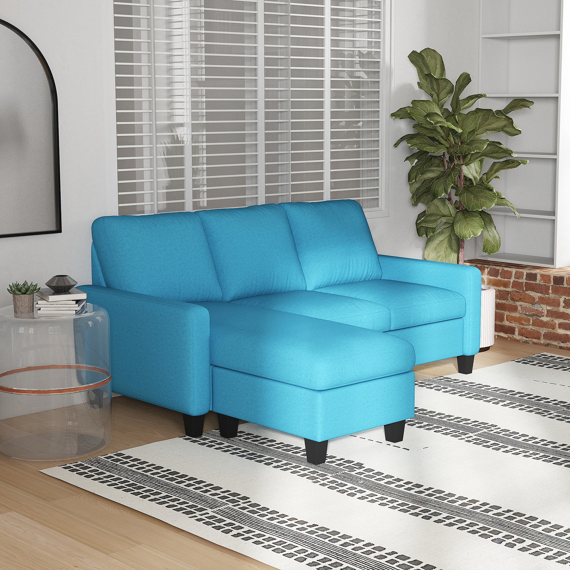 Canapé d'angle 3 places méridienne réversible garnissage mousse haute densité 28D tissu polyester bleu