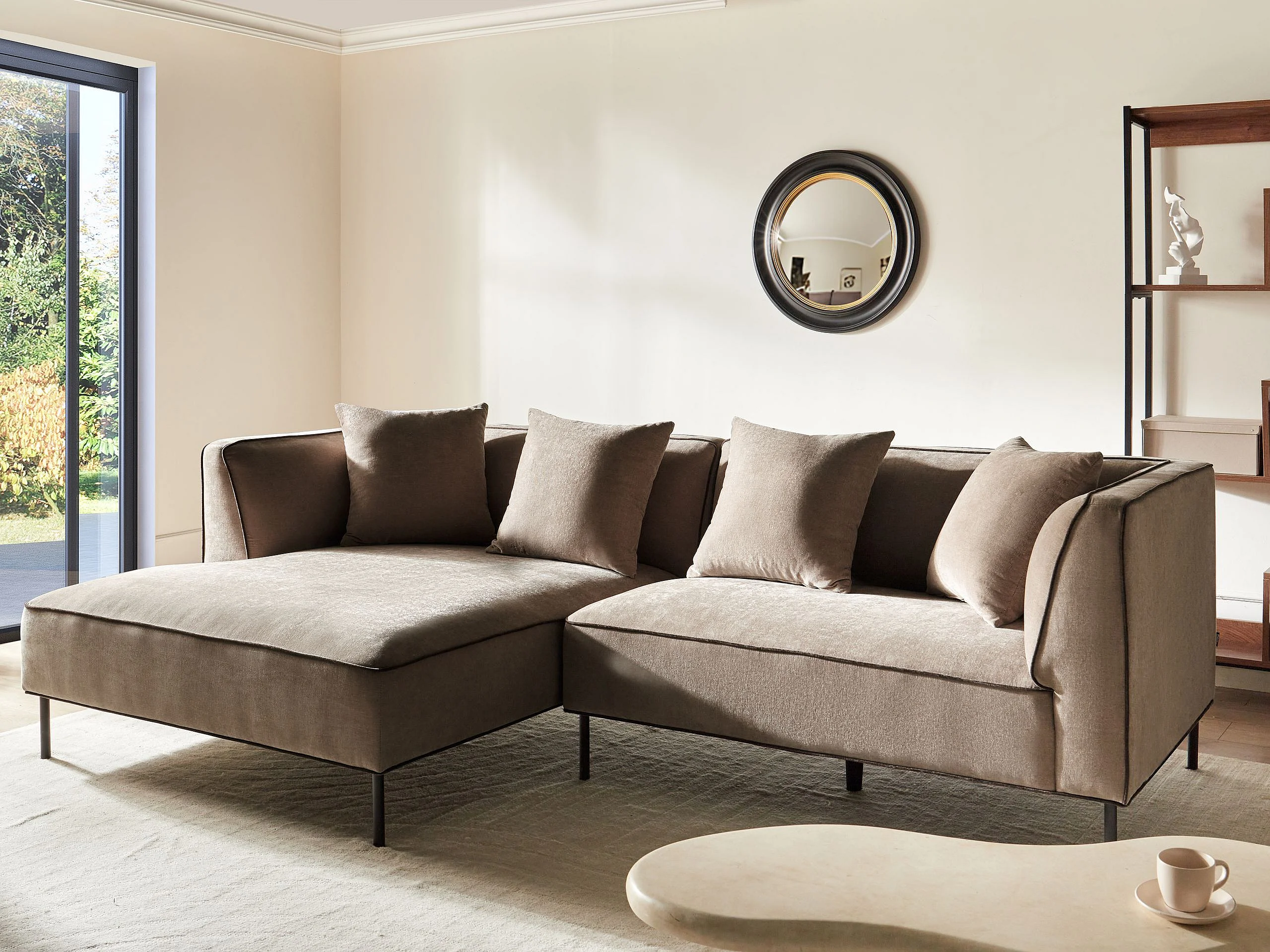 Canapé d'angle 3 places SATER Tissu chenille Marron clair Côté droit