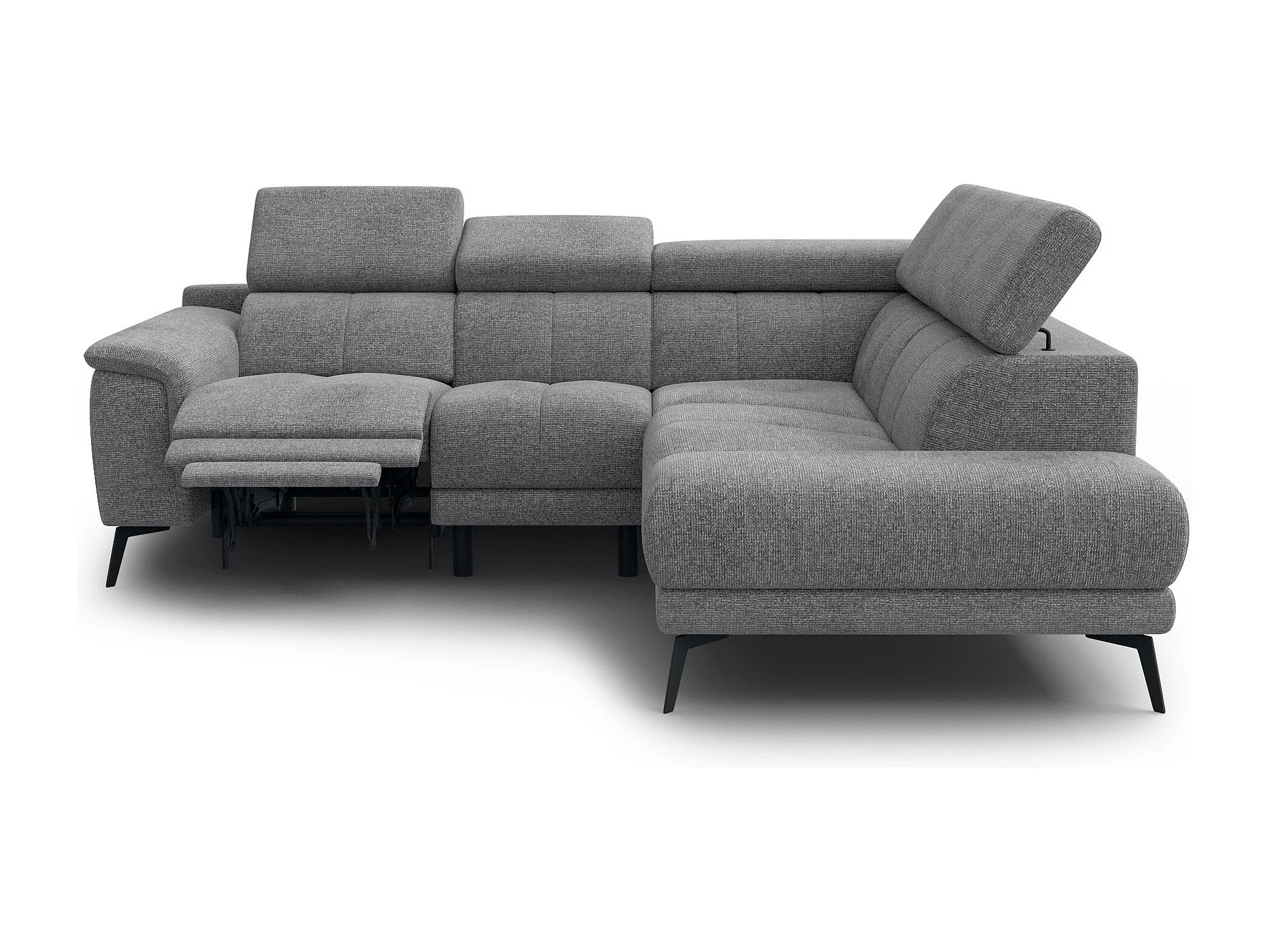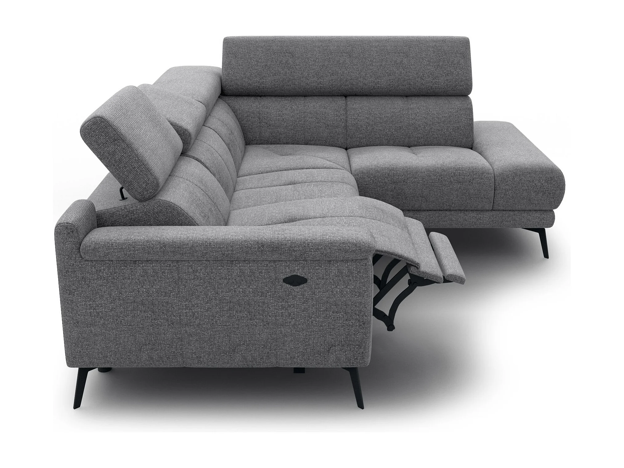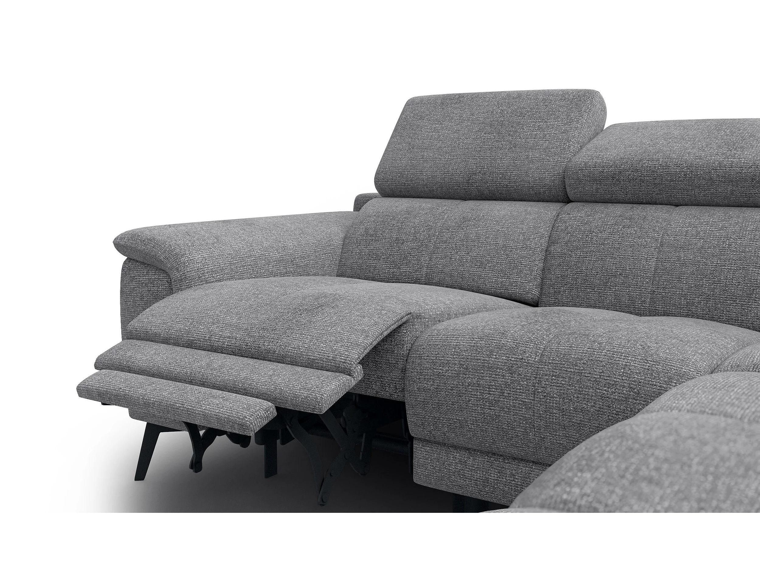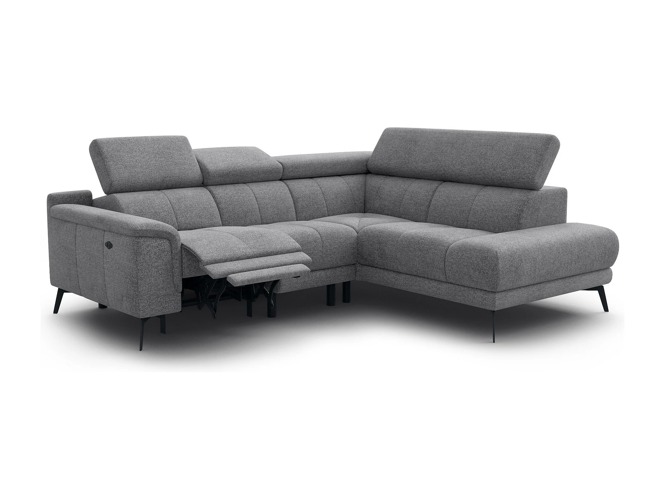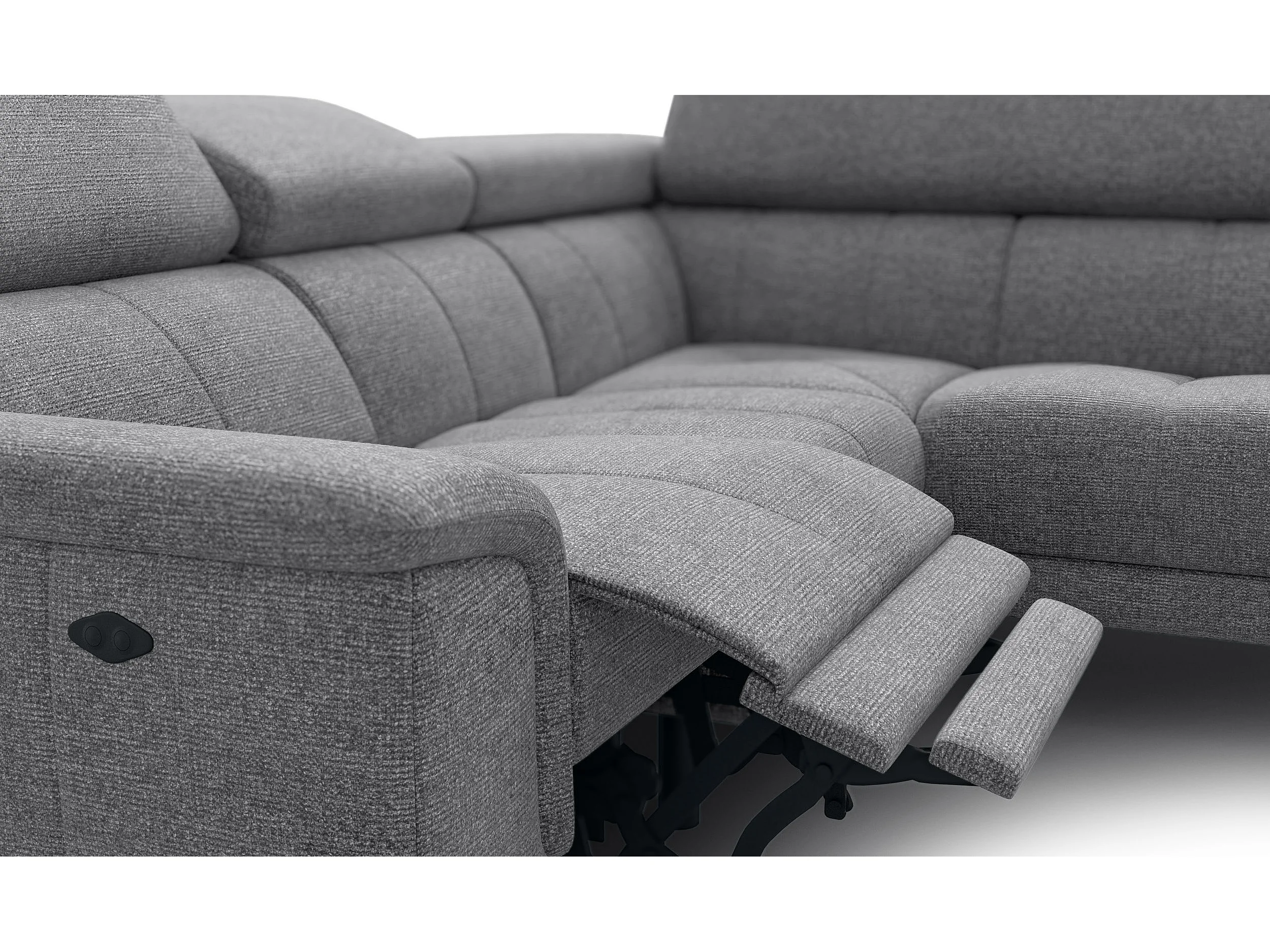 Canapé d'angle 4 places avec 1 relax électrique tissu gris - FIERO