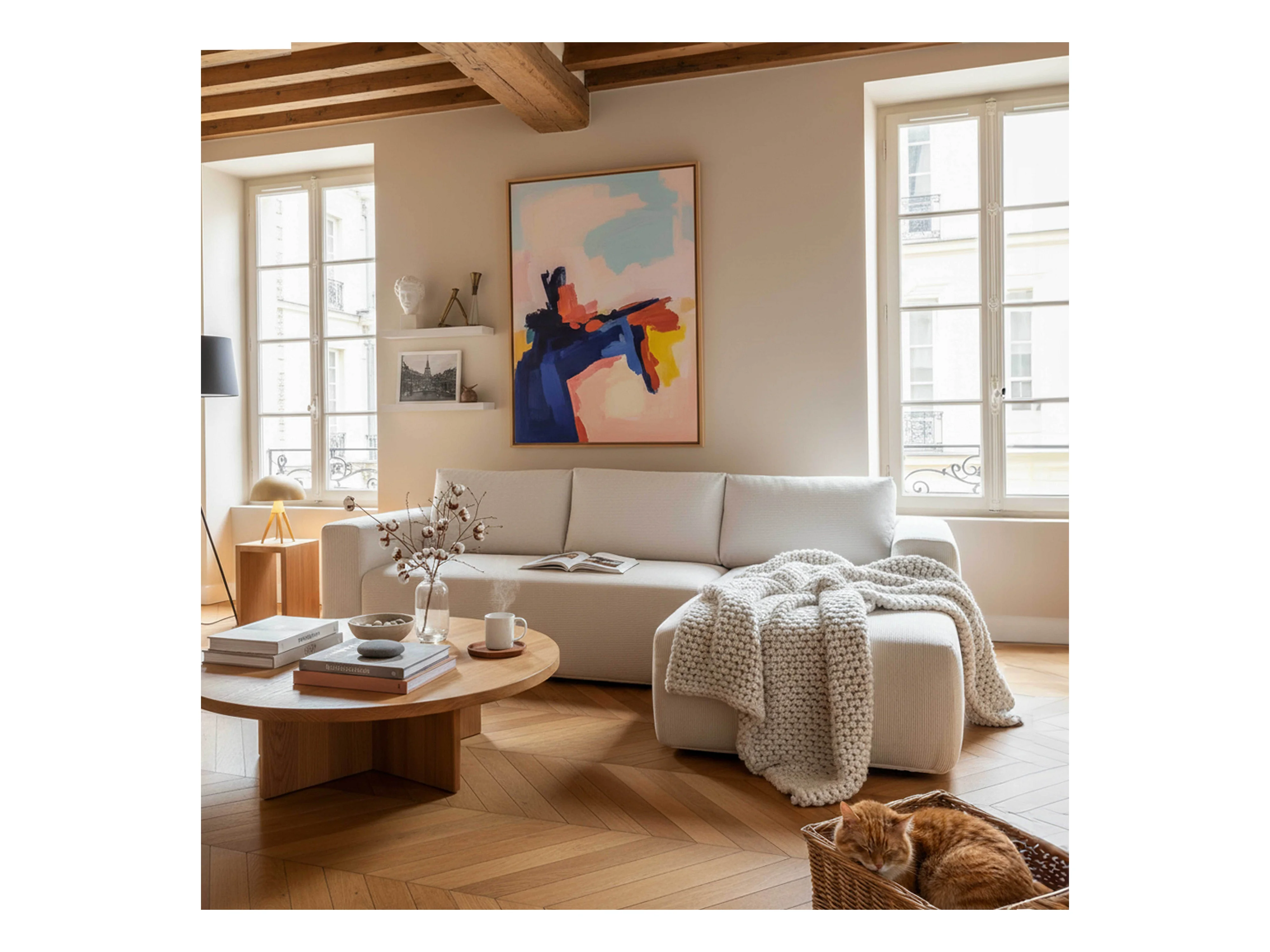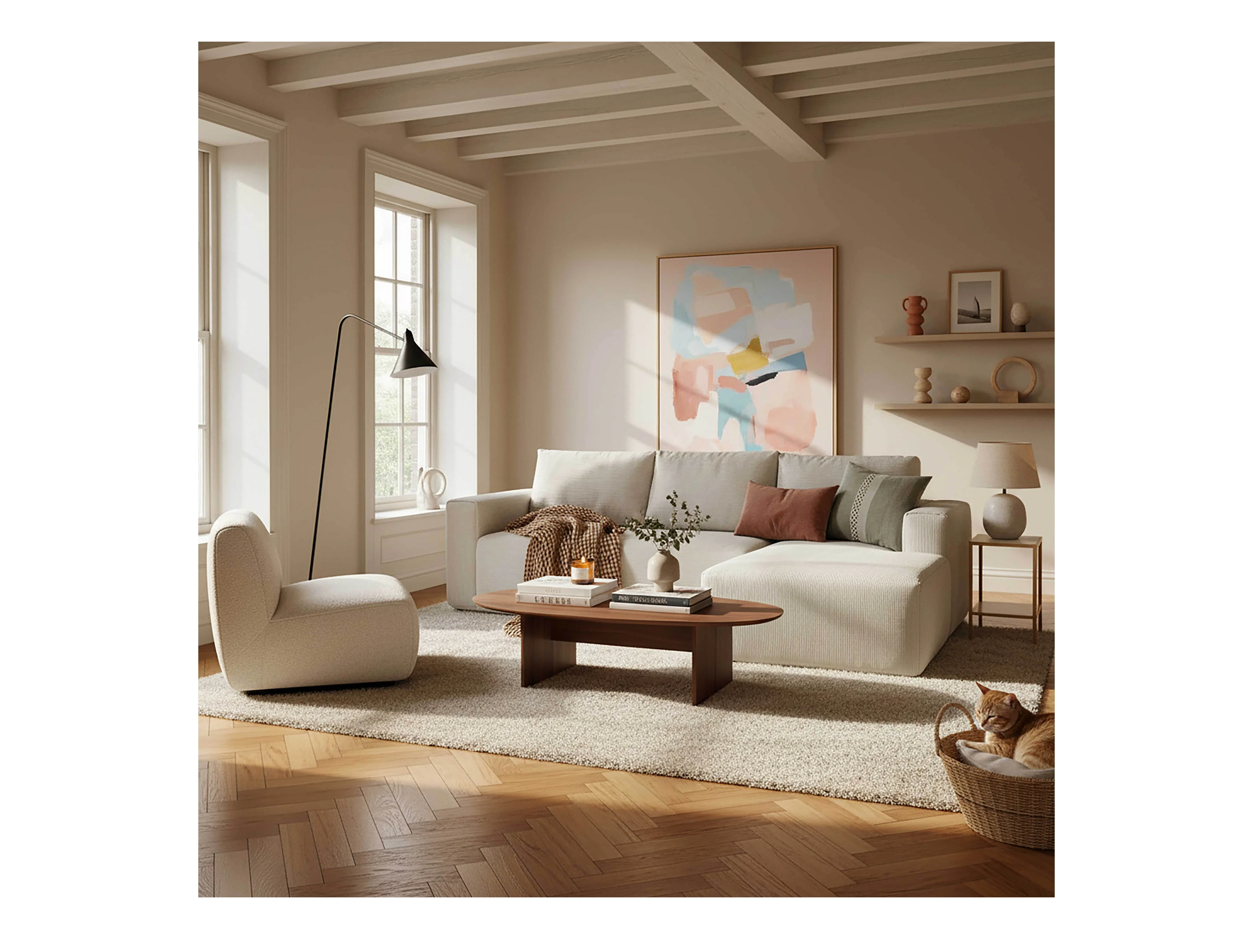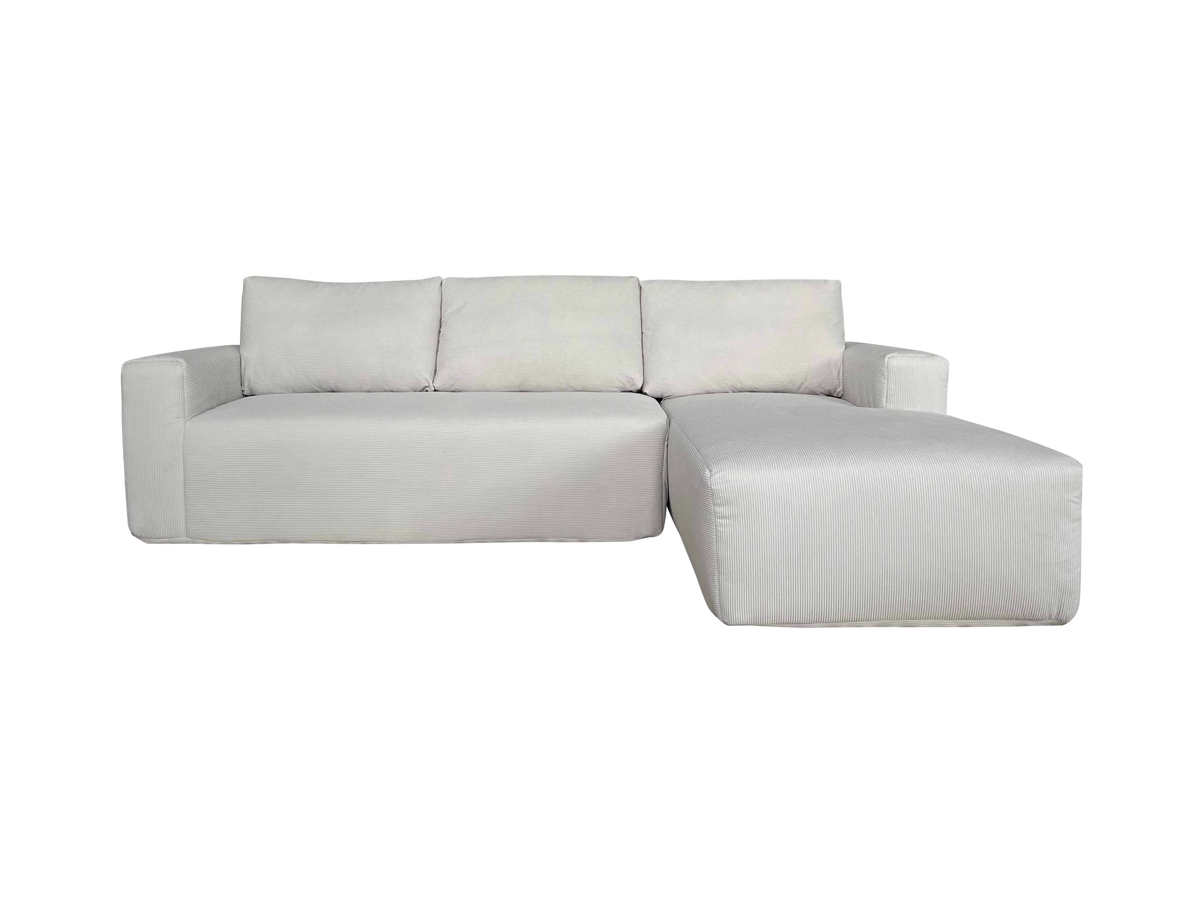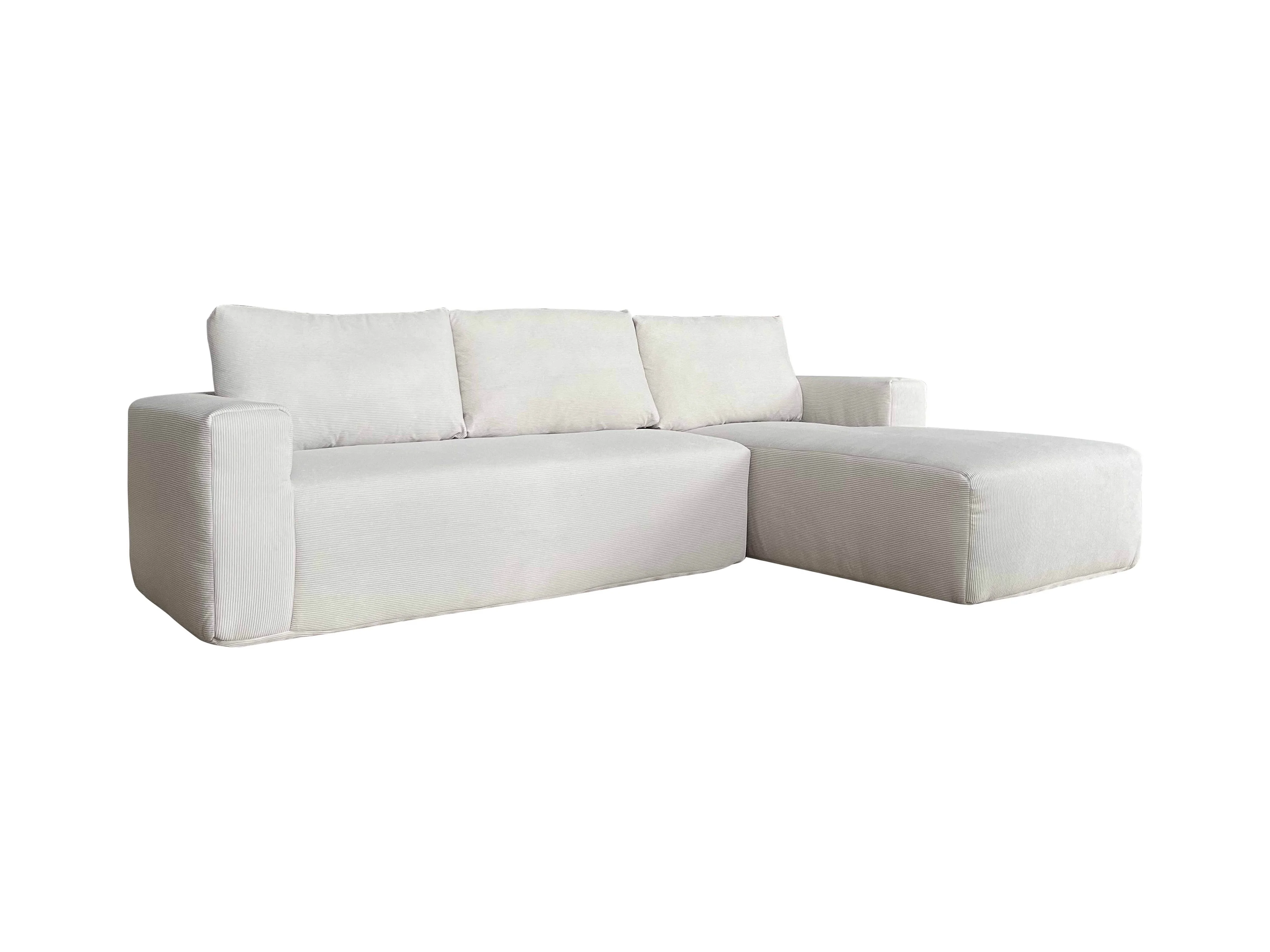 Canapé d'angle 4 places avec méridienne droite et coussins écru
