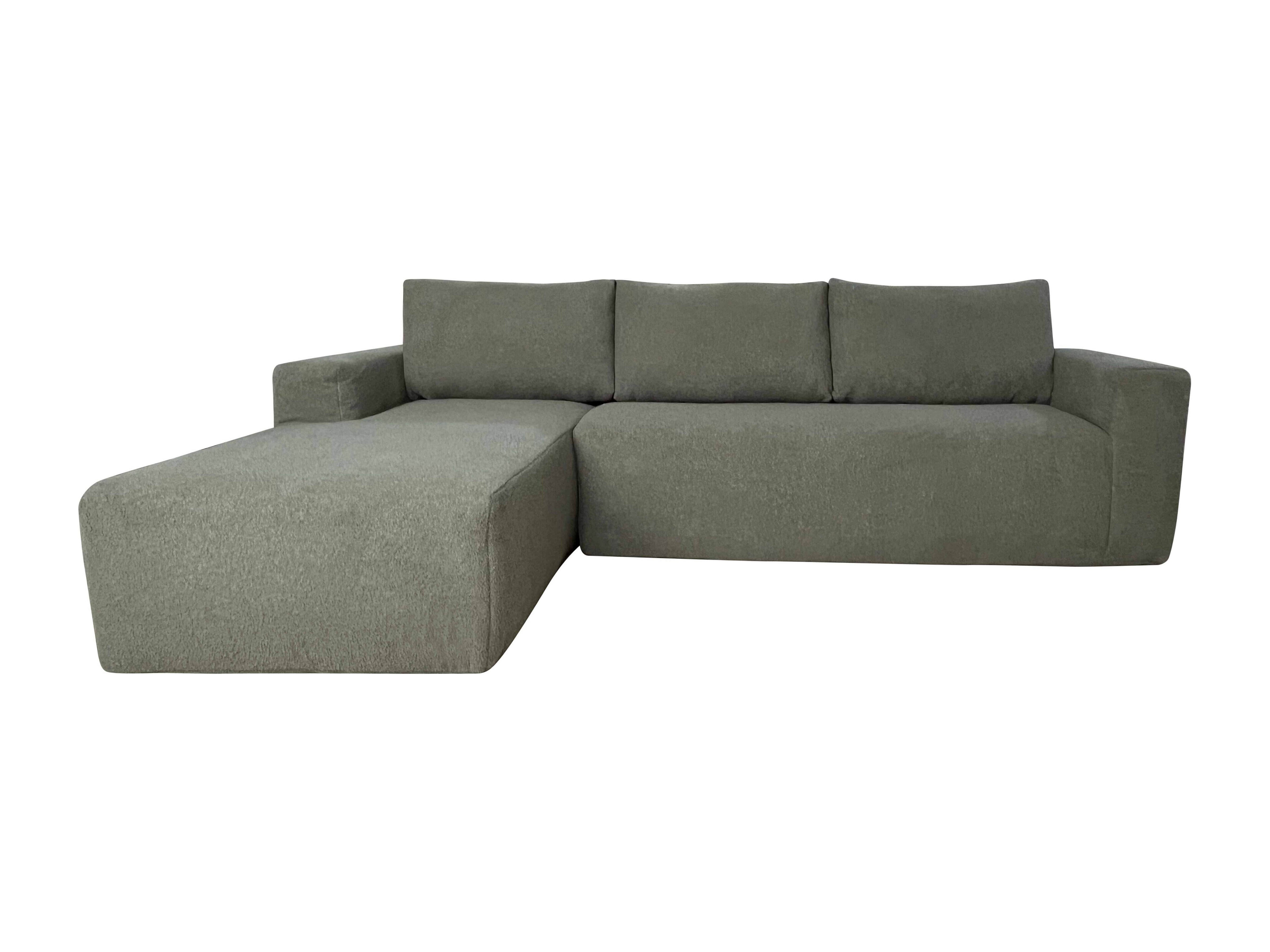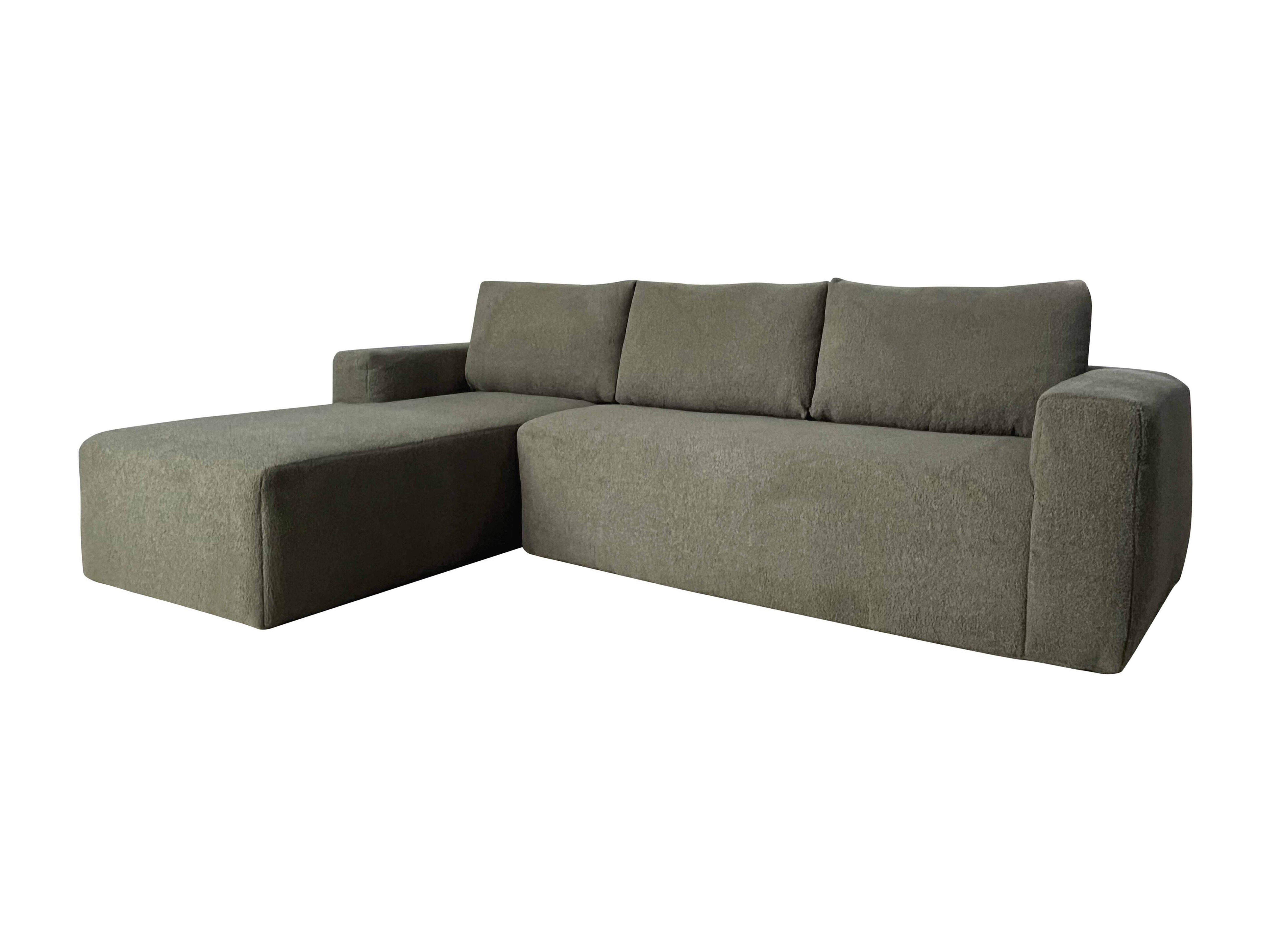 Canapé d'angle 4 places bouclette avec méridienne gauche vert