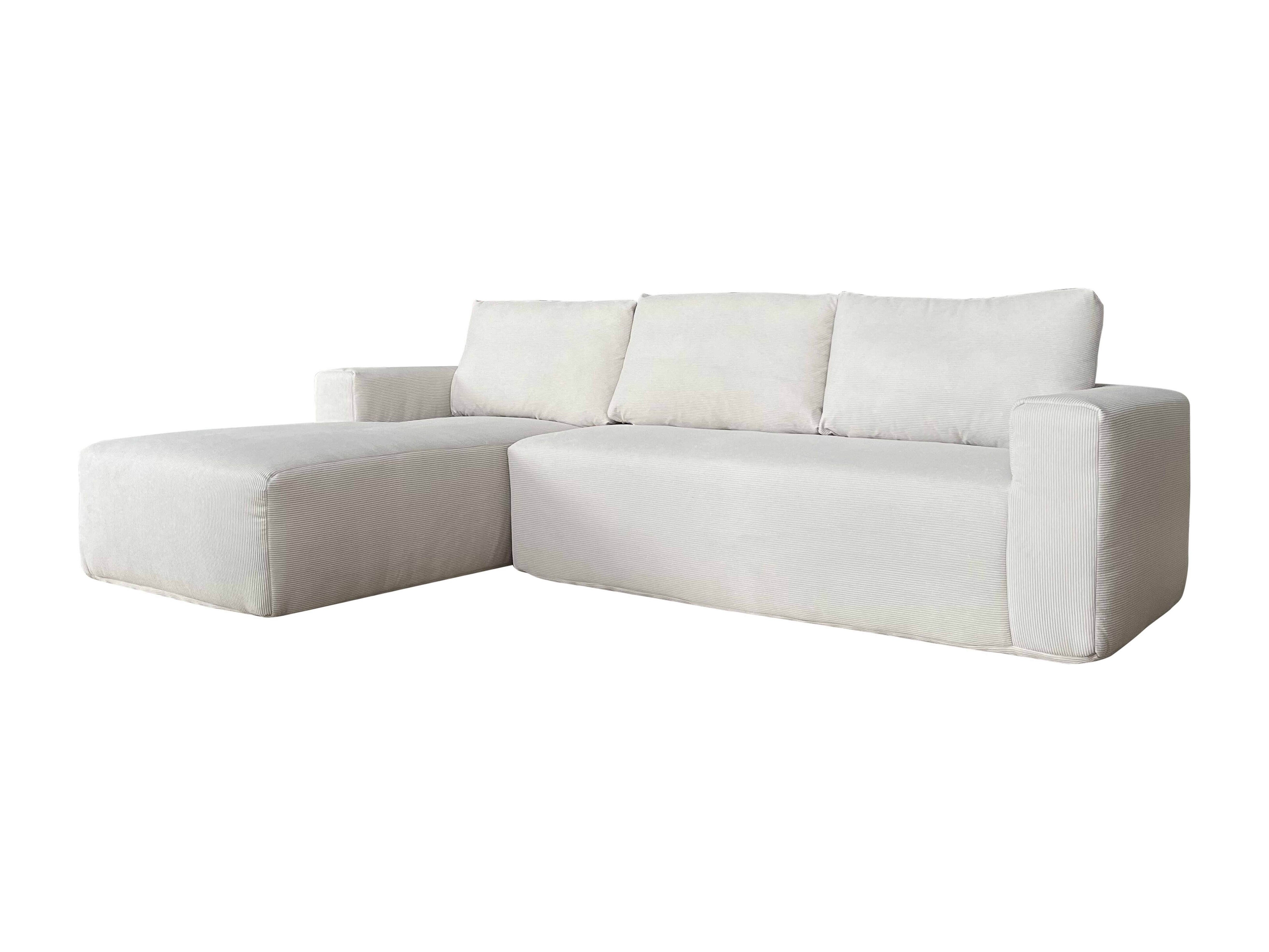 Canapé d'angle 4 places en tissu côtelé avec méridienne gauche écru
