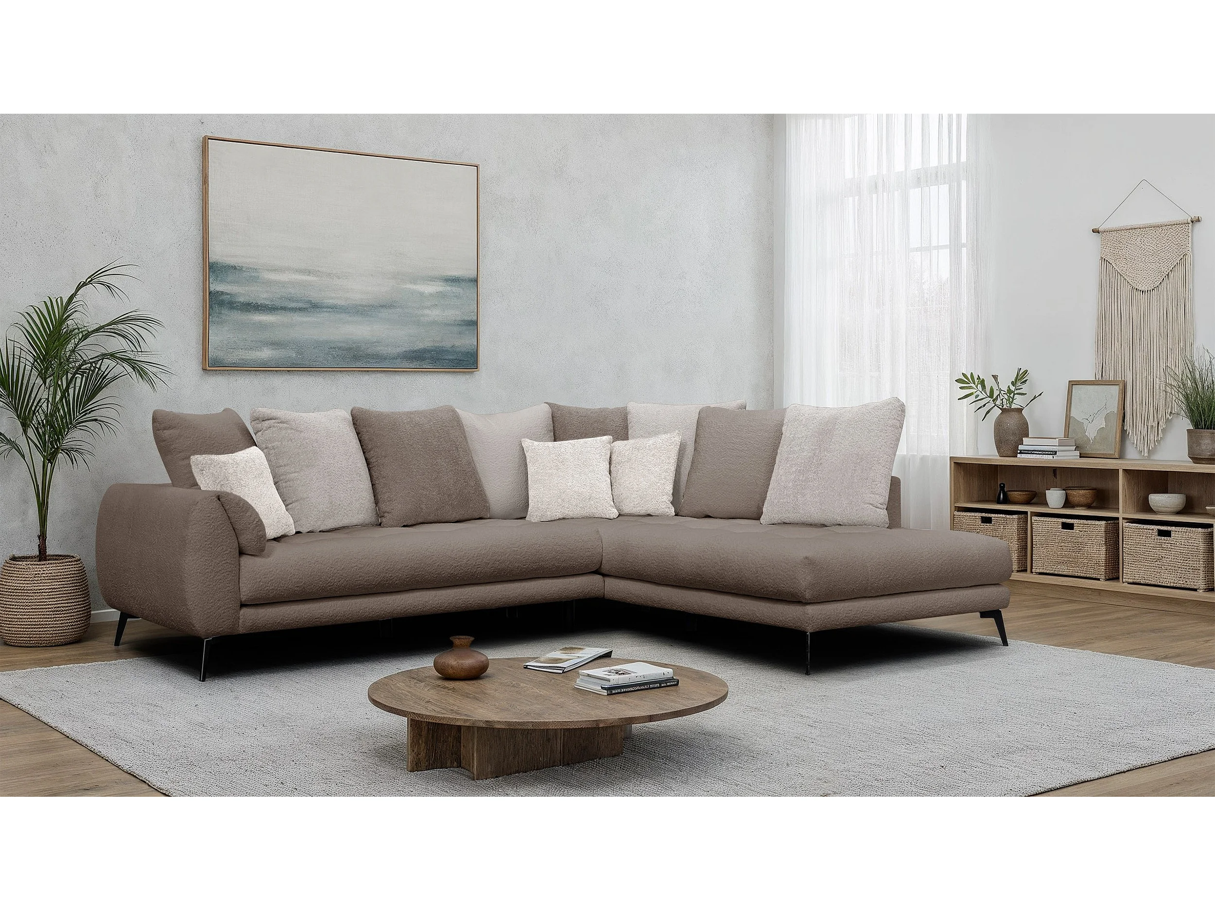 Canapé d'angle 5 places CALME, tissu beige et écru